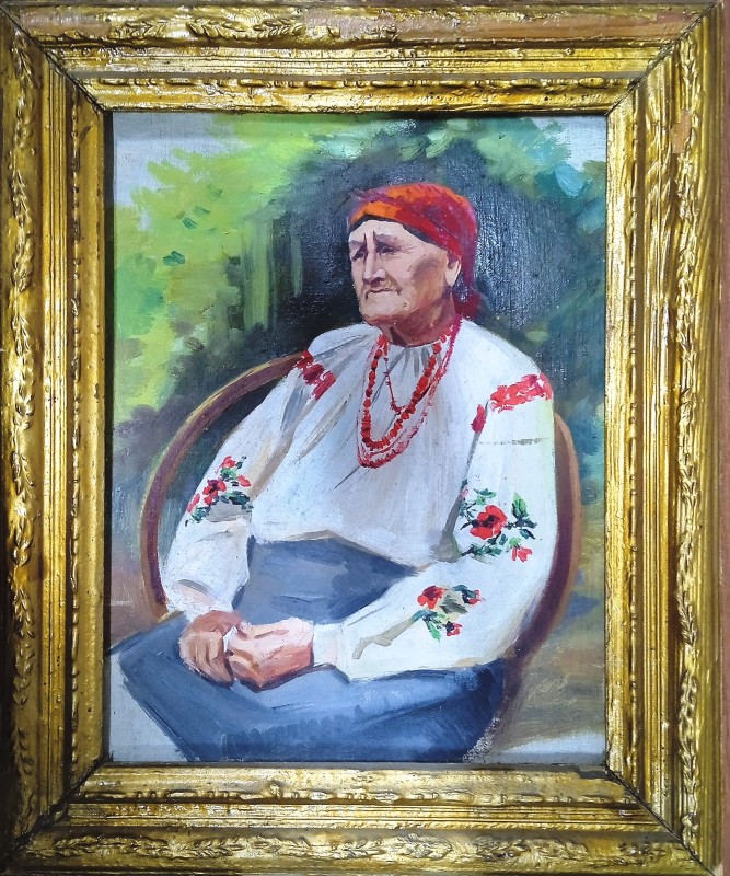 Бандурист, інкрустація соломкою. Зображення українського бандуриста під деревом та з музичним інструметом способом інкрустації соломкою на плиті ДВП. Надійшло від народної майстрині А.Камигіної, м.Знам'янка, 2006 р.