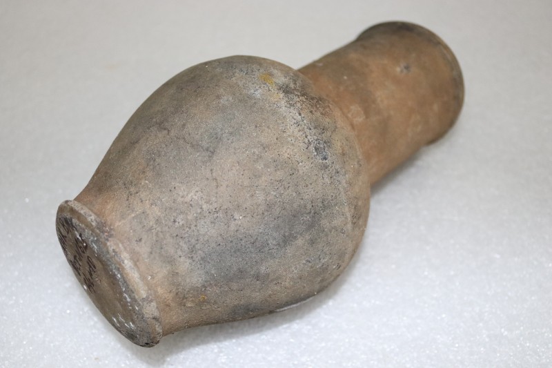 Звичайна болванка виготовлена із звичайної твердої сталі (метал поржавів, корозія металу). Болванка – круглої конусоподібної форми h – 48,0 см. На неї у гострій частині по різьбі накручений бронебійний наконечник h – 7,0 см; d – 5,0 см, який покращує аеродинаміку снаряда. Сам наконечник являє собою ковпачок із металу. У самому низу болванки по колу нанесений ведущий поясок. Всередині болванка пуста.