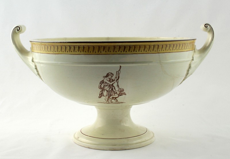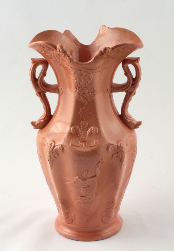 Видовжений тулуб на чотирьох невисоких лапах з повернутою головою вбік. Хвіст тонкий довгий закручений з пучком на кінці. Голова невелика. Привідкритий рот з білими зубами, обрамлений вусами. Голова і передня частина тулуба декоровані видовженими наліпами, що імітують гриву. Наліпи коричневого кольору з білими цятками на кінцях. Скульптура вкрита зелено-коричневою поливою.