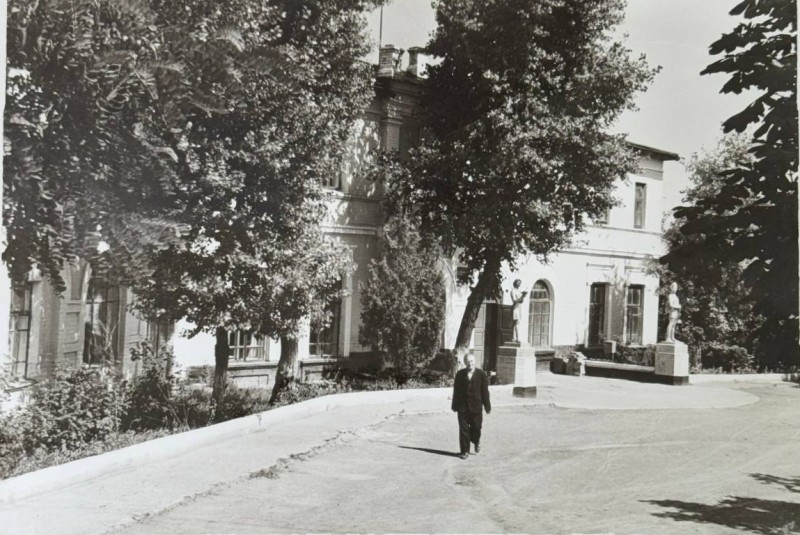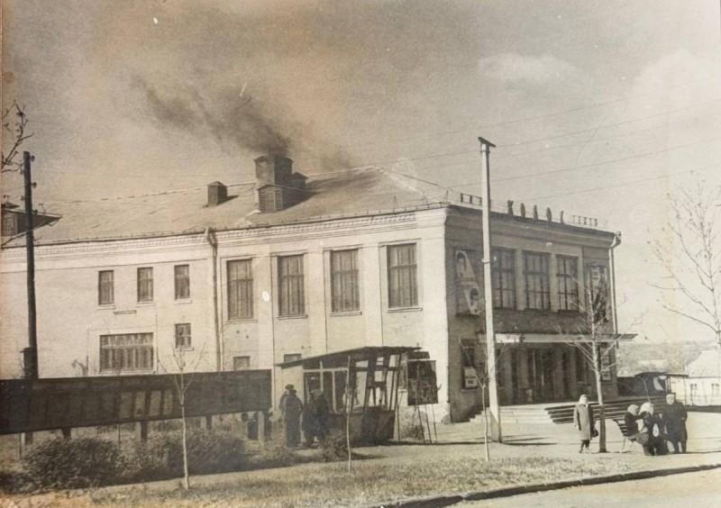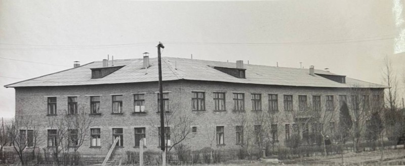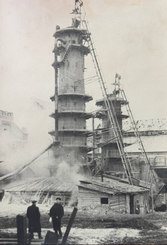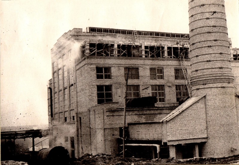 Фото чорно-біле. На фото - будівля Маловисківського цукрового заводу. Загальний вигляд.