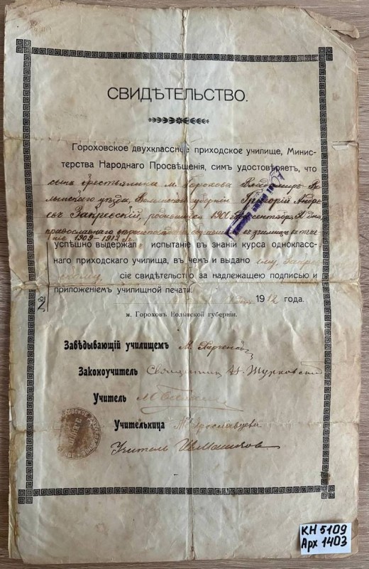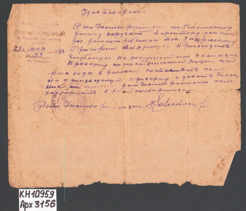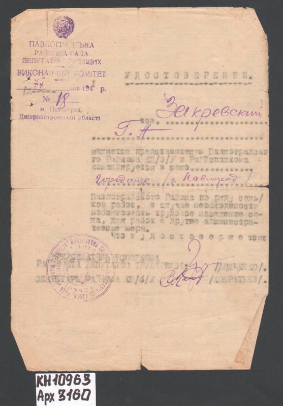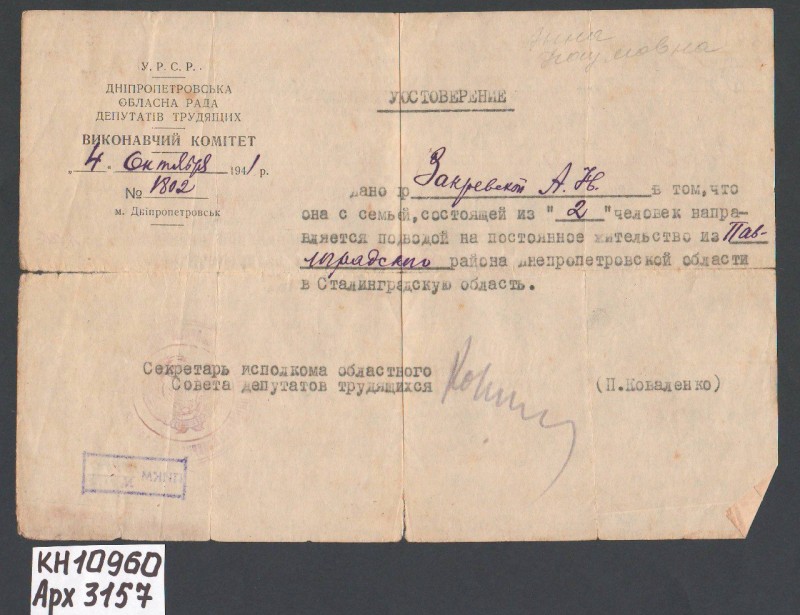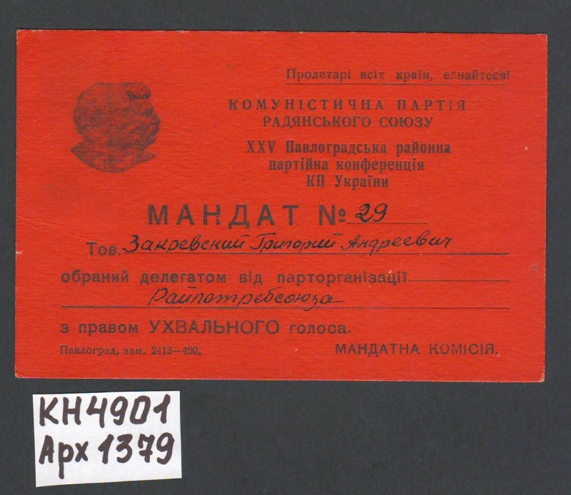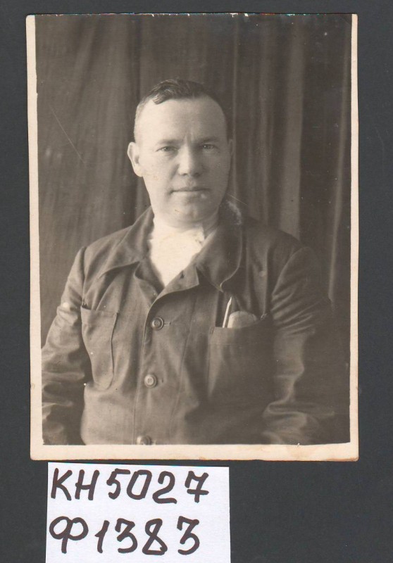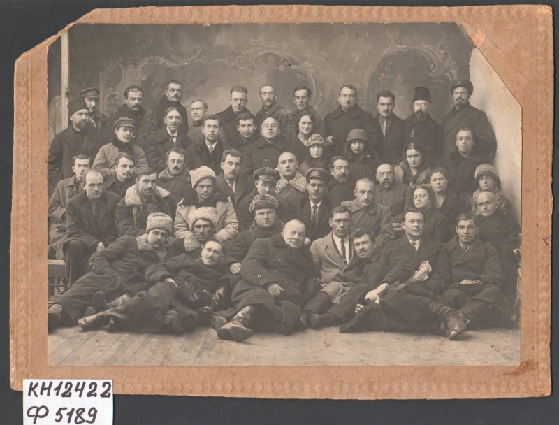 Фото групове "На аеродромі", чорно-біле. На фото - група офіцерів (5 осіб сидять) у військовій формі, в головних уборах; позаду них - мобільний штаб командування (використовували для координації польотів та зв'язку з екіпажем). Ліворуч від них стоїть пілот у льотному однострої. На з. б. написи російською мовою: "г. Павлоград, апрель 1958 г.".
