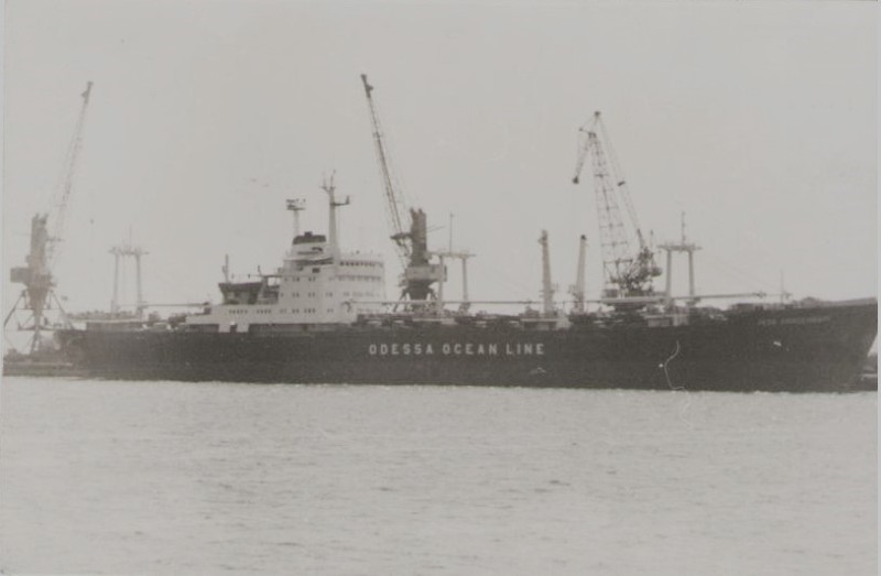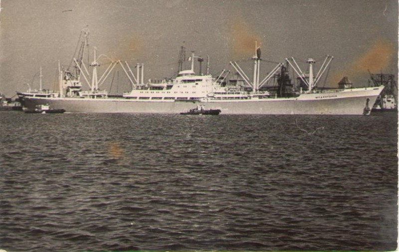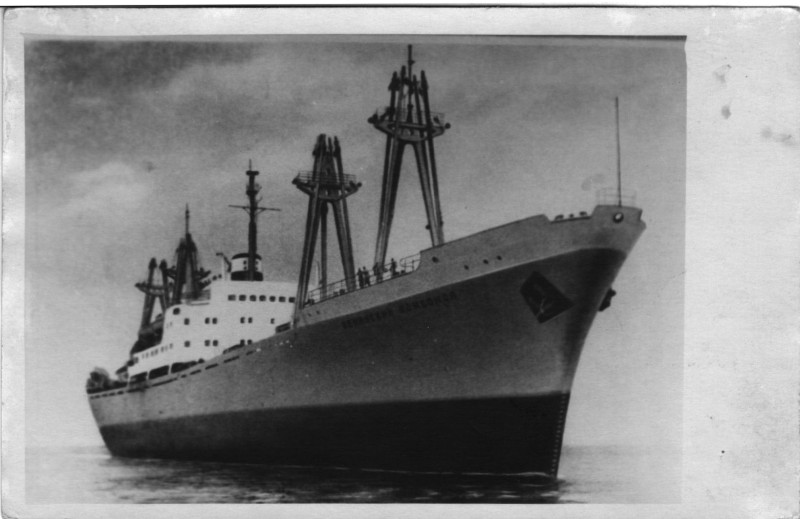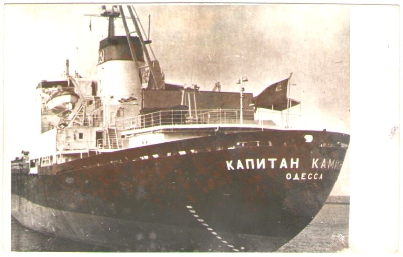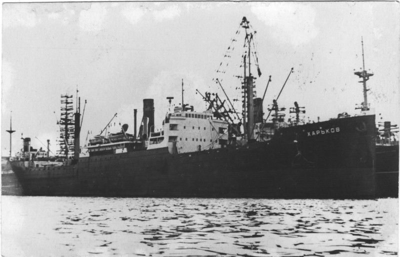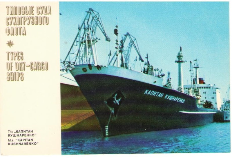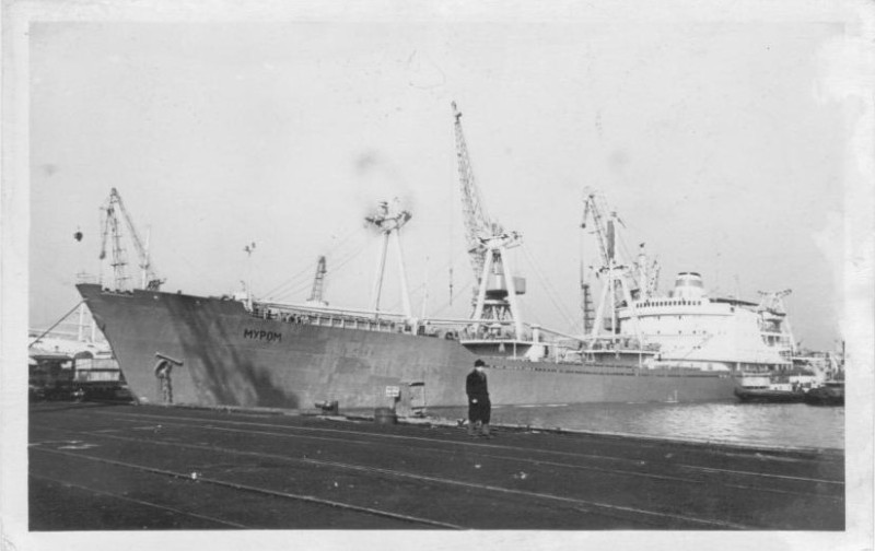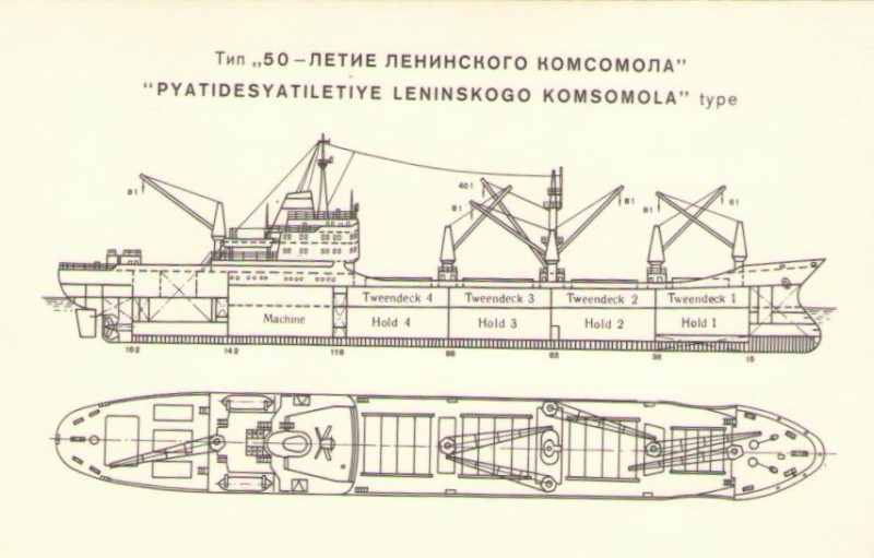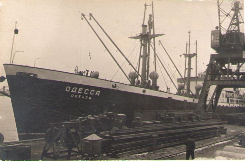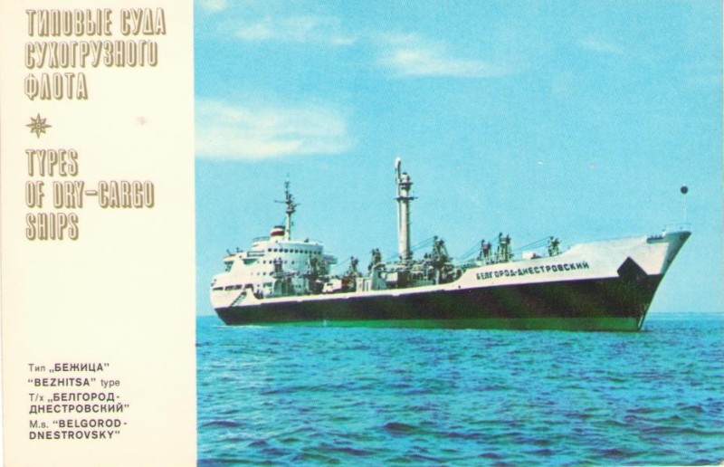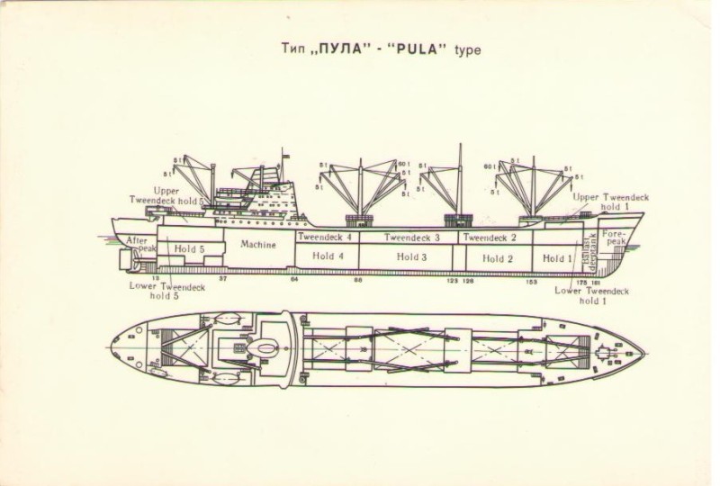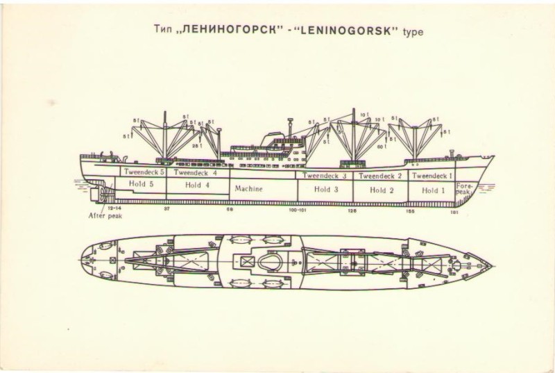 Фото. Креслення т/х типу «Муром» ЧМП, порт приписки Одеса. На зворотному боці технічні дані.