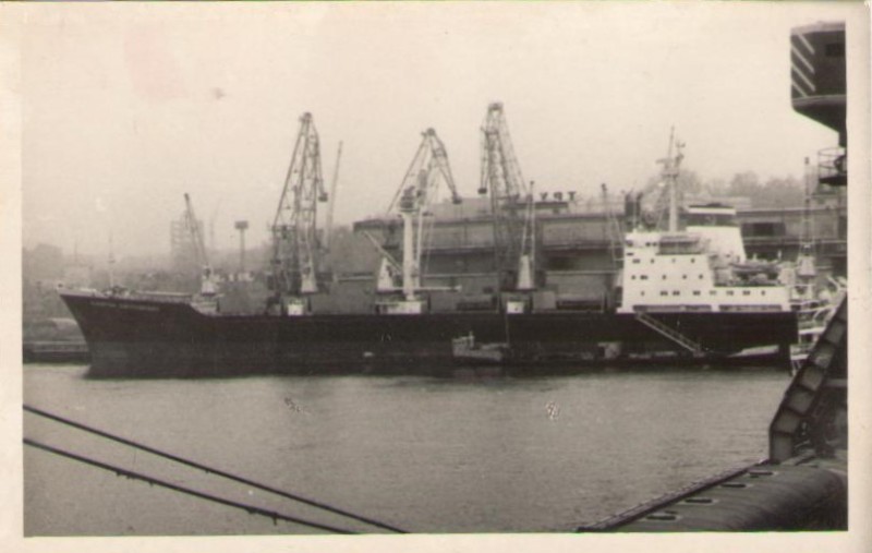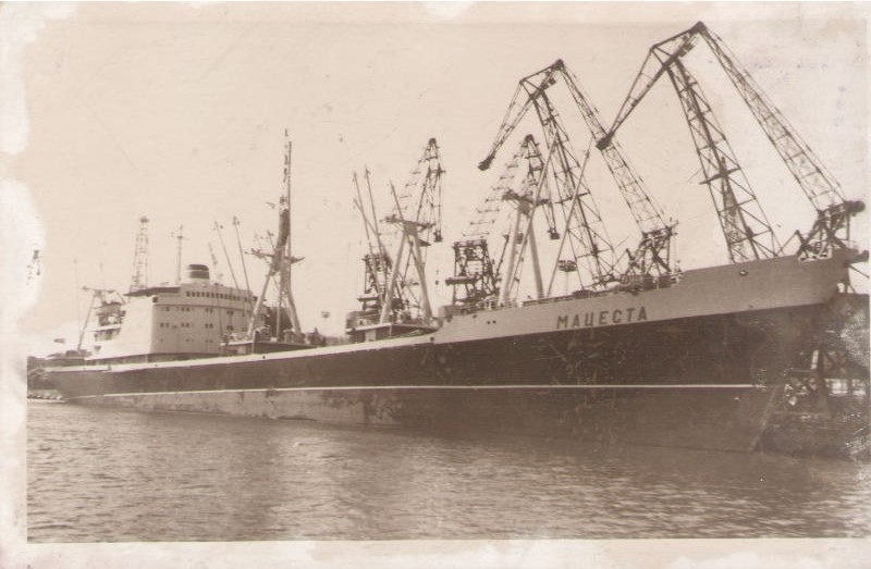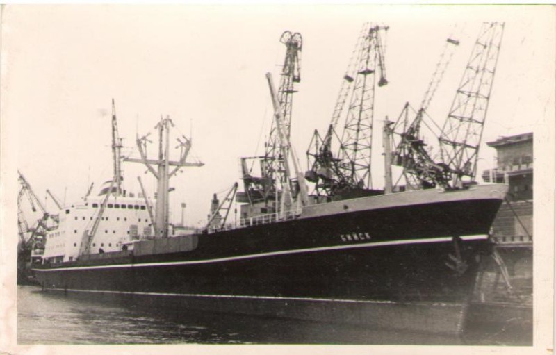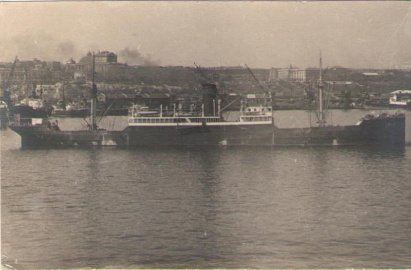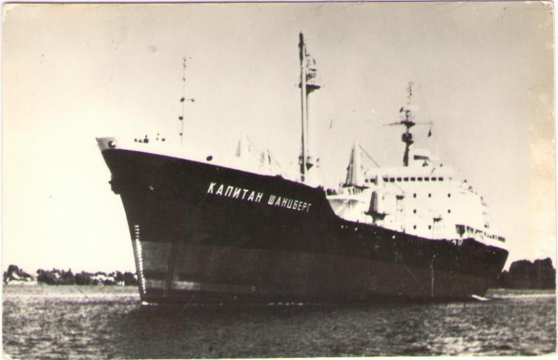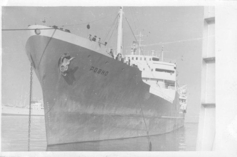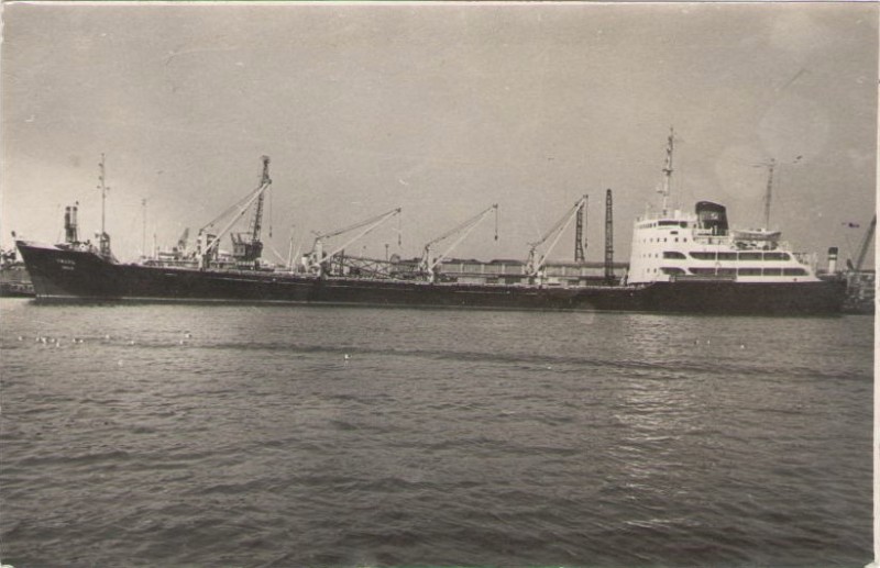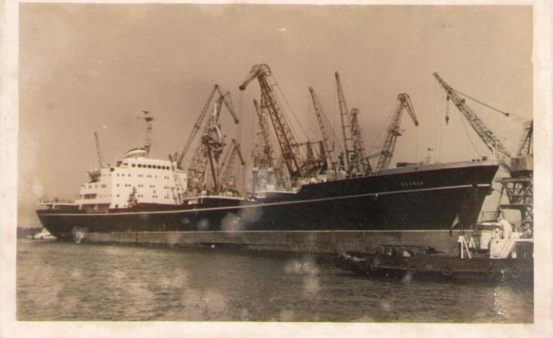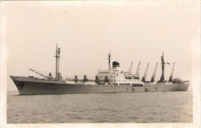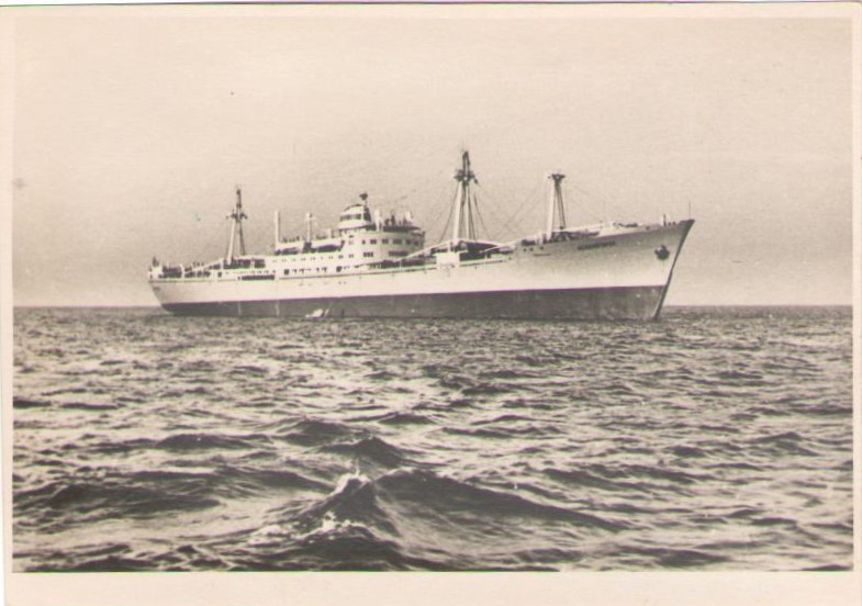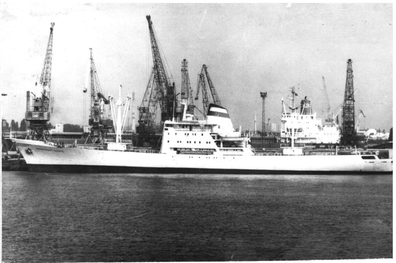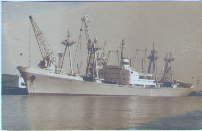 Фото. Креслення т/х типу «Муром» ЧМП, порт приписки Одеса. На зворотному боці технічні дані.
