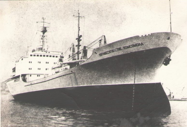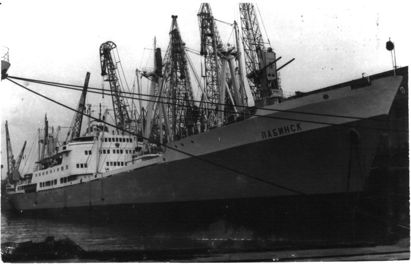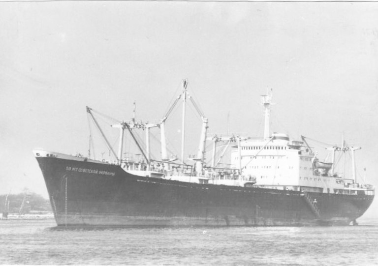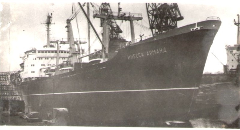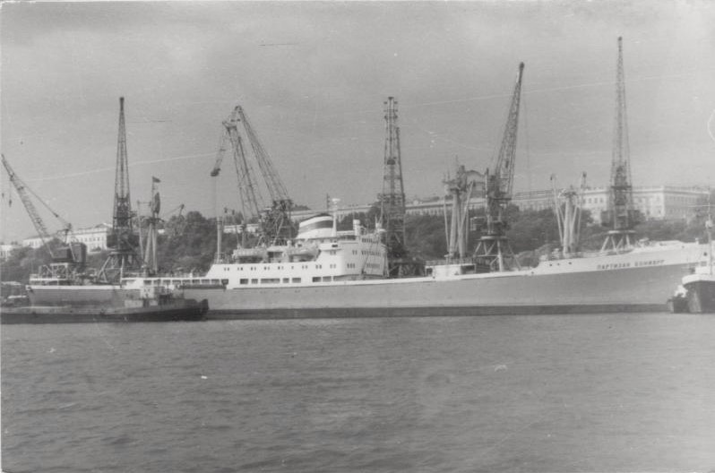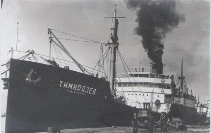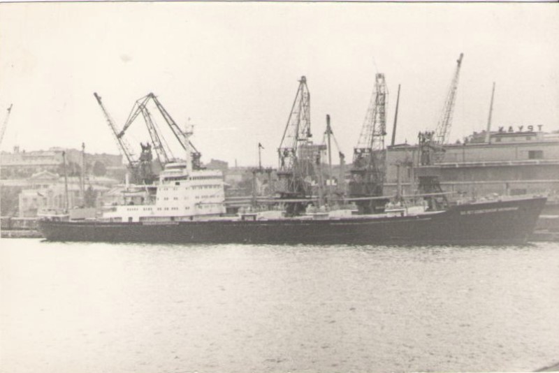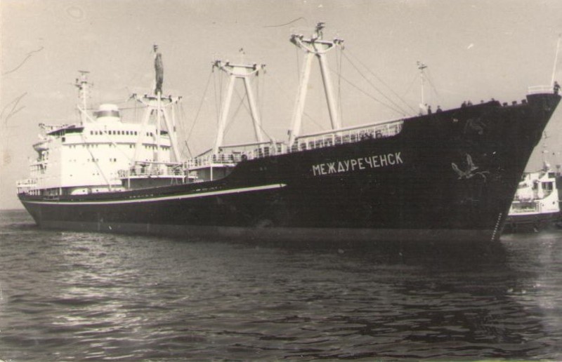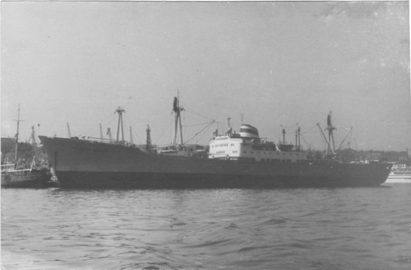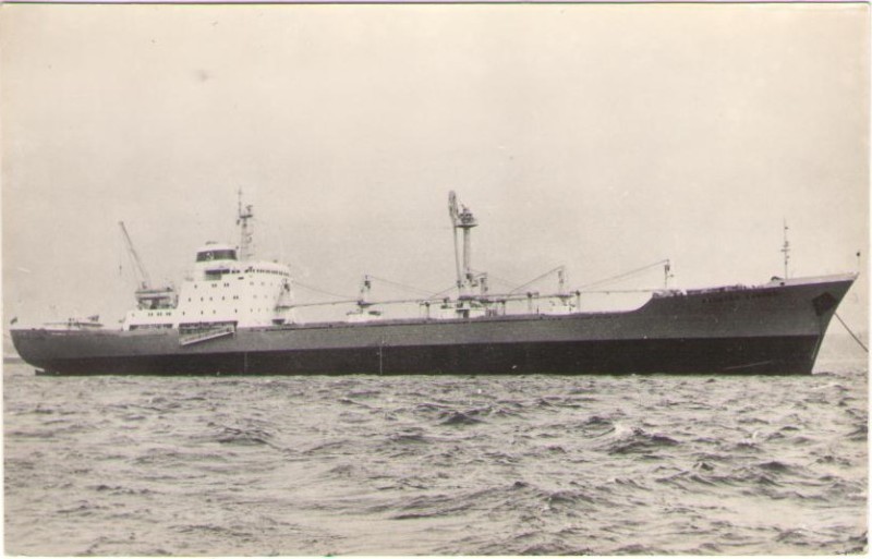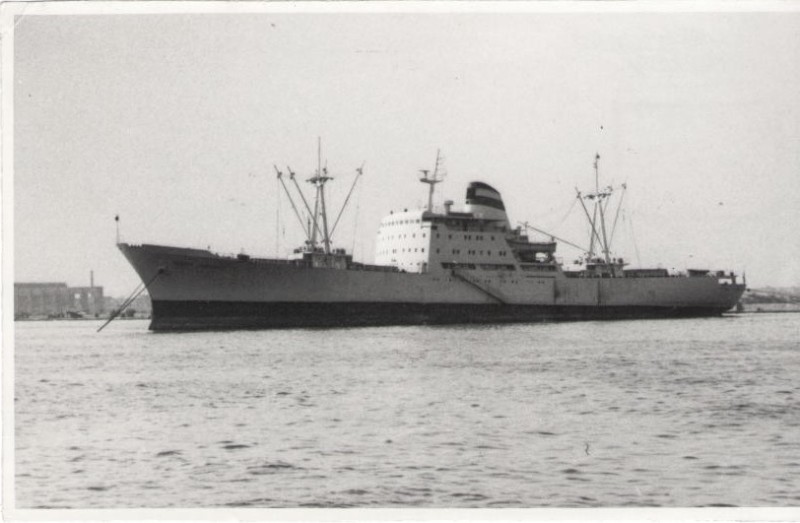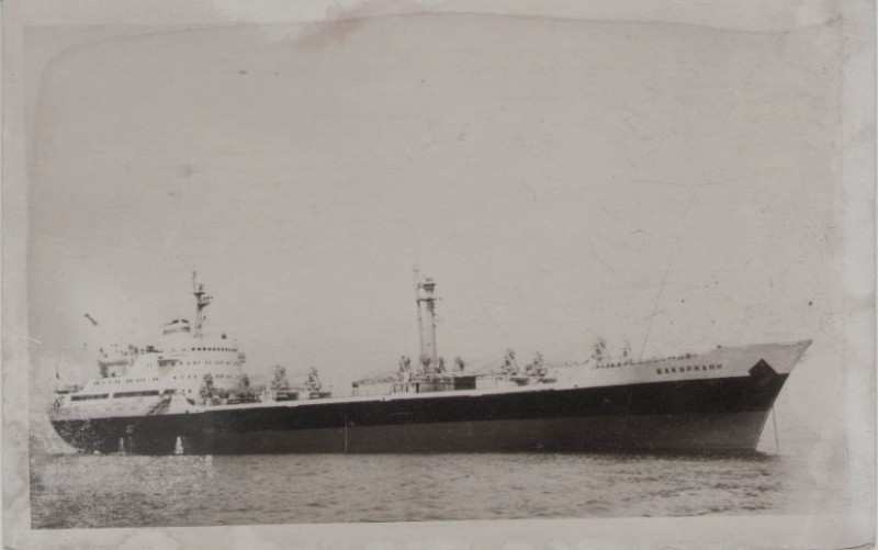 Фото. Креслення т/х типу «Муром» ЧМП, порт приписки Одеса. На зворотному боці технічні дані.
