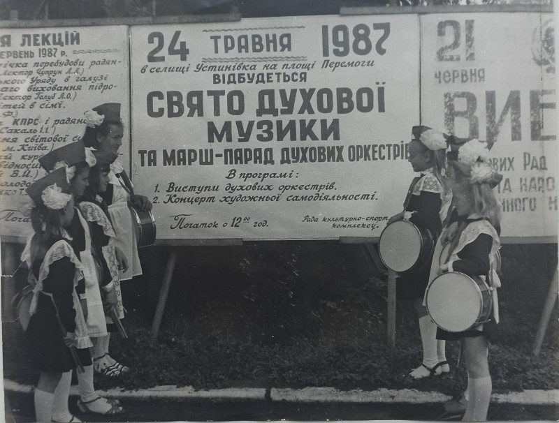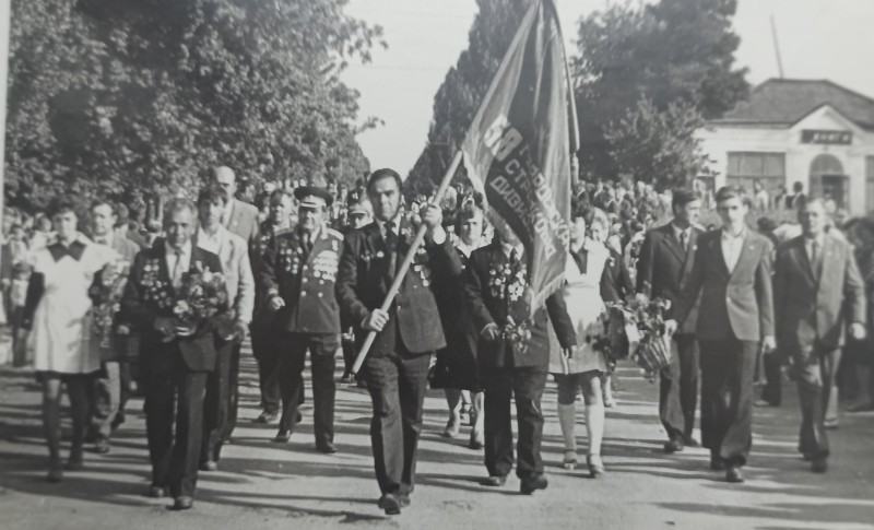 Фото з мітингу, приуроченого до 50-х роковин з дня смерті В.Леніна. Місце проведення заходу - біля Будинку піонерів, Устинівка 21.01.1974 рік.