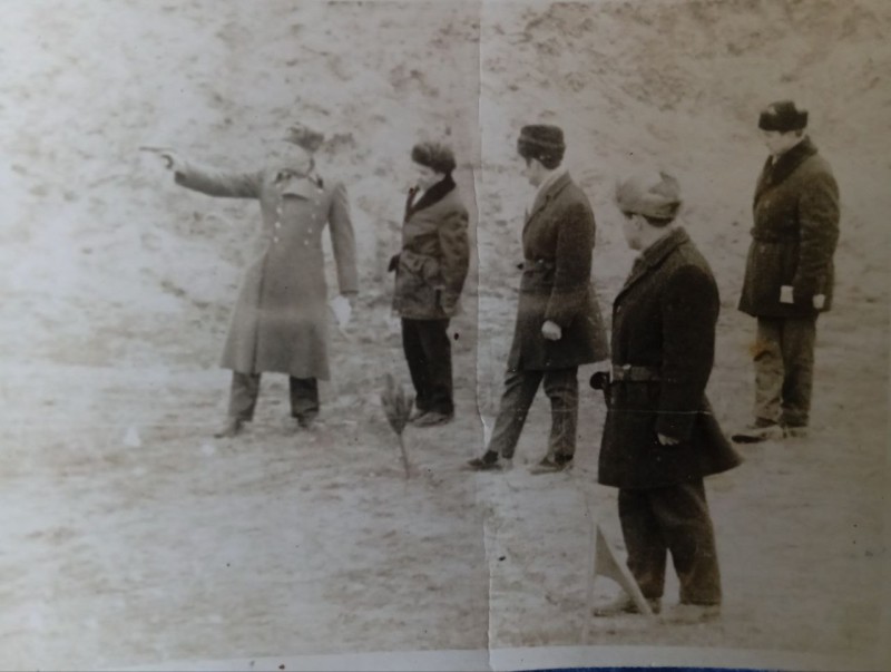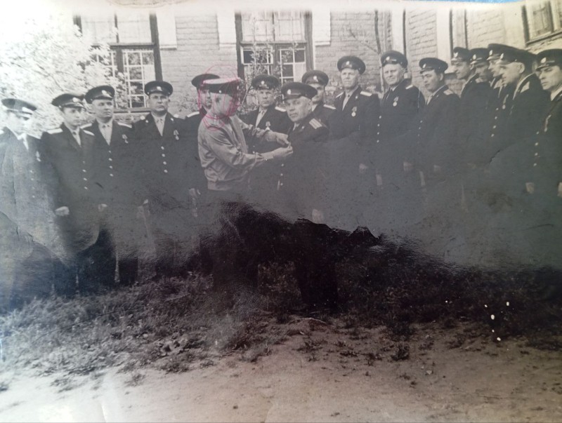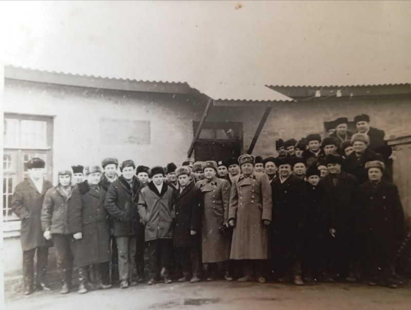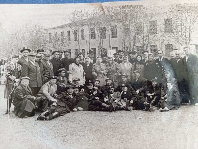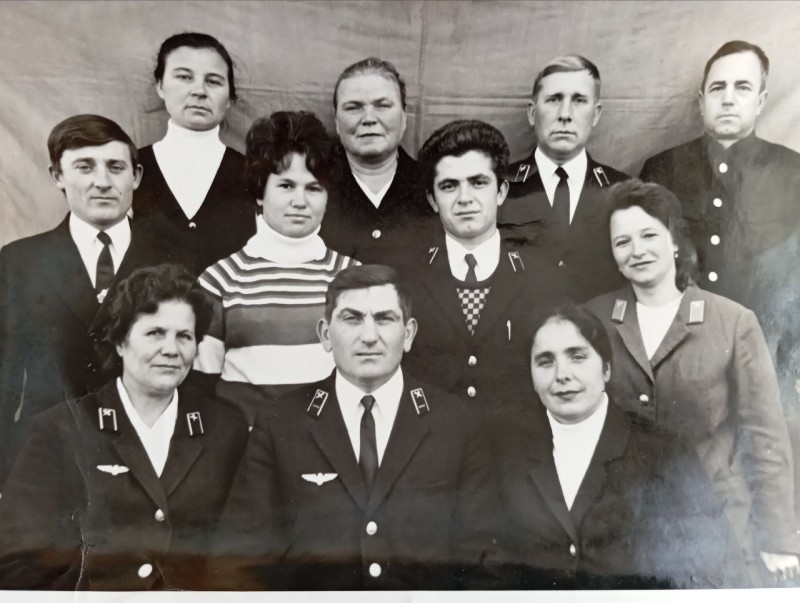 Фото, на якому зображена перша бригада комуністичної праці. Зліва на право: пом.машиніста Горбатюк П., Швец П.П., ст.маш. Дідур І.Є, Павлюк В., пом.машиніста Недзельський В.