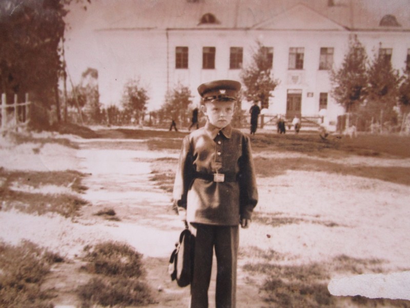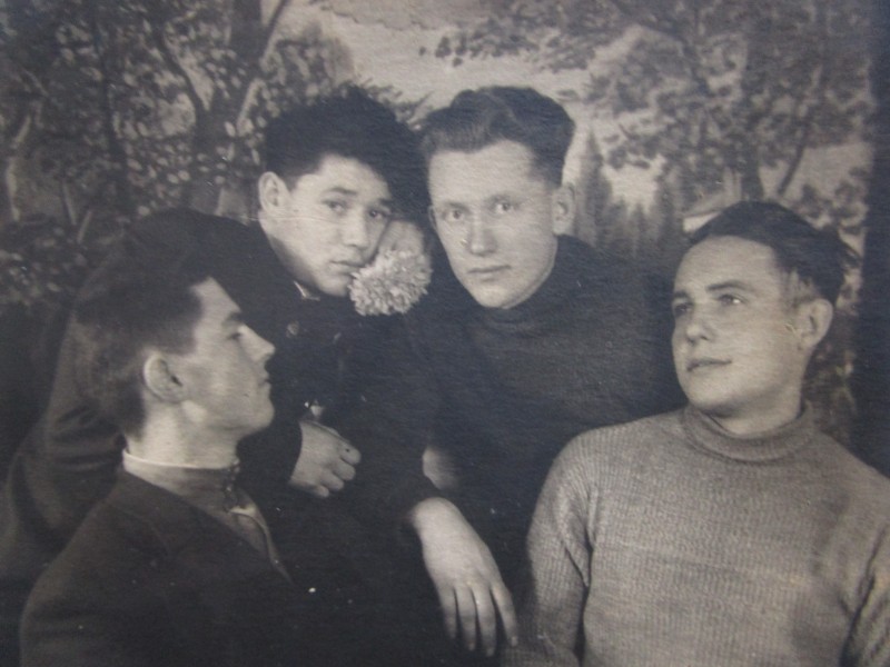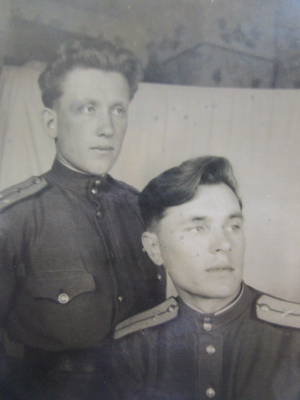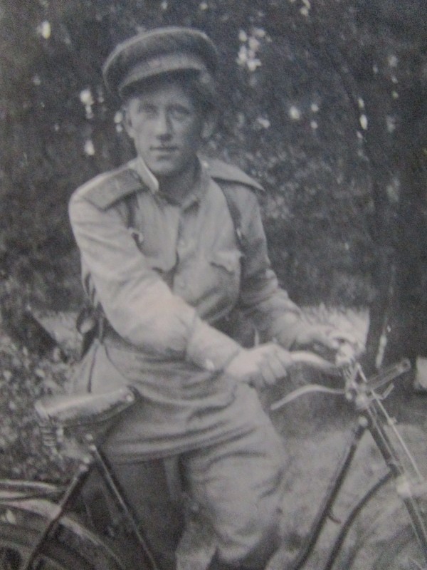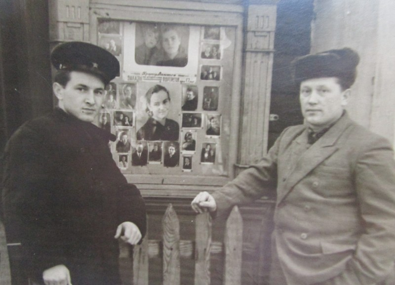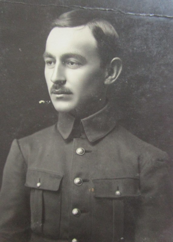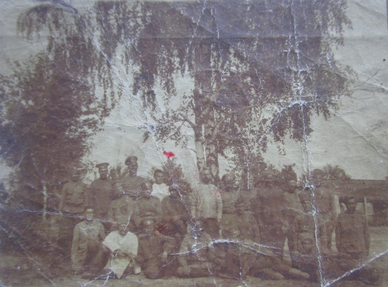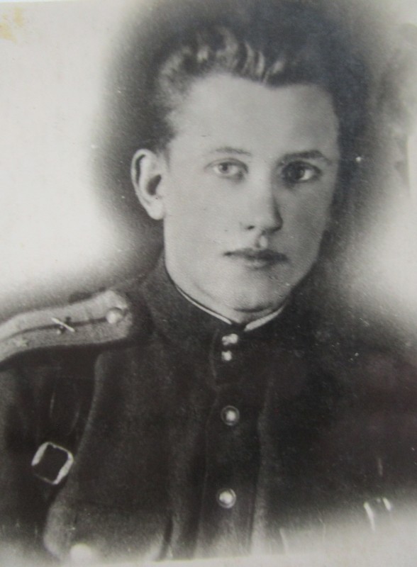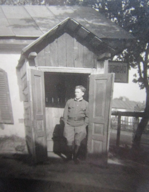 Жалій Василь Гнатович. Погрудне зображення в анфас. Чоловік одягнений у зимовий кожух, та зимову військову шапку. Березень 1943 року.