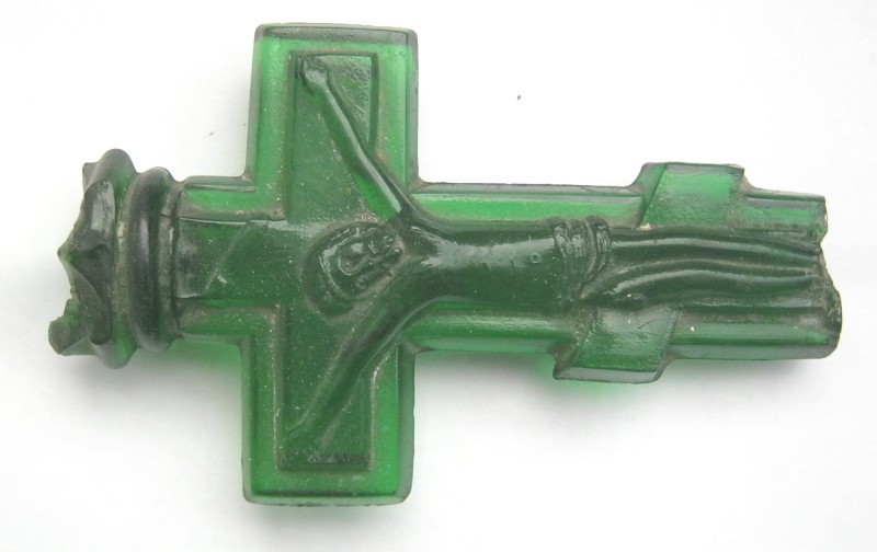 Фрагмент верхньої частини глечика. Вінець: збережений частково; має виразне горизонтальне розширення, краї відігнуті назовні. Горловина: коротка, плавно опущена до корпусу. Корпус (фрагмент): верхня частина має виразні горизонтальні прокреслені жолобки (орнаментальні або конструктивні пояски). Ручка: збережена частково; широка, масивна, прикріплювалася під вінцем та на верхніх плечиках. Загальна форма (за збереженим профілем) — глечик із широкою горловиною та декорованими горизонтальними жолобками корпусу.