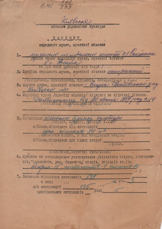Комунальний заклад Київської обласної ради "Меморіальний музей К. Г. Стеценка"Веб портал “Музейний фонд України” працює в тестовому режимі.