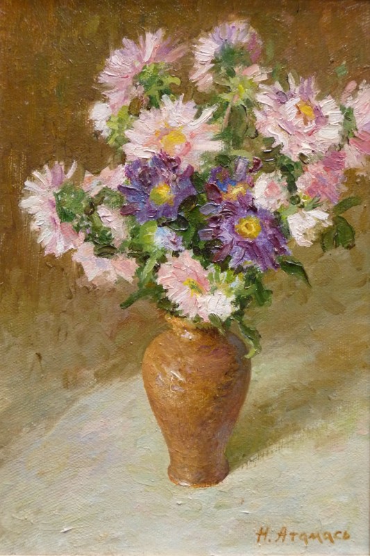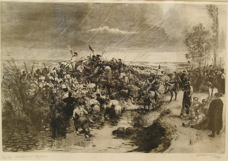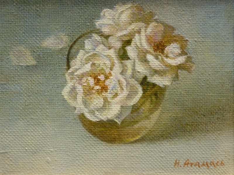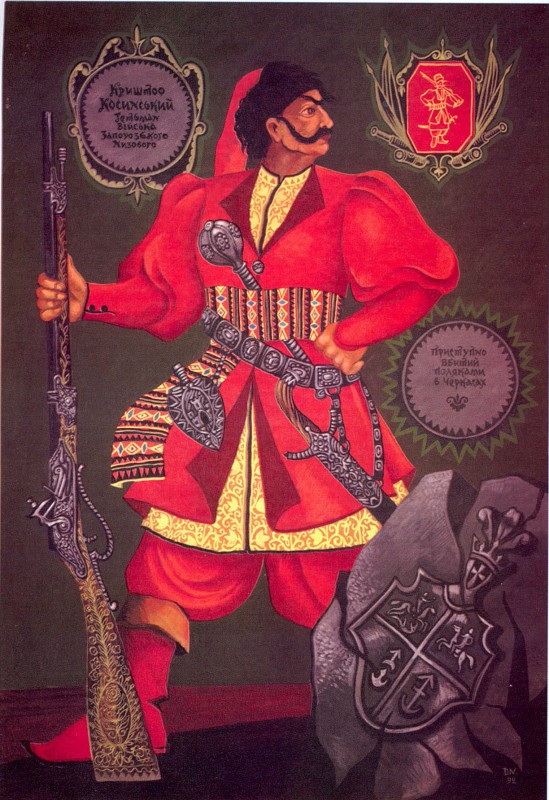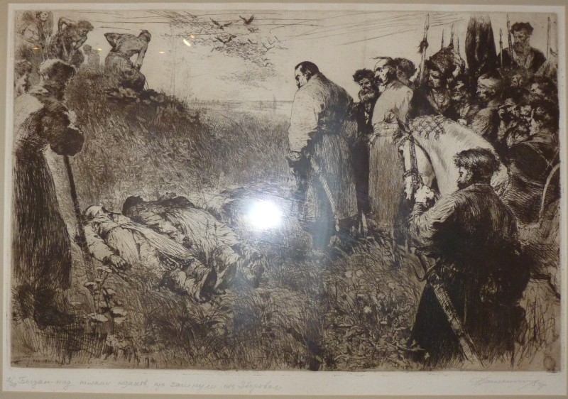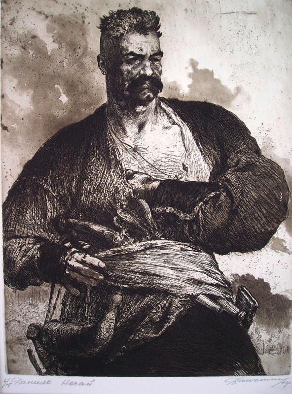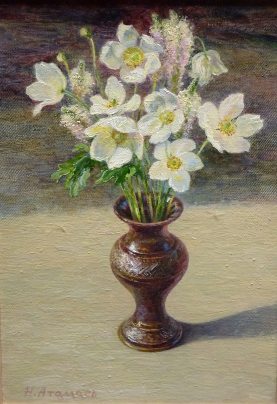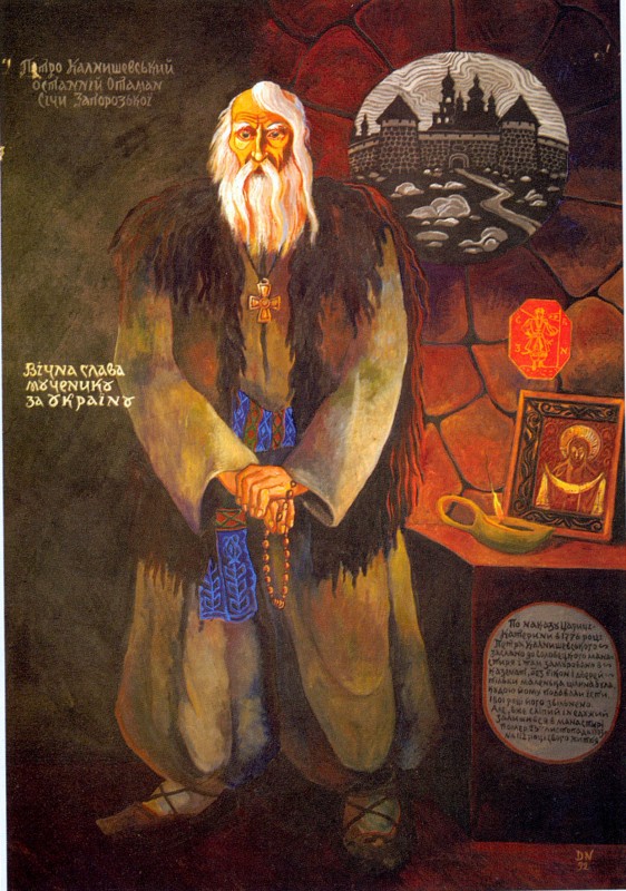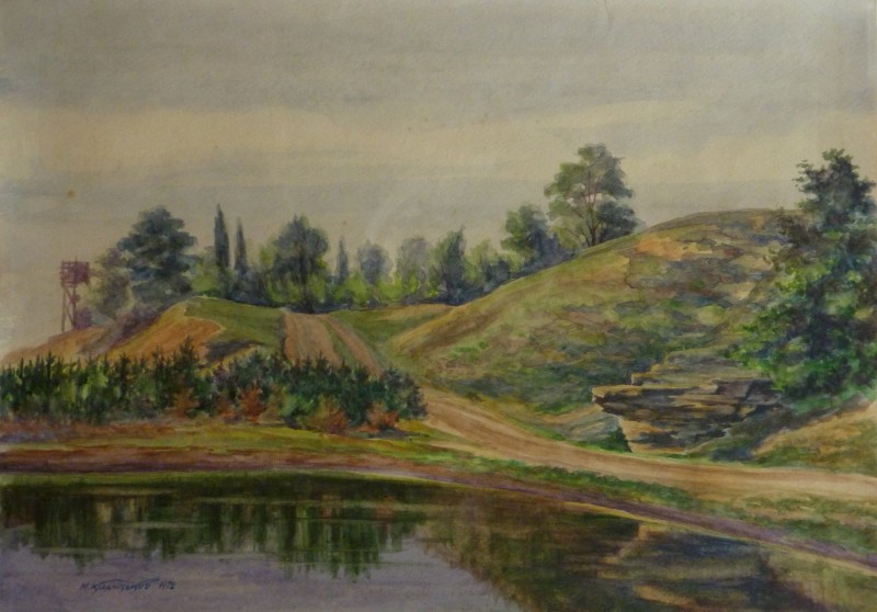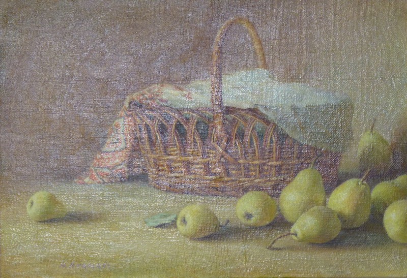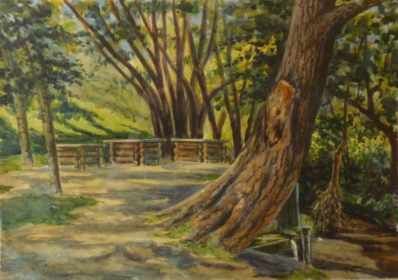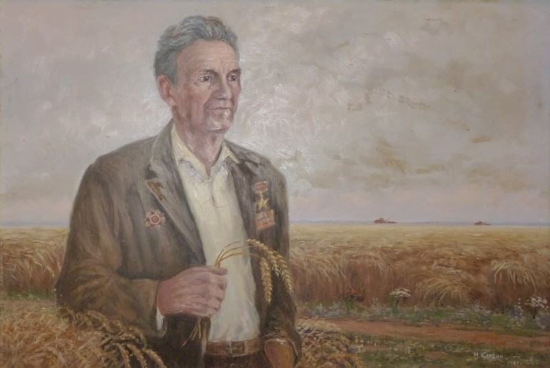 Зображення кольорове (домінують відтінки сірого, коричневого та білого кольорів), вертикальне, виконане олійними фарбами на полотні. На картині змальовано пейзаж зимового села. На передньому плані зображено дівчину, вдягнуту в кожух, вишиту сорочку, вишневу спідницю та червоний фартух, на голові жовта хустка, на ногах - коричневі чобітки. Дівчина несе на плечі коромисло з двома відрами. На другому плані - засніжені околиці села: безлисті дерева, плетені тини та глиняні хатки, вдалині на пагорбі видніється вітряк. В нижньому правому куті авторський підпис "Н.Атамась".