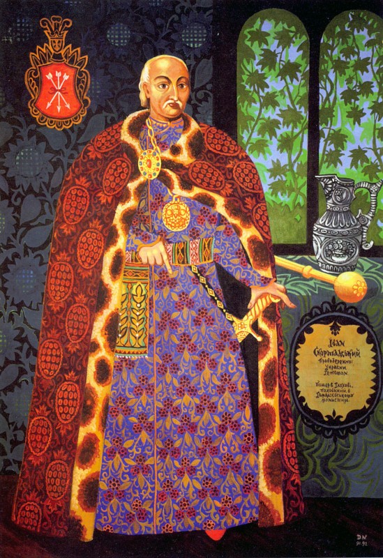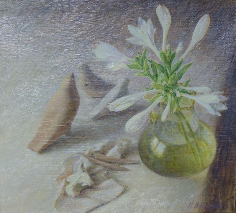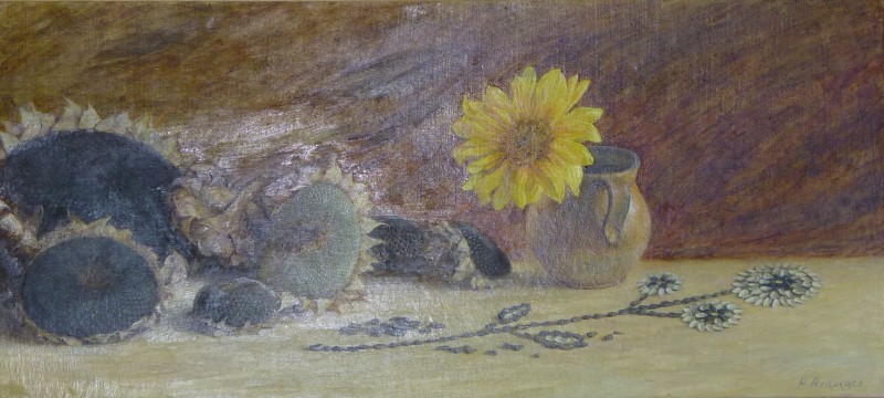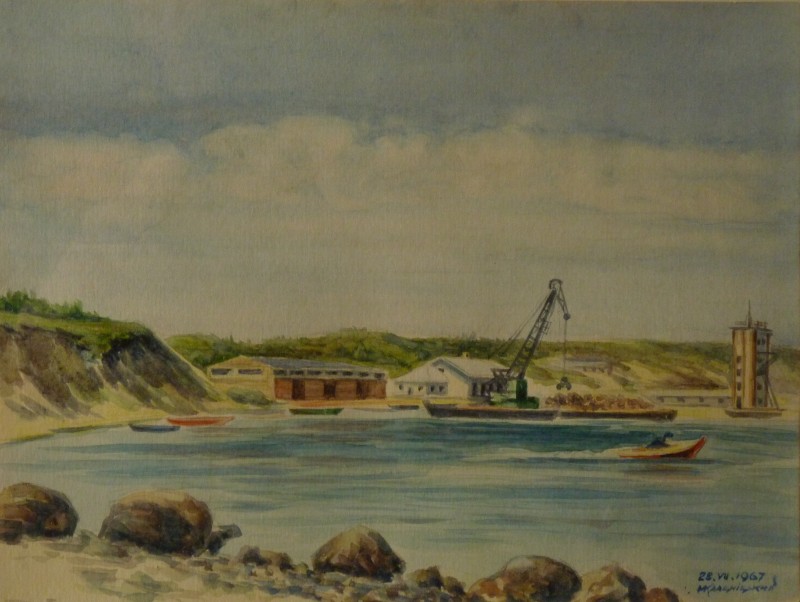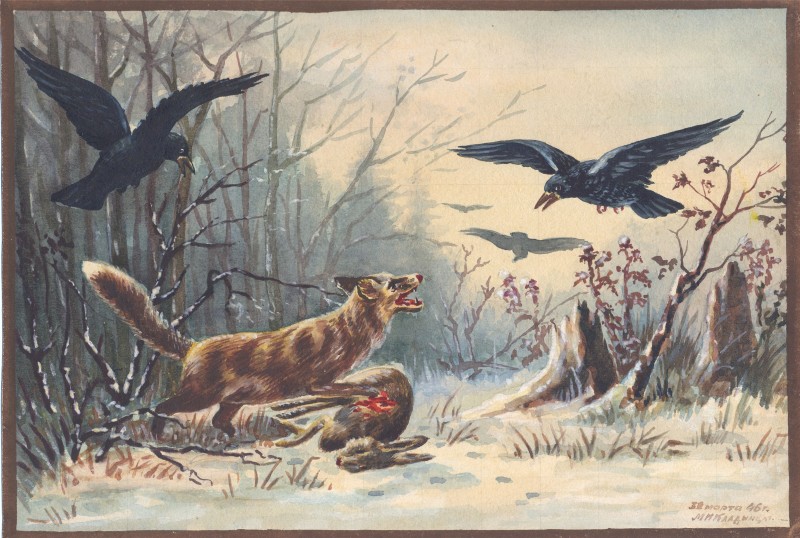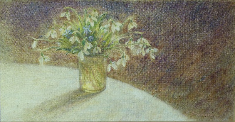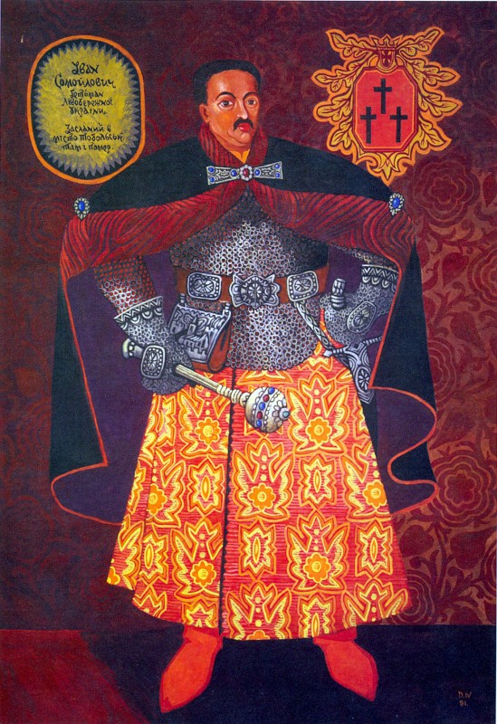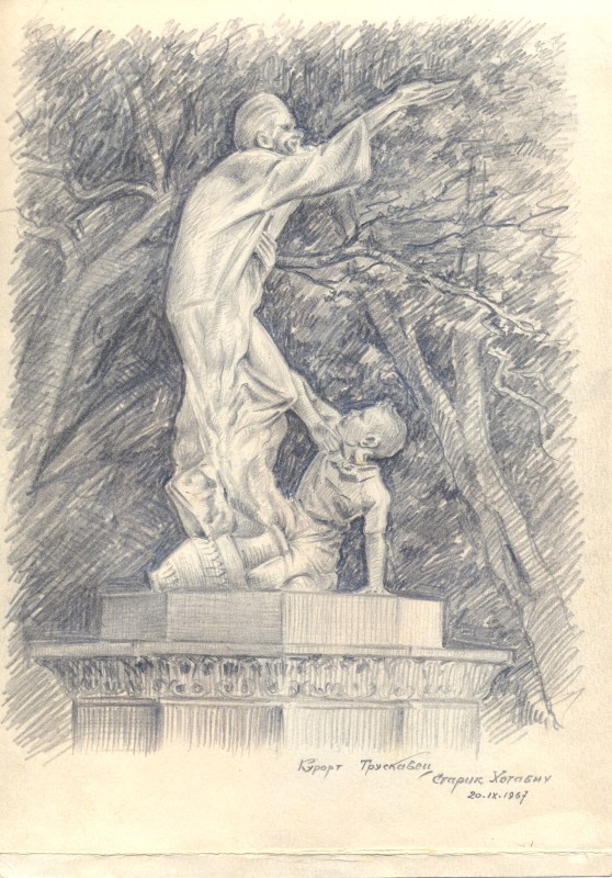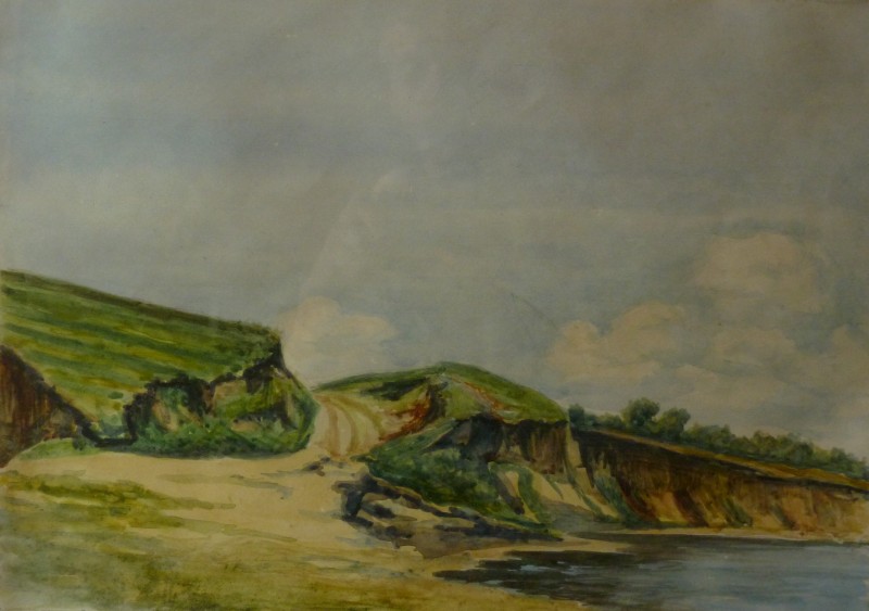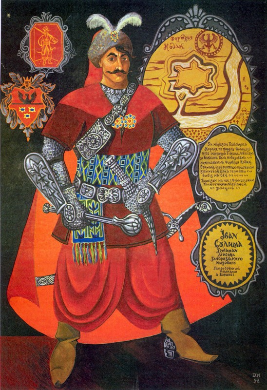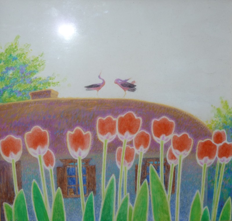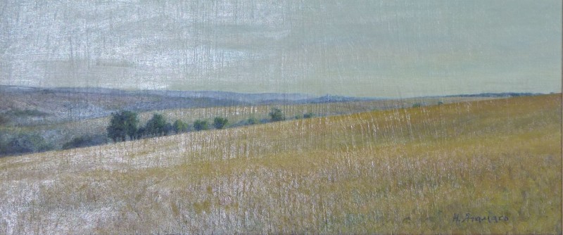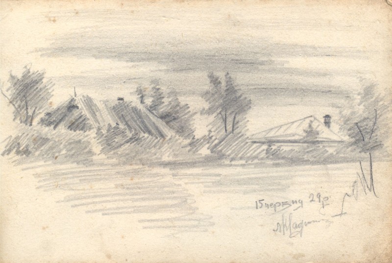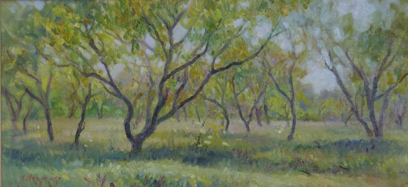 Зображення кольорове (домінують відтінки сірого, коричневого та білого кольорів), вертикальне, виконане олійними фарбами на полотні. На картині змальовано пейзаж зимового села. На передньому плані зображено дівчину, вдягнуту в кожух, вишиту сорочку, вишневу спідницю та червоний фартух, на голові жовта хустка, на ногах - коричневі чобітки. Дівчина несе на плечі коромисло з двома відрами. На другому плані - засніжені околиці села: безлисті дерева, плетені тини та глиняні хатки, вдалині на пагорбі видніється вітряк. В нижньому правому куті авторський підпис "Н.Атамась".