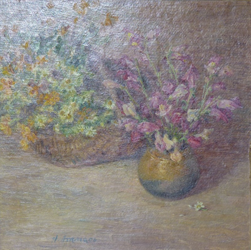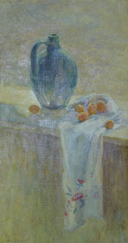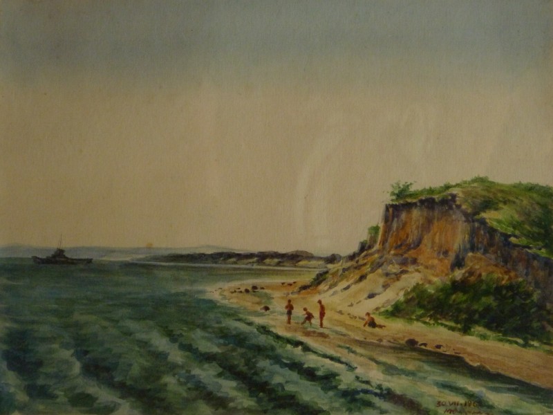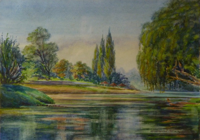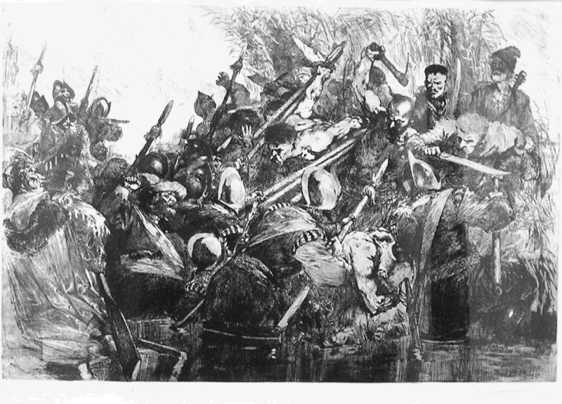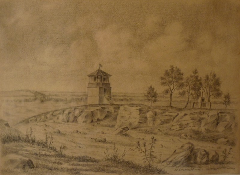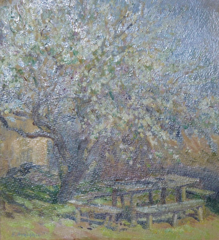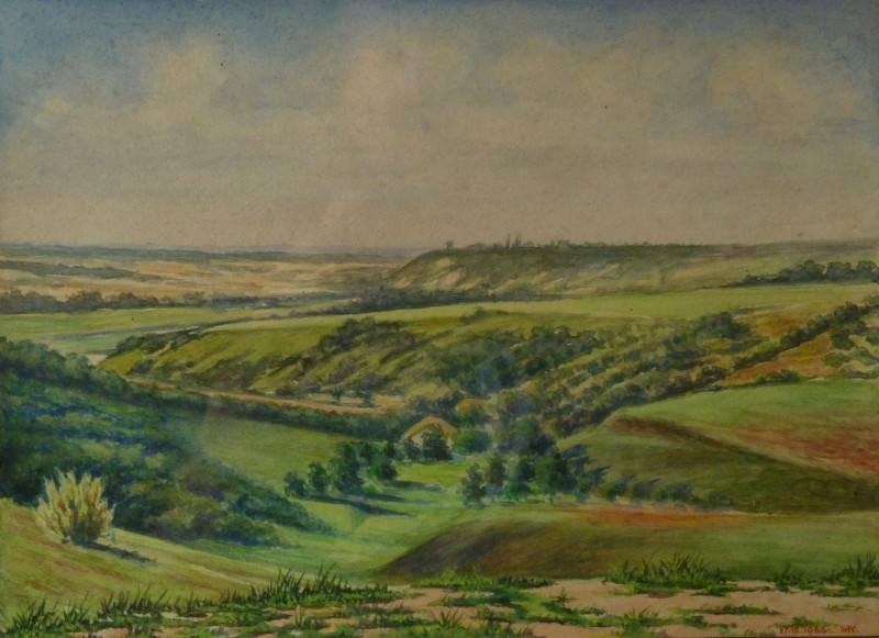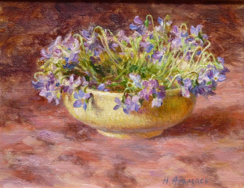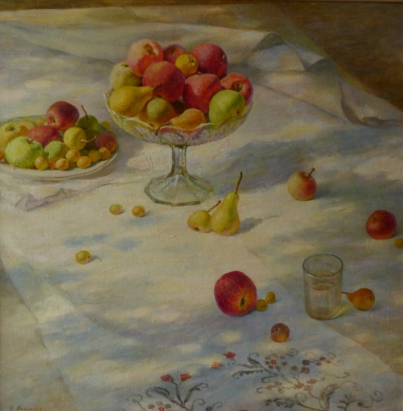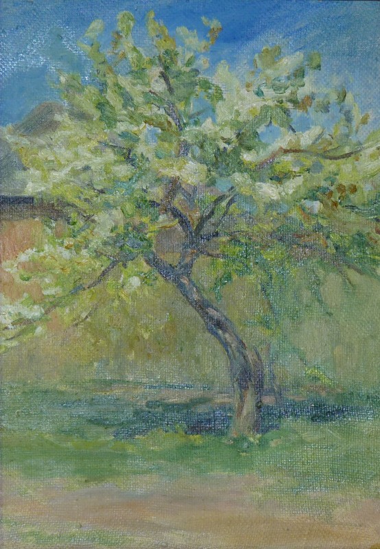 Зображення кольорове (домінують відтінки сірого, коричневого та білого кольорів), вертикальне, виконане олійними фарбами на полотні. На картині змальовано пейзаж зимового села. На передньому плані зображено дівчину, вдягнуту в кожух, вишиту сорочку, вишневу спідницю та червоний фартух, на голові жовта хустка, на ногах - коричневі чобітки. Дівчина несе на плечі коромисло з двома відрами. На другому плані - засніжені околиці села: безлисті дерева, плетені тини та глиняні хатки, вдалині на пагорбі видніється вітряк. В нижньому правому куті авторський підпис "Н.Атамась".