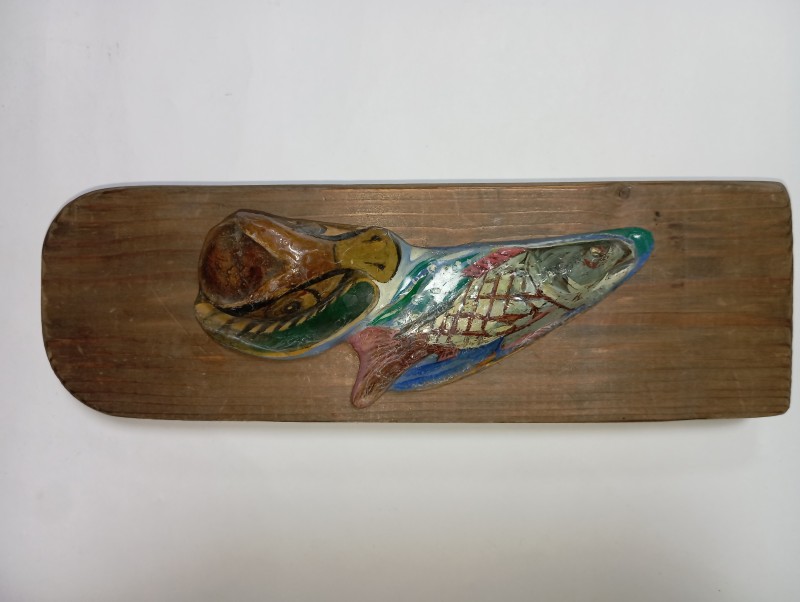 На передньому плані картини зображено вкриту кригою річку, на правому березі якої на потемнівшому знвігу стоїть рудий собака. На задньому плані - темний ліс та хмарне небо