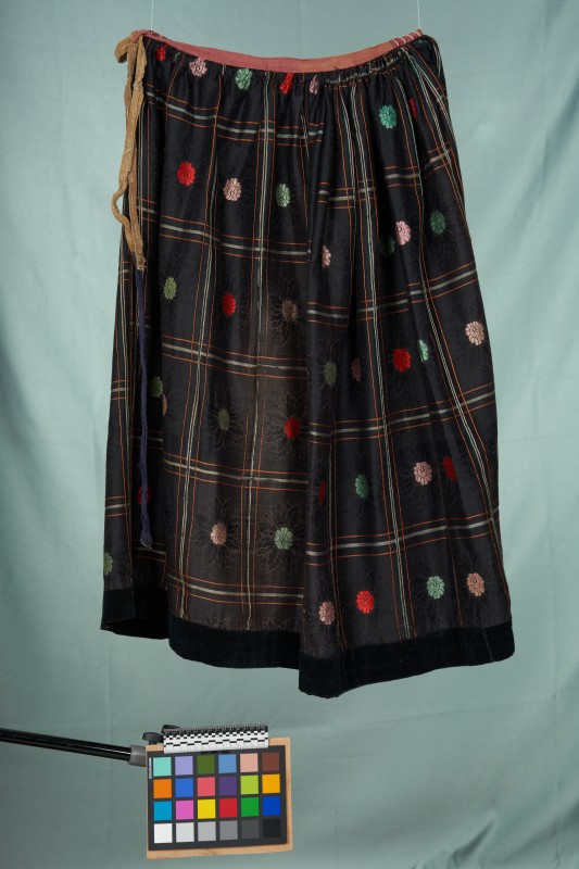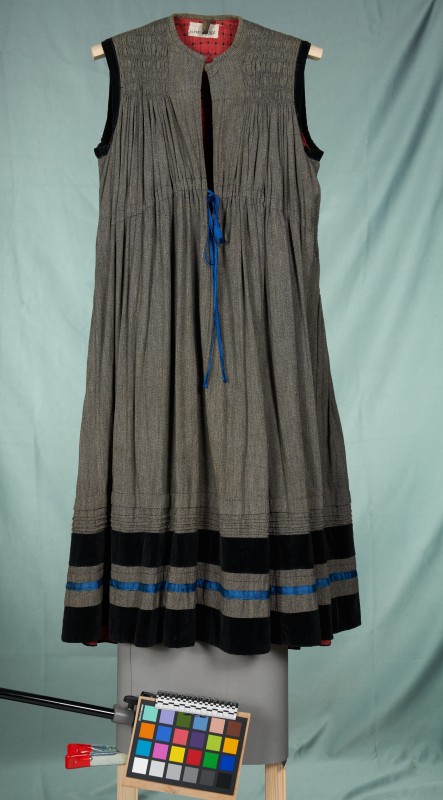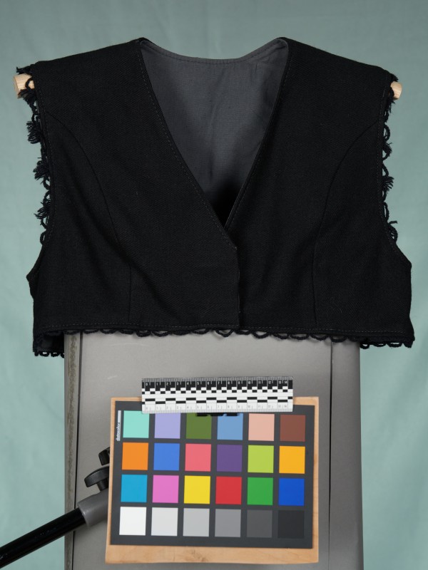 Кофта жіноча (куцупка), призібрана біля коміра, застібається на один гудзик, довгі рукави з манжетами, вишита, ан плечах та манжетах накладені смуги сутажа та тасьми, внизу обметена без рубця білою ниткою. с. Сергіївка, Саратський район Одеської області, початок XX ст.