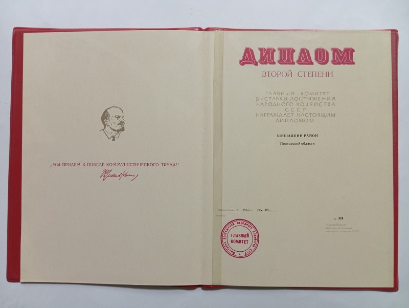 Зброшуровані аркуші друкованого матеріалу, що скріплені з одного боку, та поміщені в тверду обкладинку сірого кольору із портретом Леніна В.І. в профіль чорним кольором та написами чорним кольором російською мовою в три рядки "ВСЕСОЮЗНЫЙ ЛЕНИНСКИЙ КОММУНИСТИЧЕСКИЙ СОЮЗ МОЛОДЁЖИ" та українською мовою "ВСЕСОЮЗНА ЛЕНІНСЬКА КОМУНІСТИЧНА СПІЛКА МОЛОДІ", в один рядок "ЦК ВЛКСМ". Інші написи затерто.