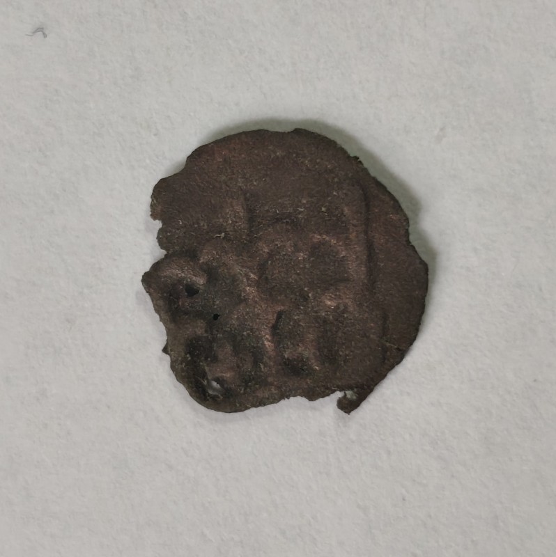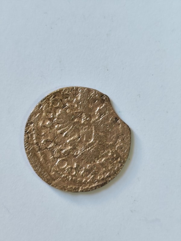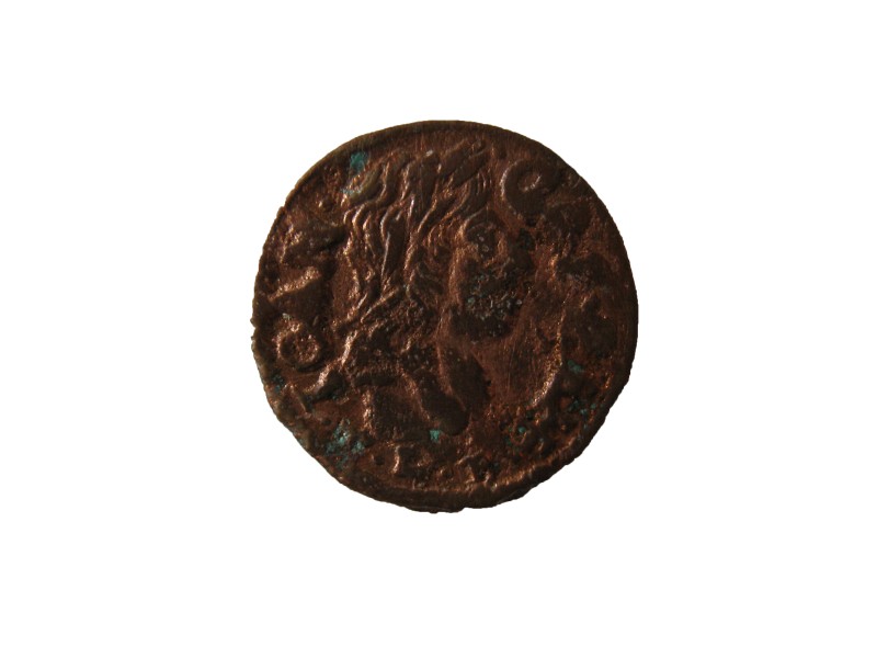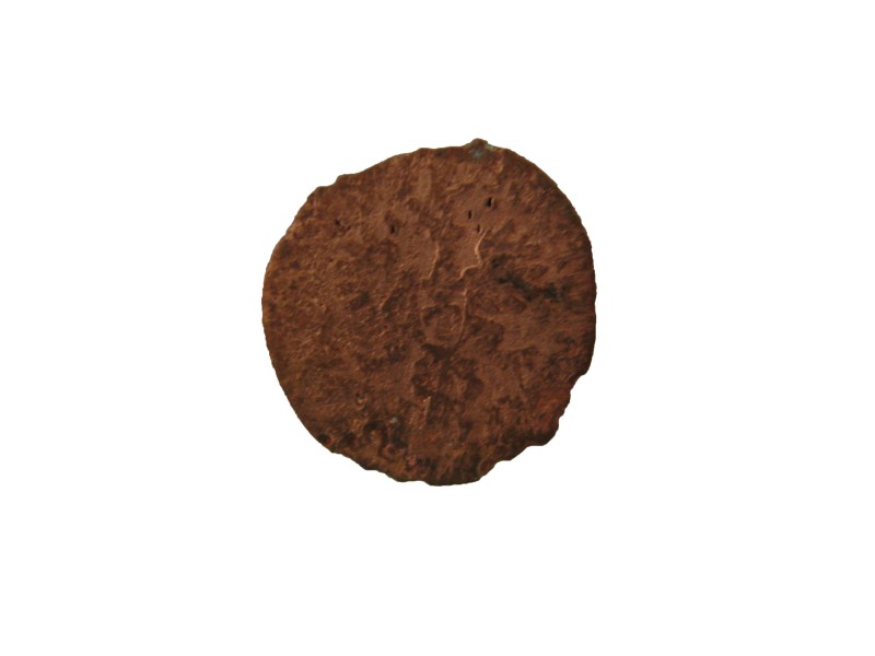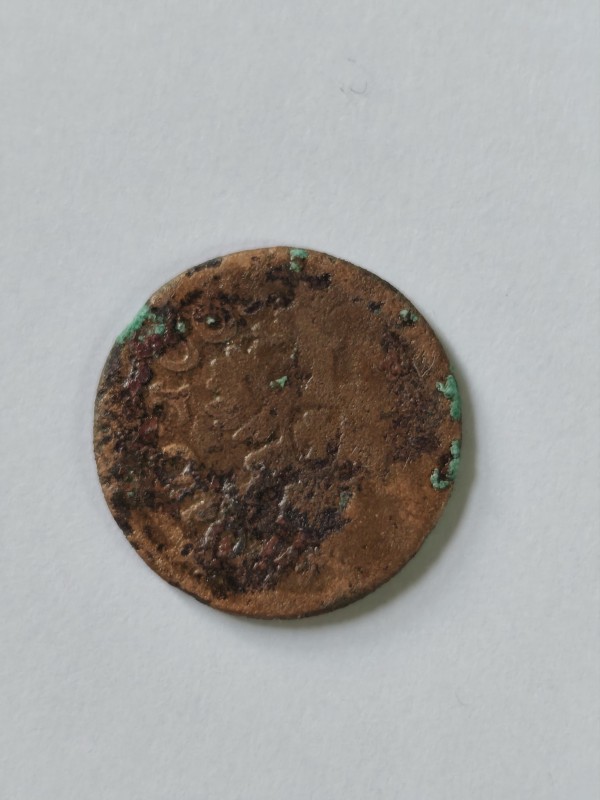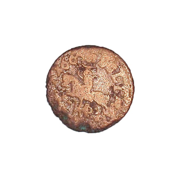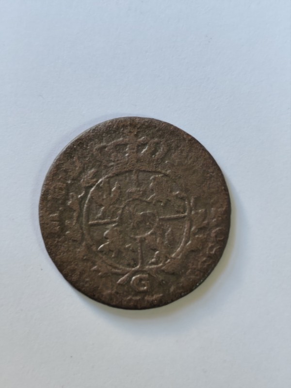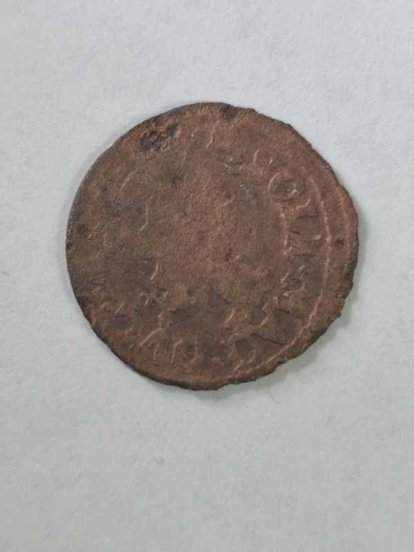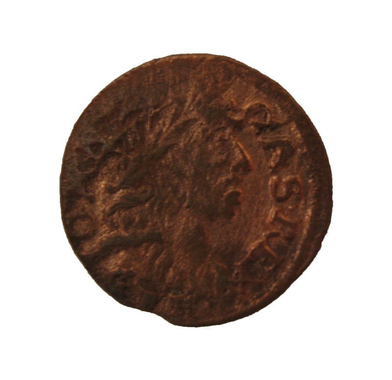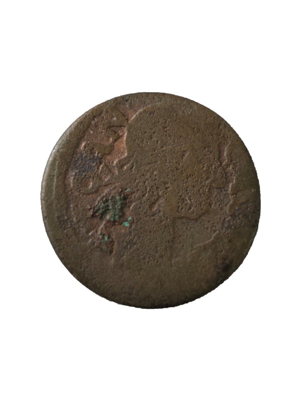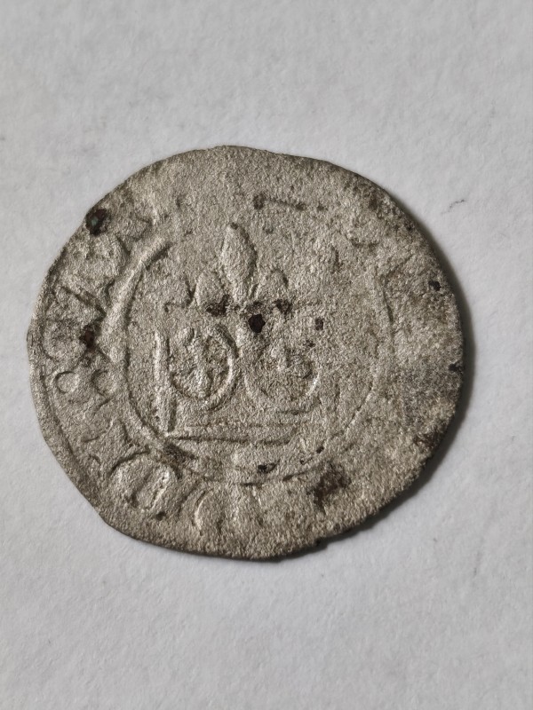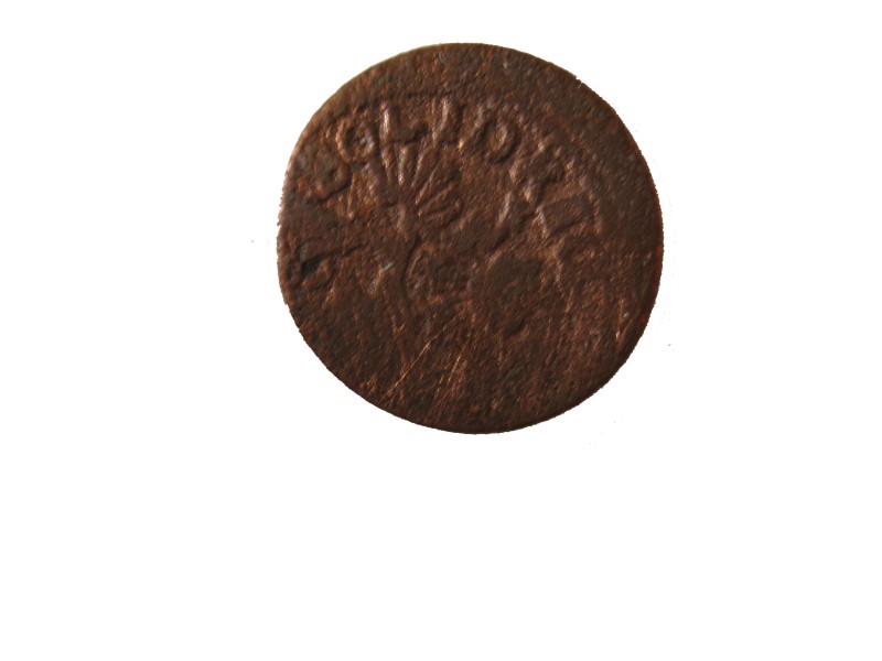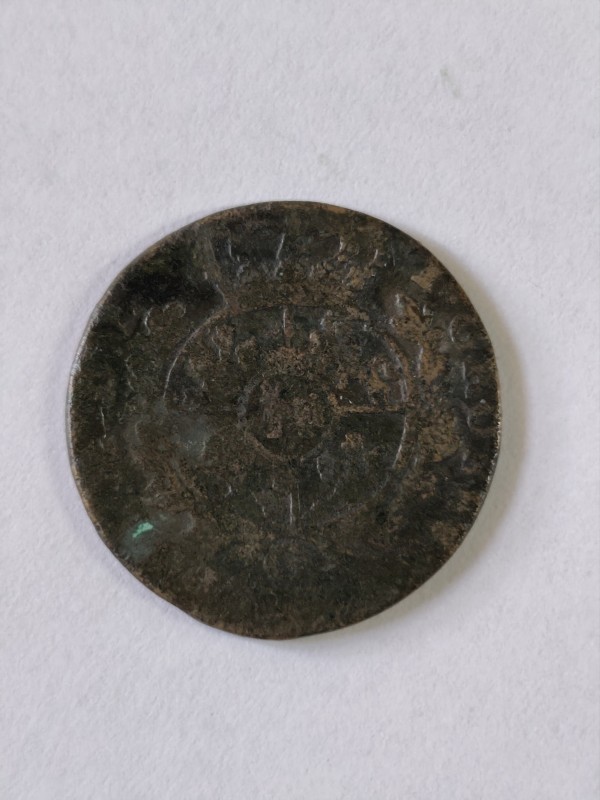 Монета круглої форми - боратинка. Аверс монети стертий, зображення і легенда монети не простежується. Реверс монети - зображено герб Погоня (вершник на коні із мечем у руках). Навколо частково прочитується легенда монети "CO...G LI..."