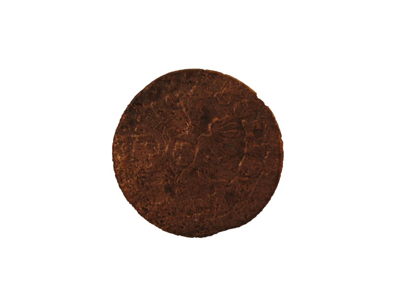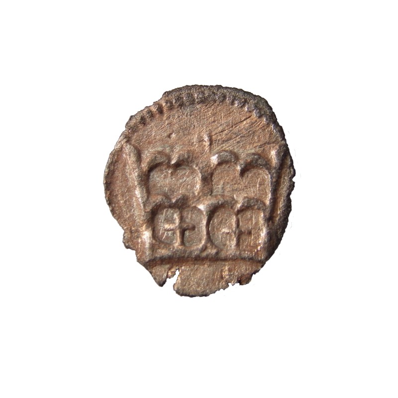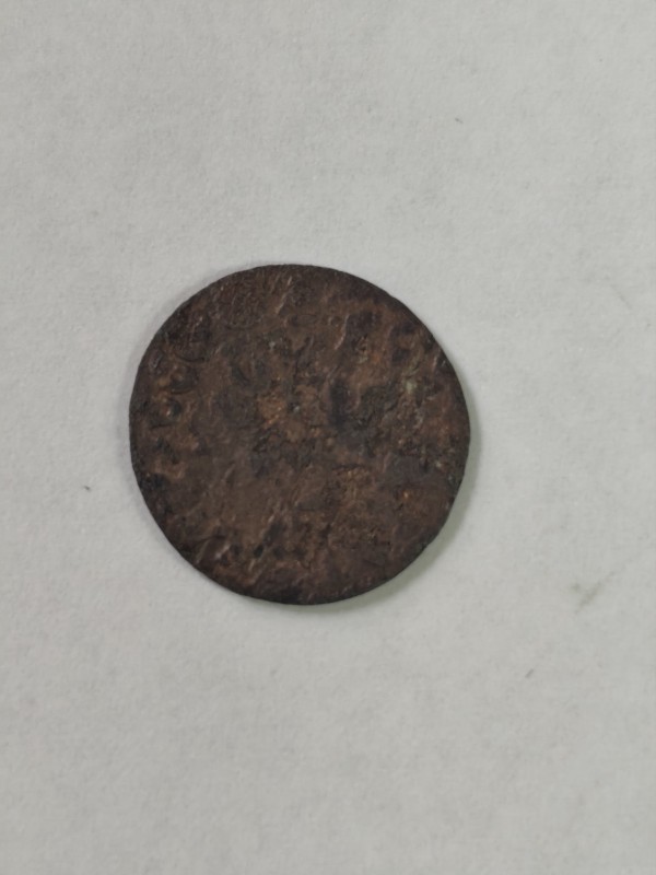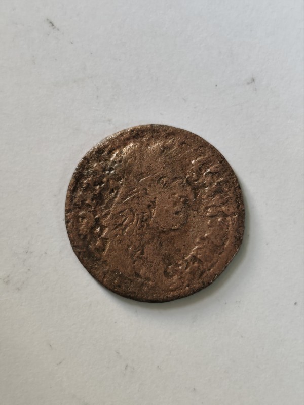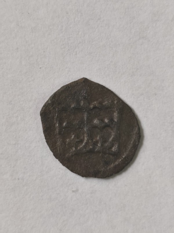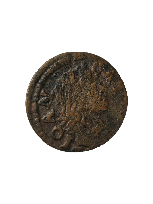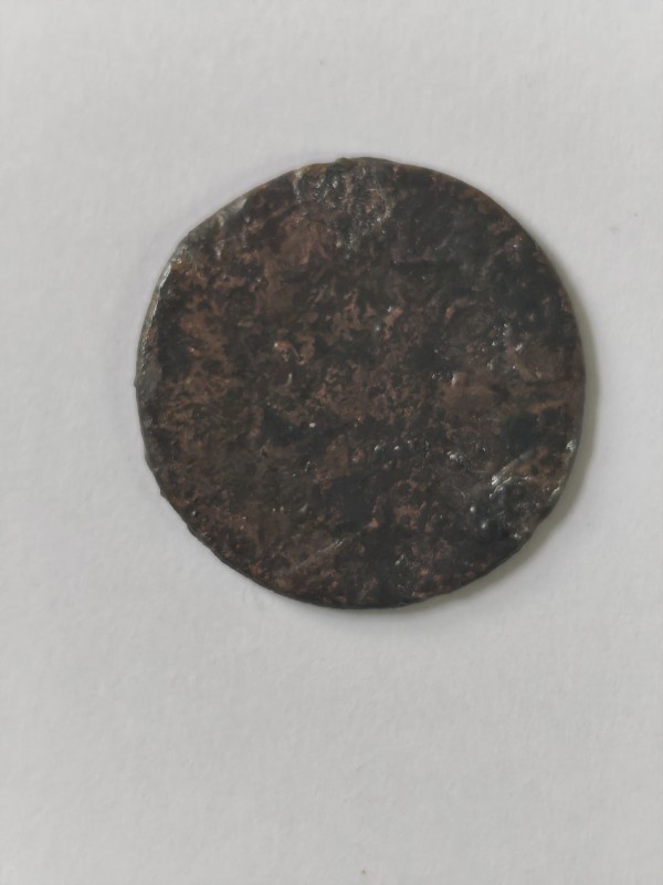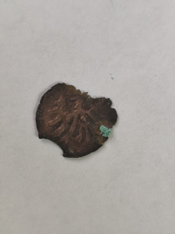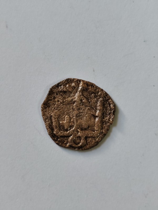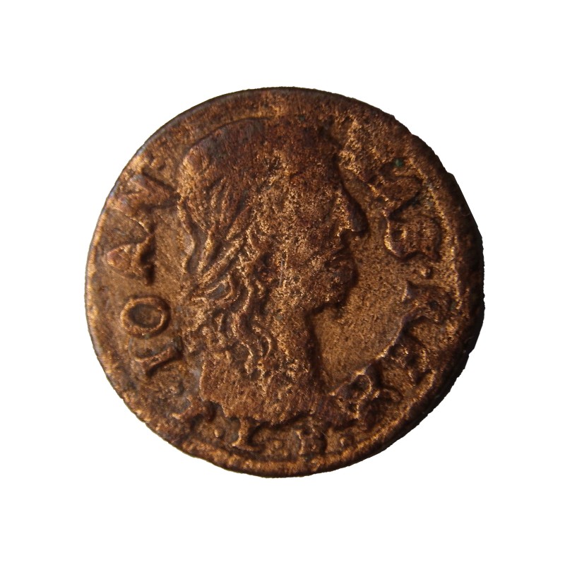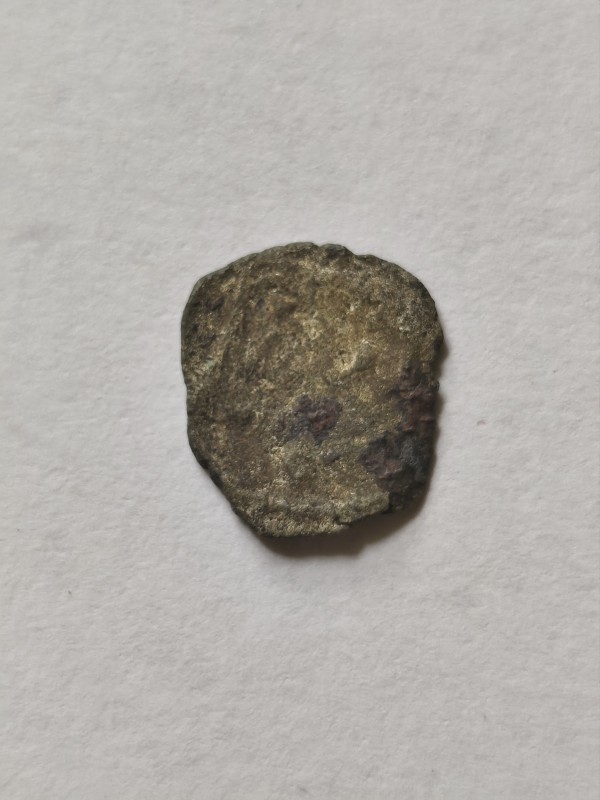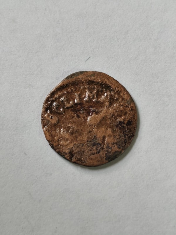 Монета круглої форми - боратинка. Аверс монети стертий, зображення і легенда монети не простежується. Реверс монети - зображено герб Погоня (вершник на коні із мечем у руках). Навколо частково прочитується легенда монети "CO...G LI..."