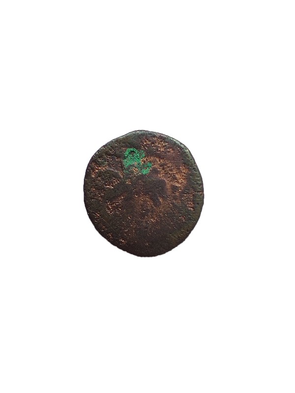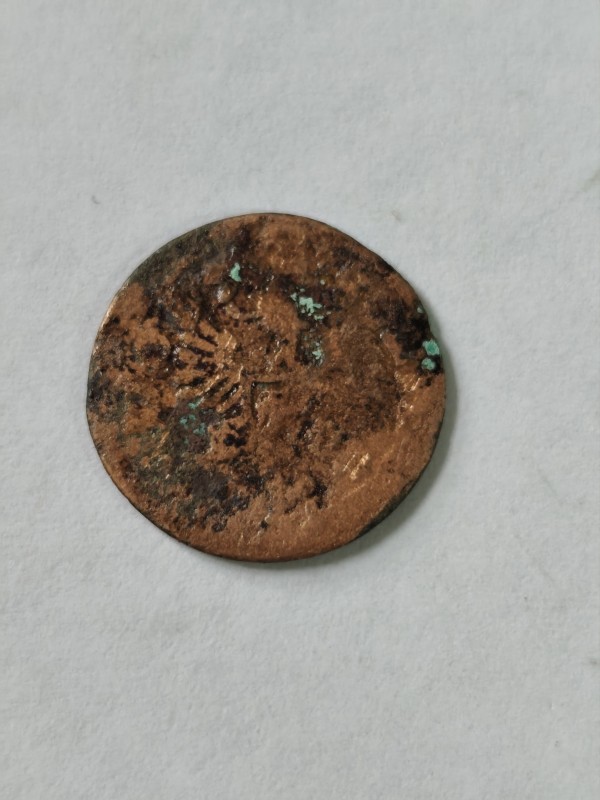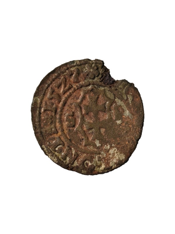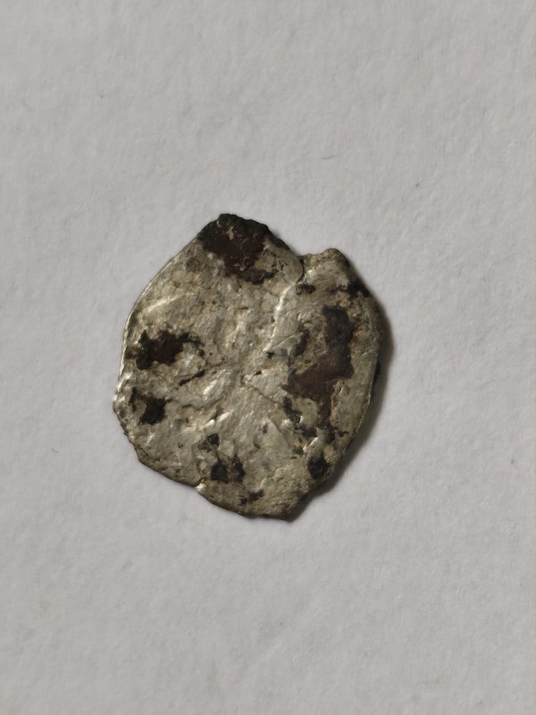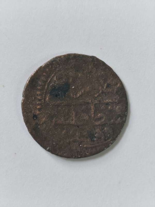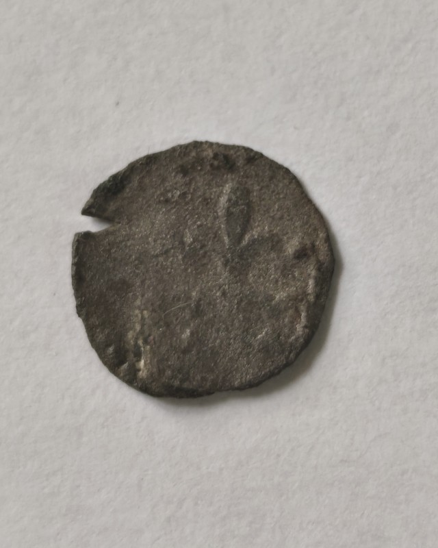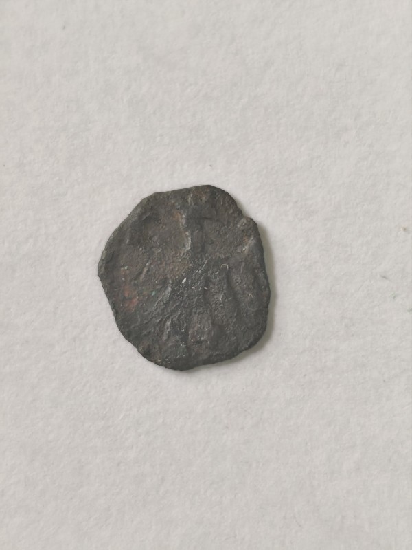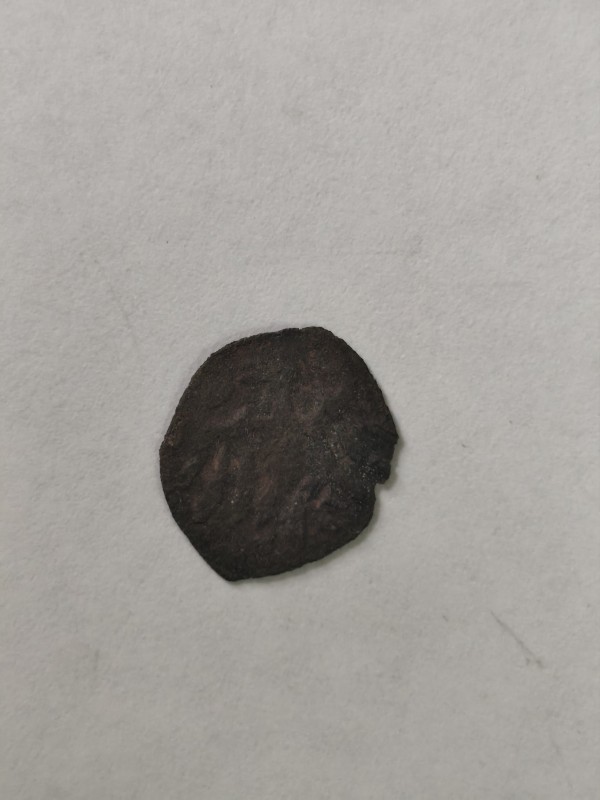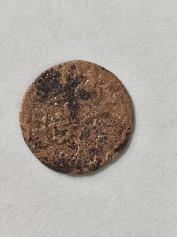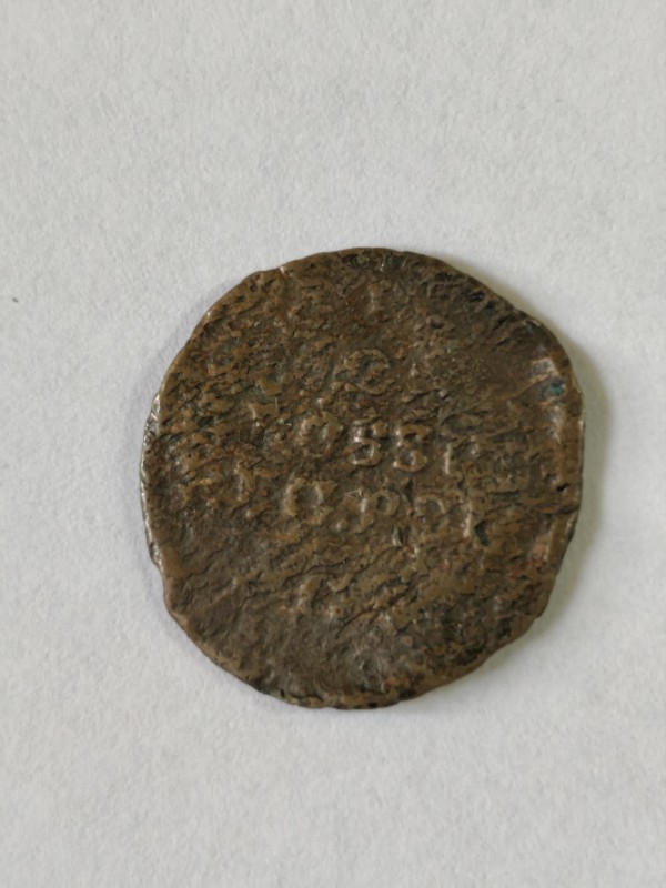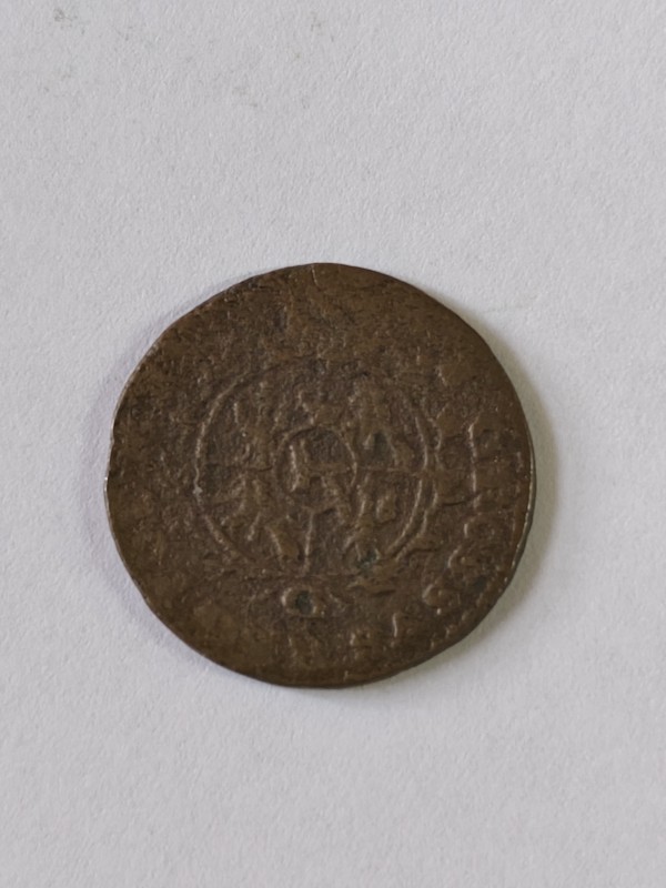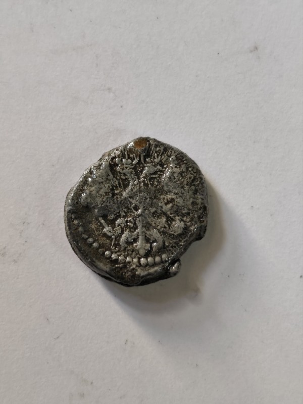 Монета круглої форми - боратинка. Аверс монети стертий, зображення і легенда монети не простежується. Реверс монети - зображено герб Погоня (вершник на коні із мечем у руках). Навколо частково прочитується легенда монети "CO...G LI..."