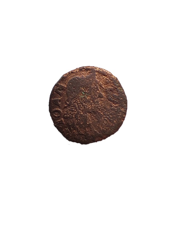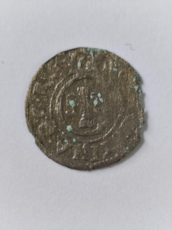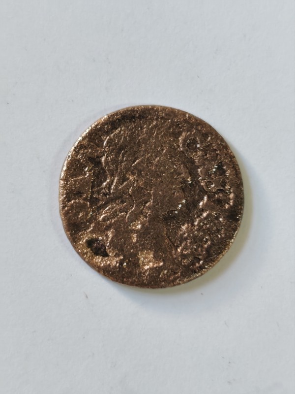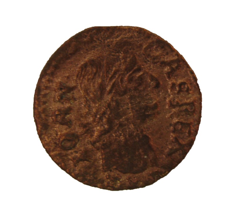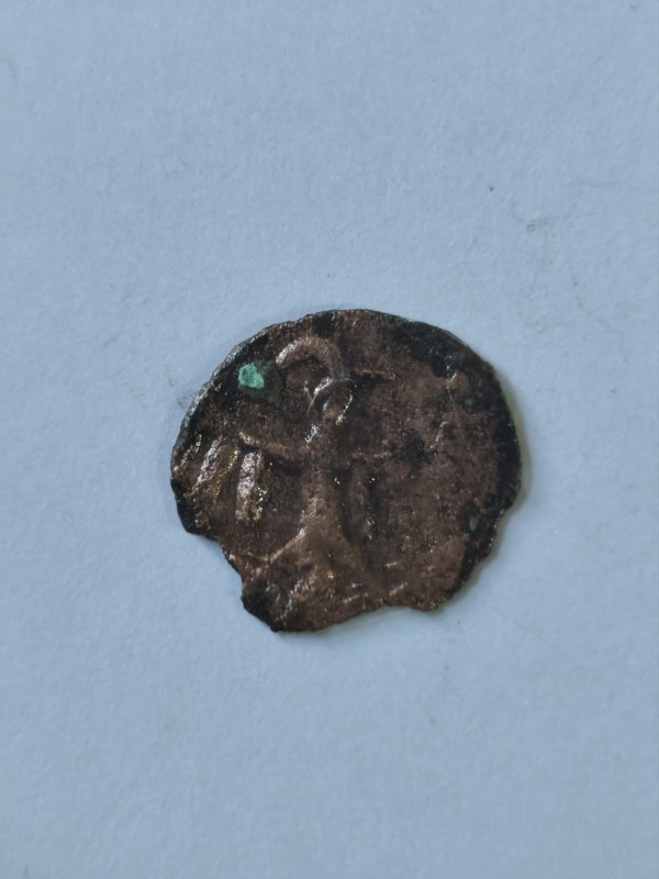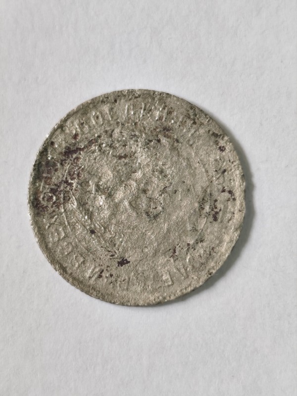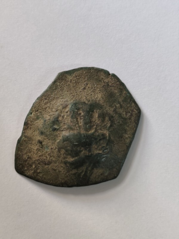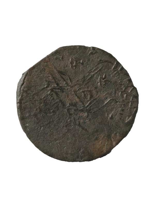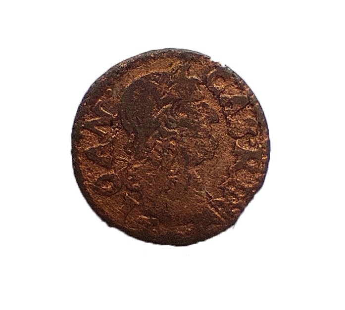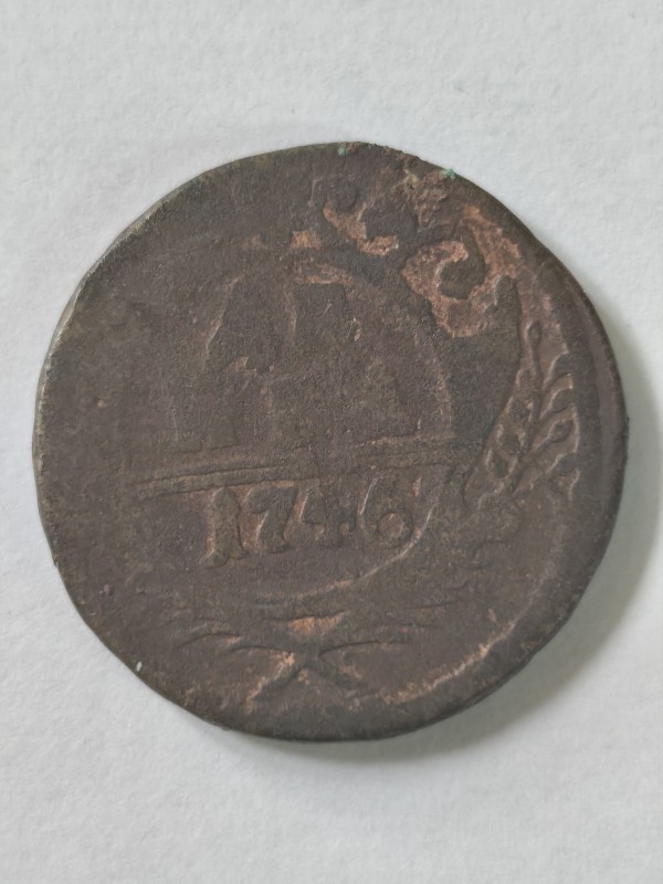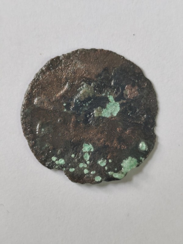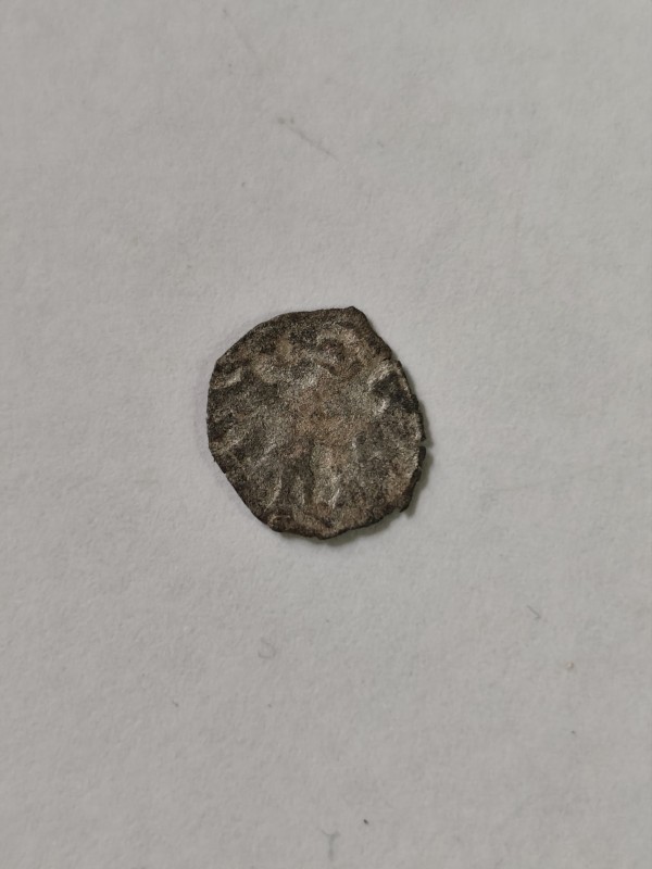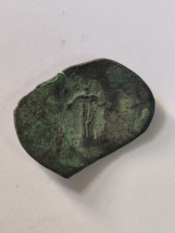 Монета круглої форми - боратинка. Аверс монети стертий, зображення і легенда монети не простежується. Реверс монети - зображено герб Погоня (вершник на коні із мечем у руках). Навколо частково прочитується легенда монети "CO...G LI..."