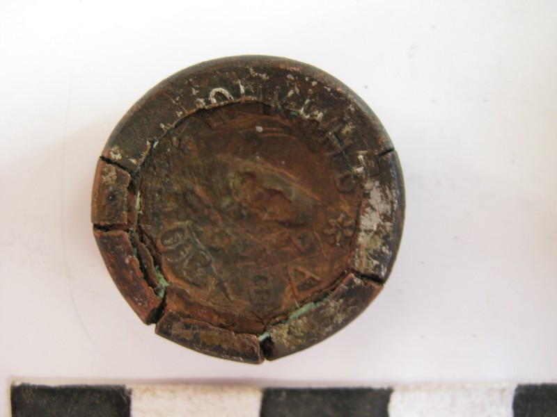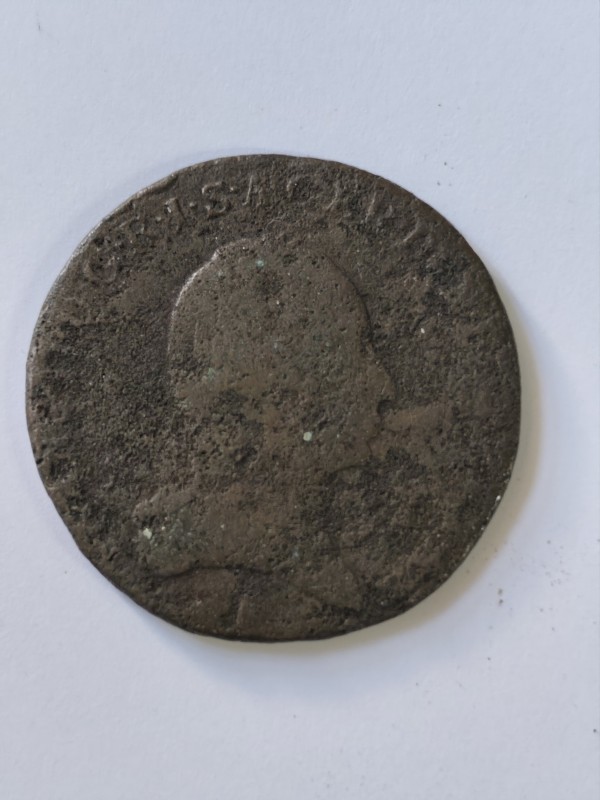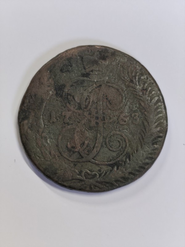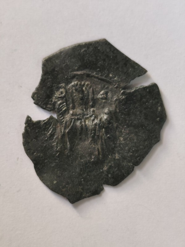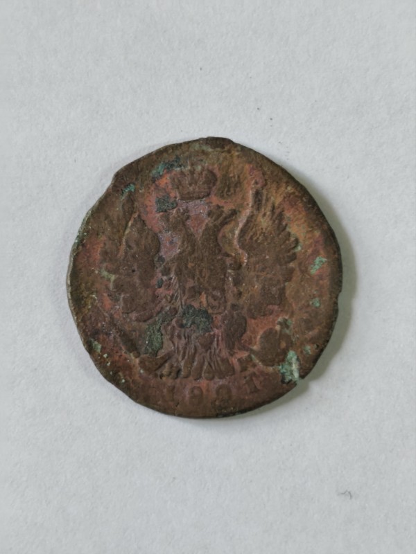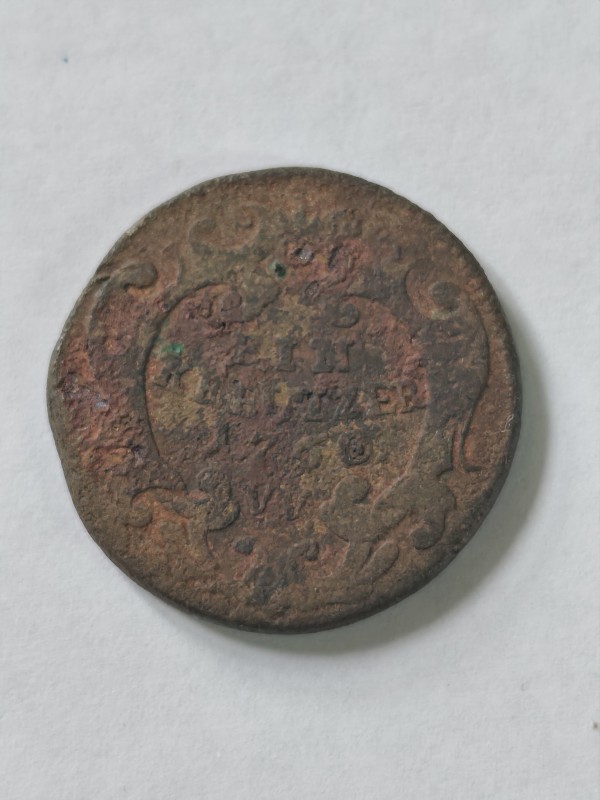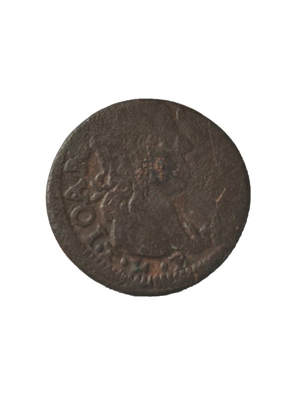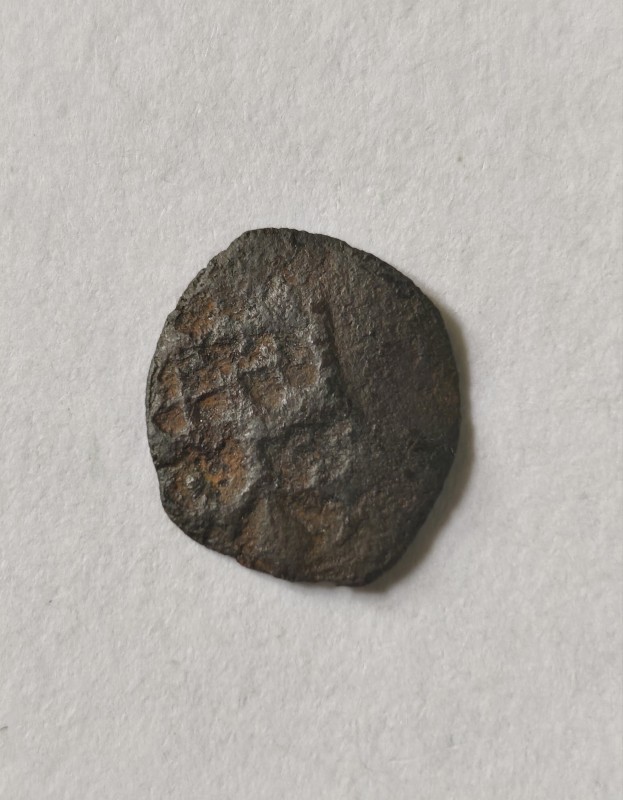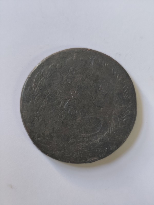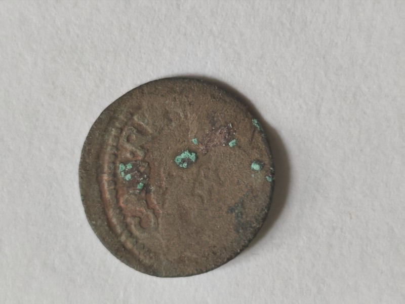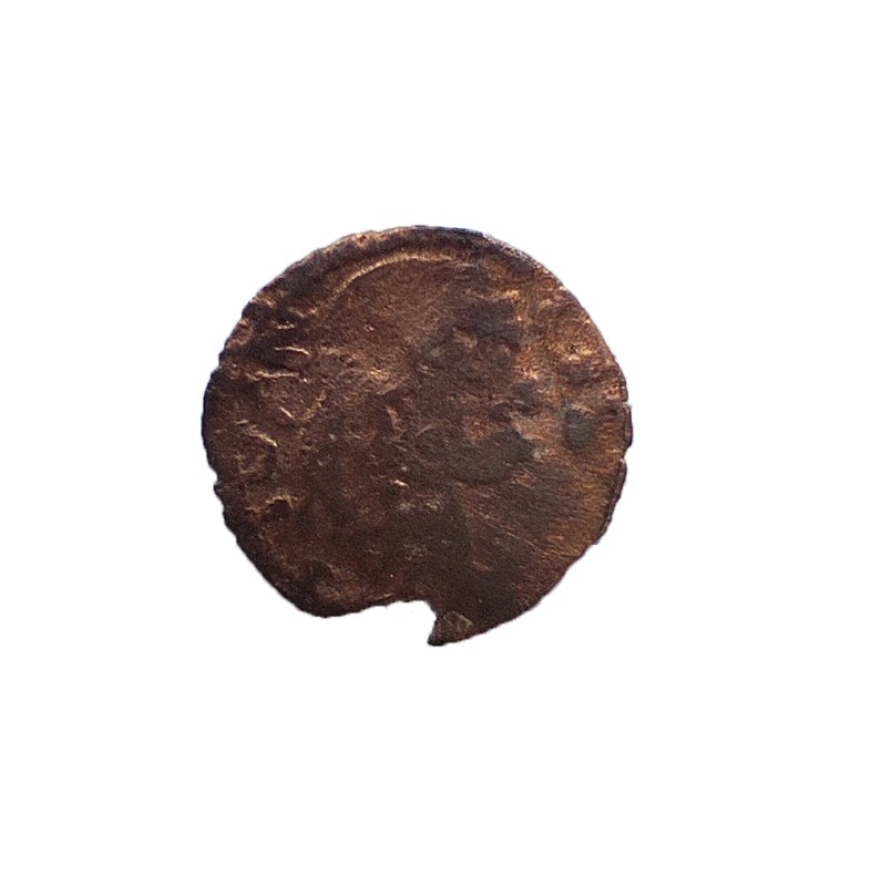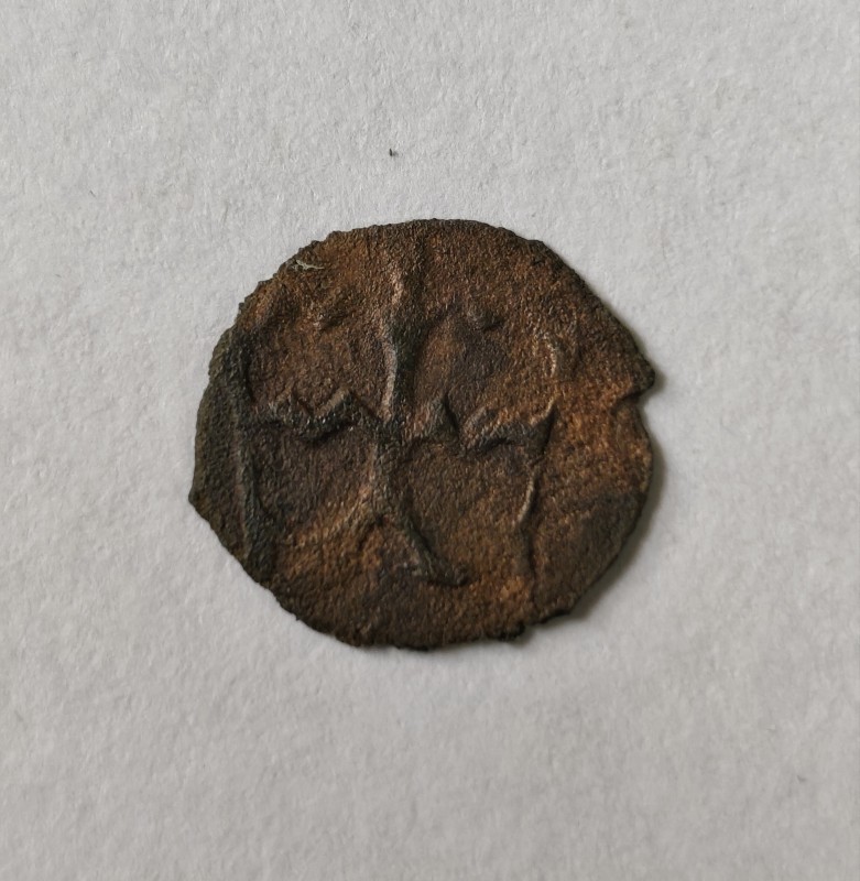 Монета круглої форми - боратинка. Аверс монети стертий, зображення і легенда монети не простежується. Реверс монети - зображено герб Погоня (вершник на коні із мечем у руках). Навколо частково прочитується легенда монети "CO...G LI..."