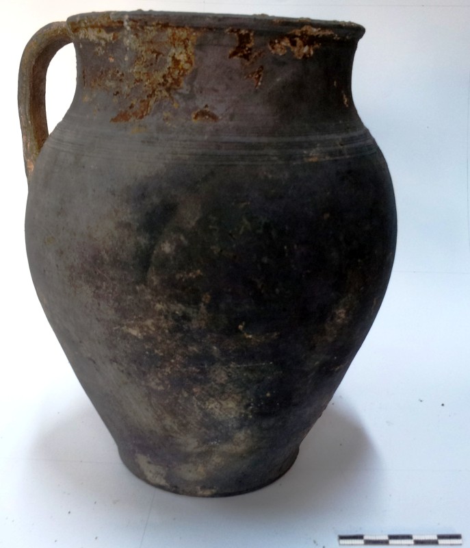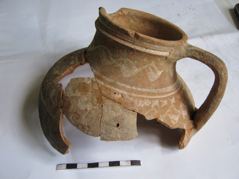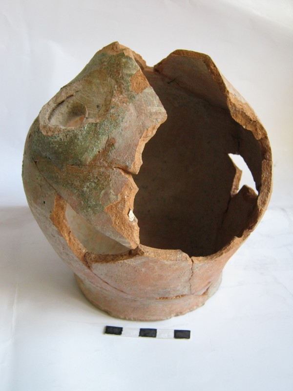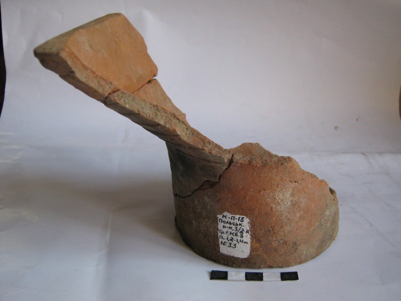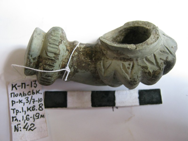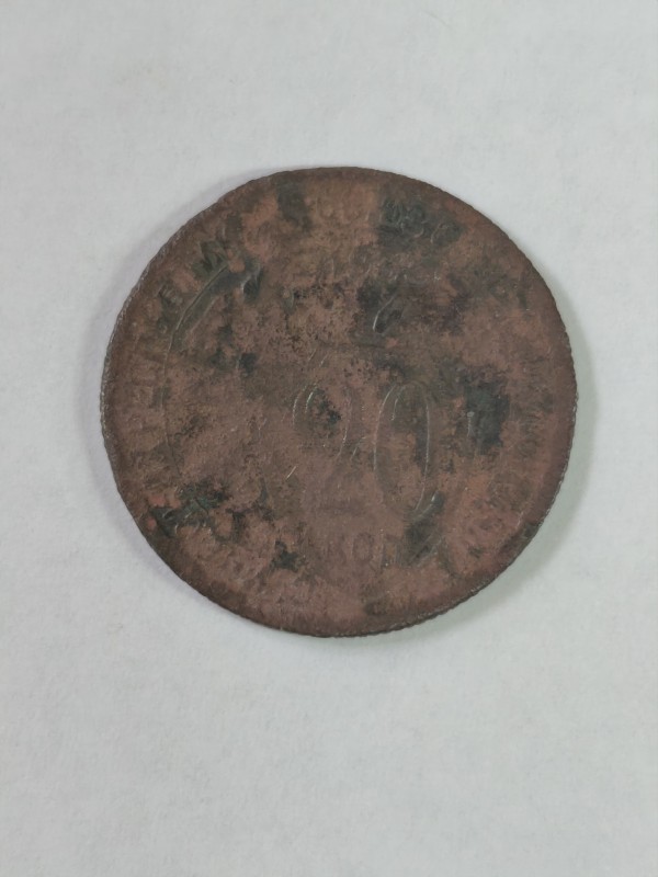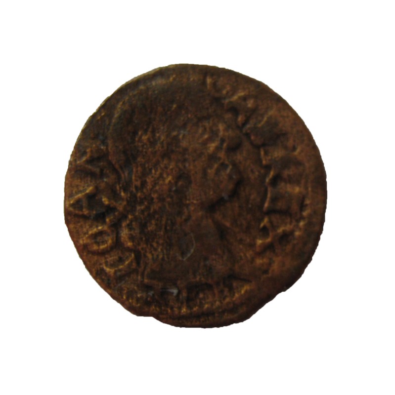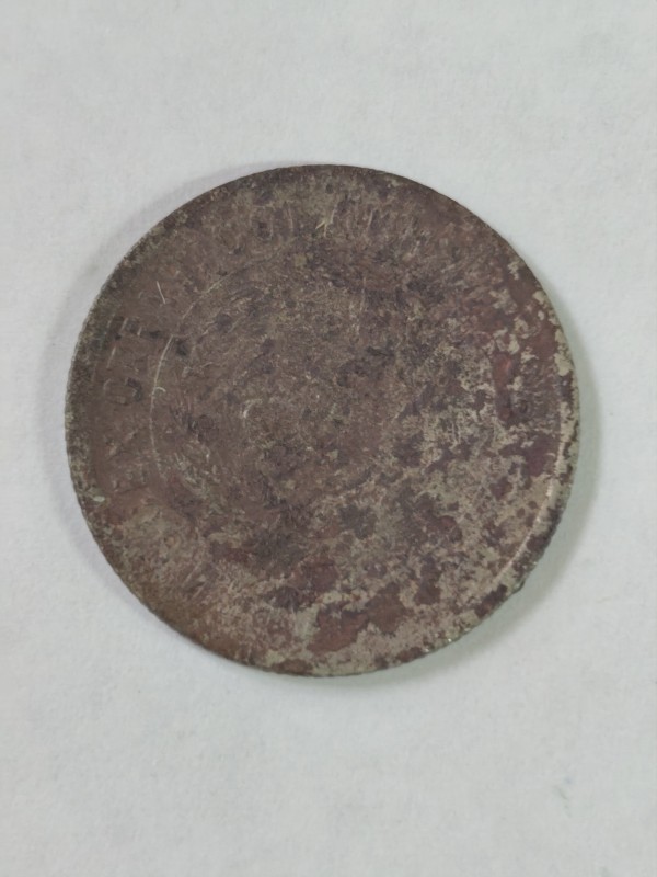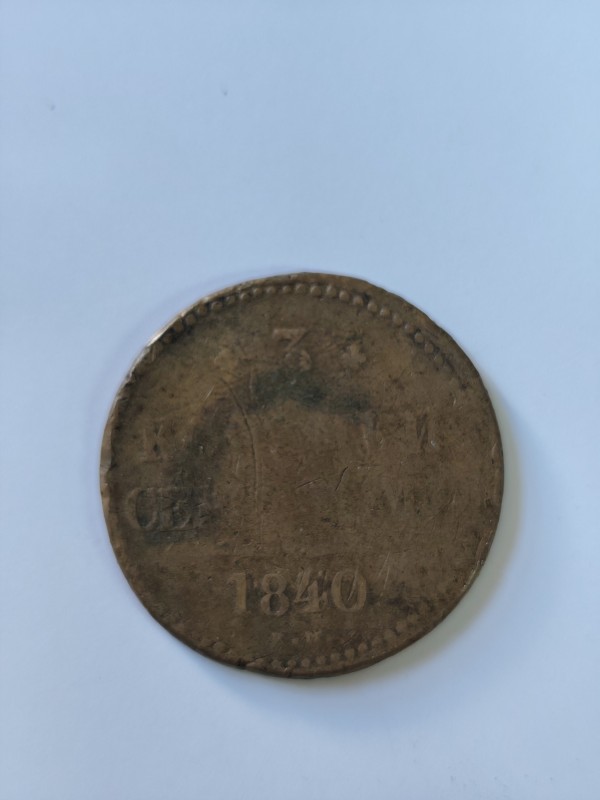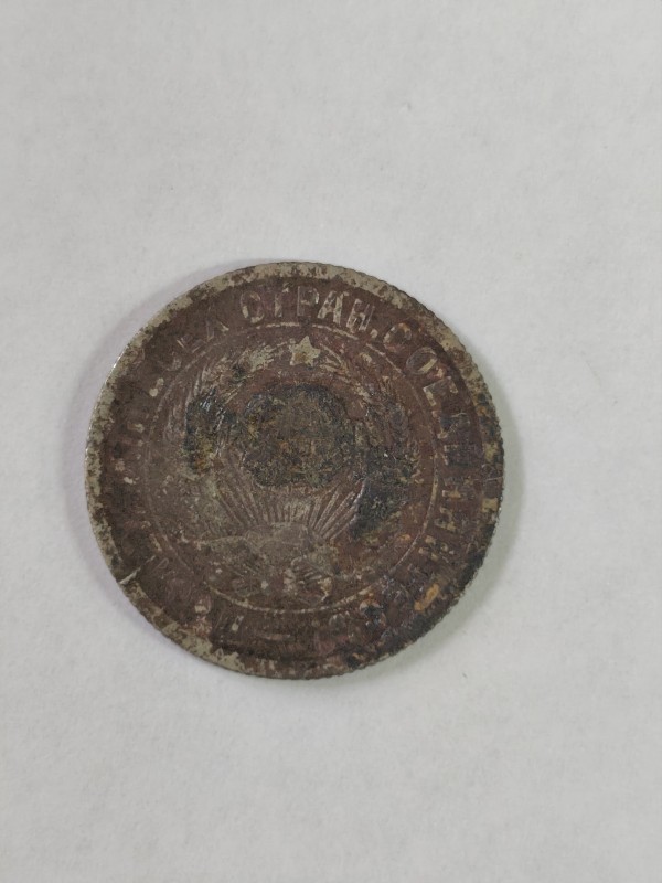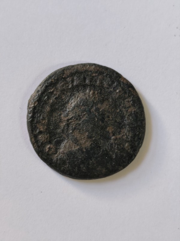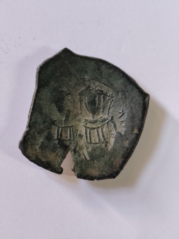Монета круглої форми - боратинка. Аверс монети стертий, зображення і легенда монети не простежується. Реверс монети - зображено герб Погоня (вершник на коні із мечем у руках). Навколо частково прочитується легенда монети "CO...G LI..."
