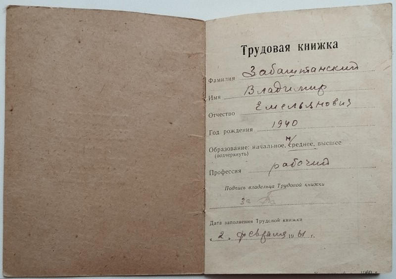 Пенсійне посвідчення громадянина УРСР №11034/54 Володимира Омельяновича Забаштанського