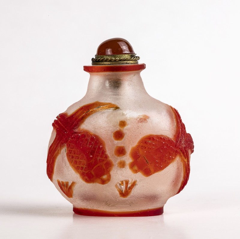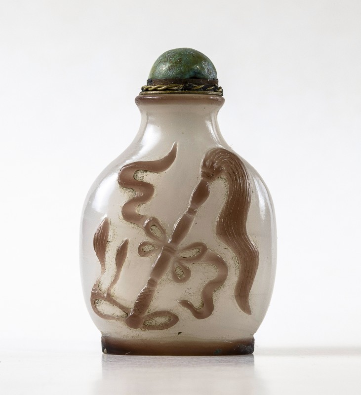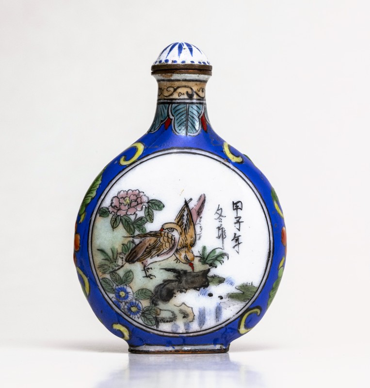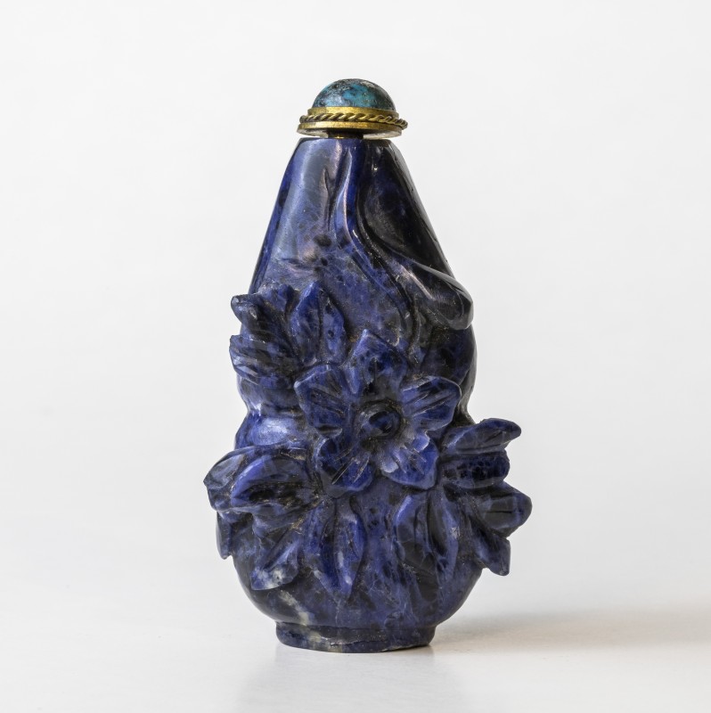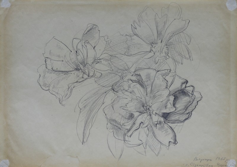 Два зображення квіток півонії; угорі - пишна квітка зі стеблом та листком, унизу - широко розкрита квітка.