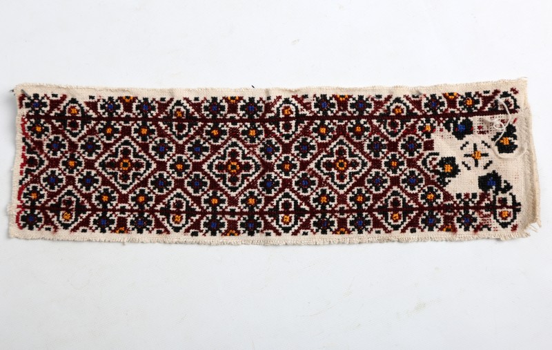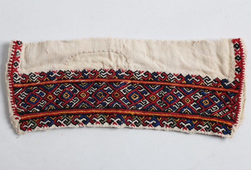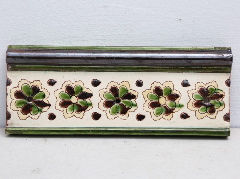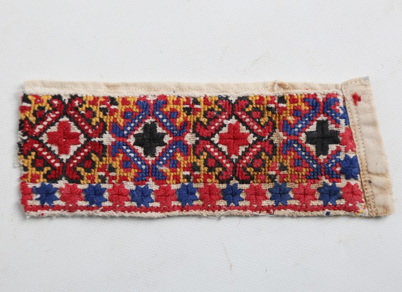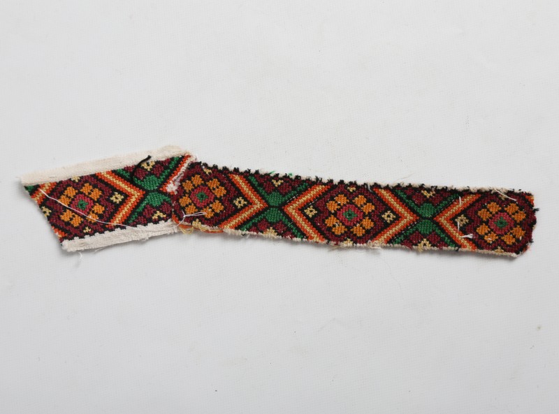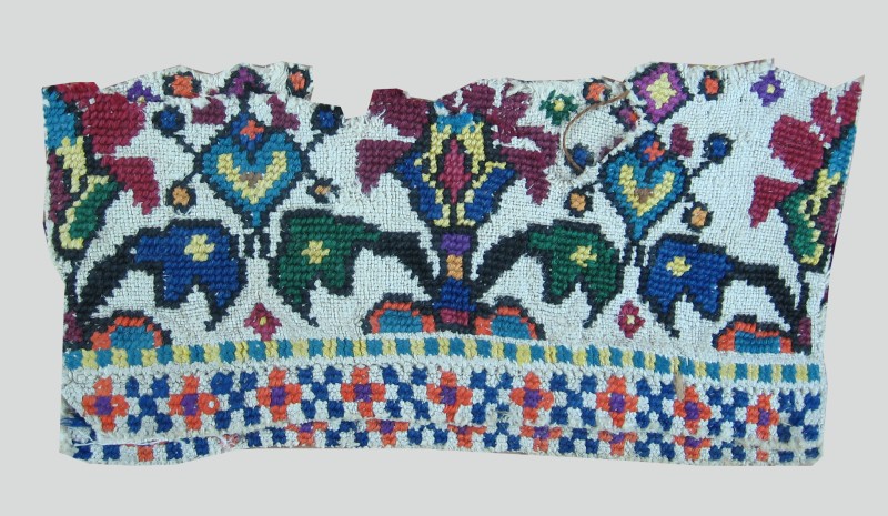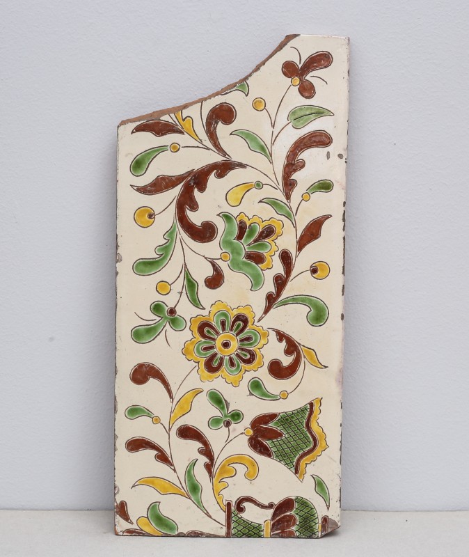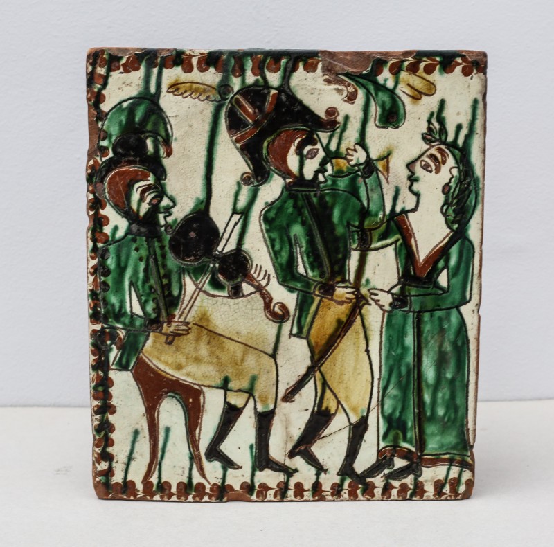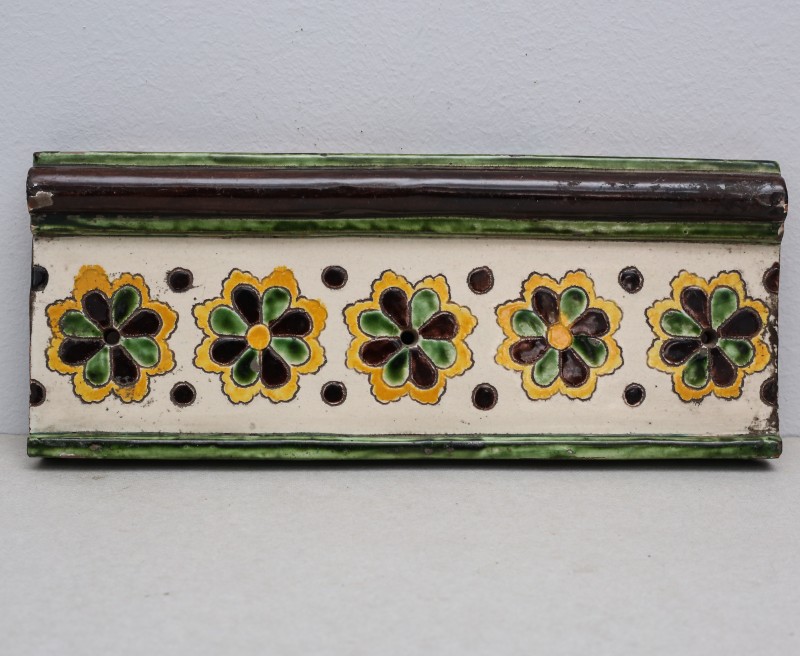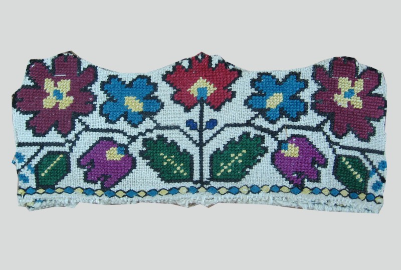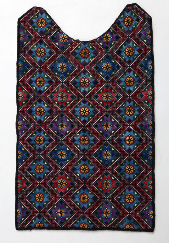 Посудина на свячену воду у формі овалу, випалена з червоної глини, поливана і розмальована зеленою, жовтою, коричневою, синьою та білою фарбами. Декор: в центрі - барельєфне зображення Розп'яття, по боках дві квітки з листками, вгорі та внизу є півокруглі заглиблення у вигляді чаші; нижнє заглиблення - на воду. Такі посудини підвішувались на стіну під образами.
