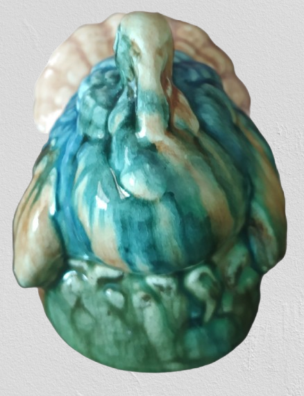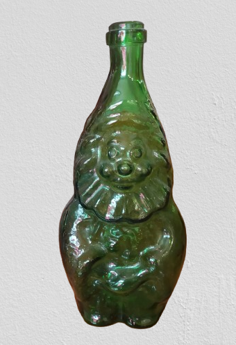 На тлі електричної лампочки круглої форми стилістично зображена усміхнена мордочка зайця. Поверхня біла, рельєфна, глянцева, вкрита білими сніжинками і сріблястими крапочками. На л.б. на ніжно-блакитному фоні чорною фарбою зображений ніс, язик і бант, які розфарбовані у вишневий колір, великі чорні очі з трьома білими цятками та довгі вуса. На з.б. на білій поверхні з лівого боку срібною фарбою зображена латка вишневого кольору. На цоколь лампочки одягнена блакитна шапочка з білою облямівкою. На шапочці білі вушка і сріблясто-білий бубон. Багатокольорова.