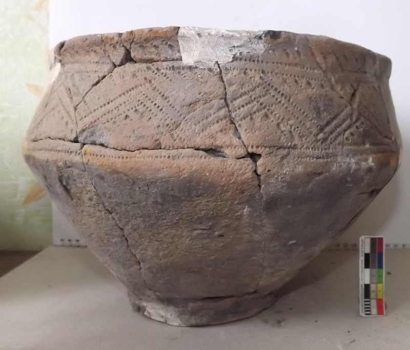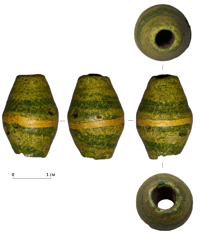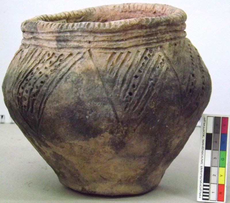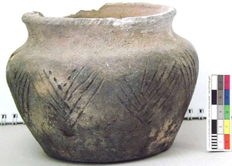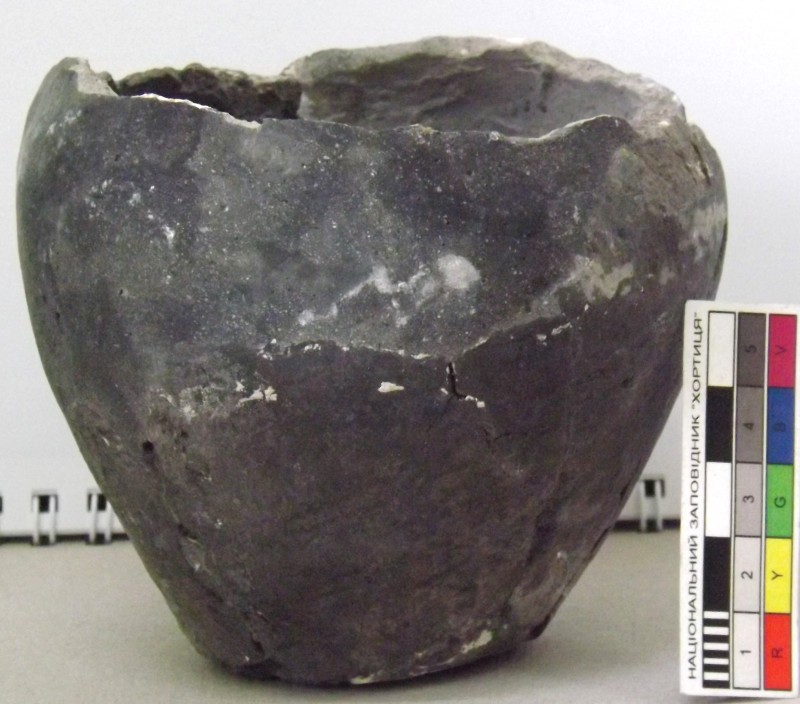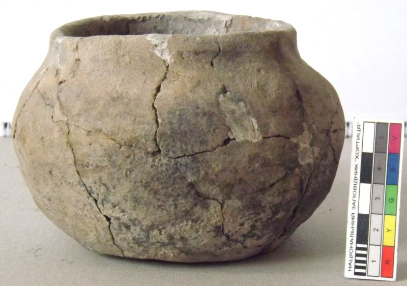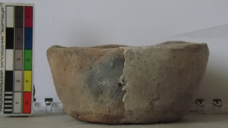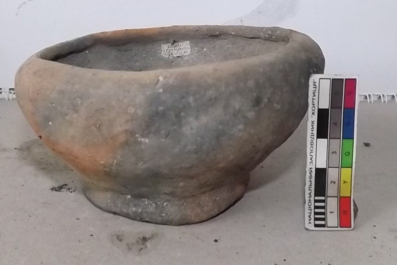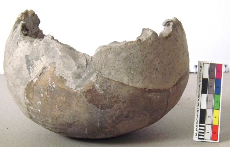 Проколка кістяна, виготовлена з трубчастої довгої кістки. Лицьова поверхня заокруглена згідно морфології будови кістки. Товщина кістки 5 мм. За формою проколка видовжена, з загостреним робочим кінчиком, овальним в перетині і фігурним верхом, прямокутним в перетині. На внутрішньому боці залишки губчатої речовини.
