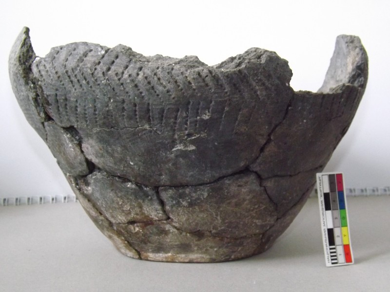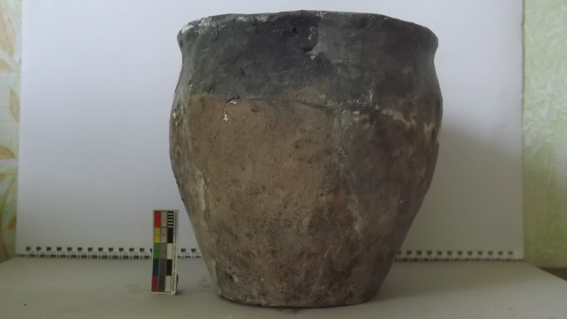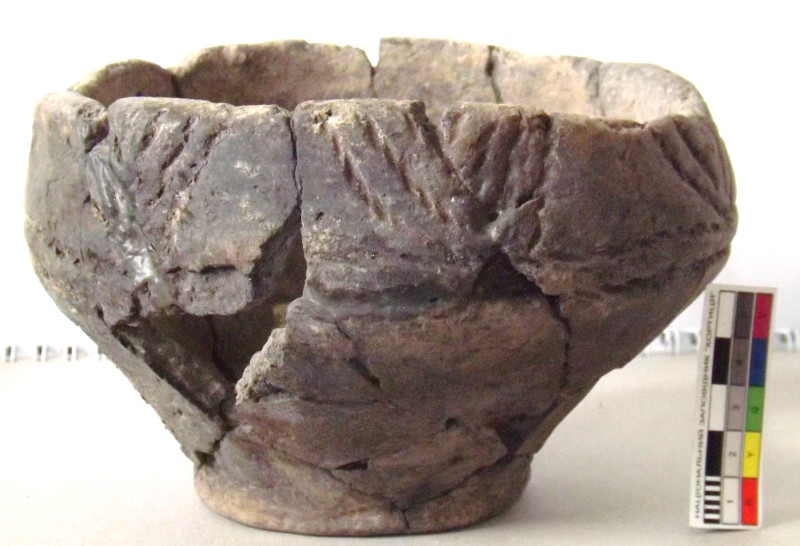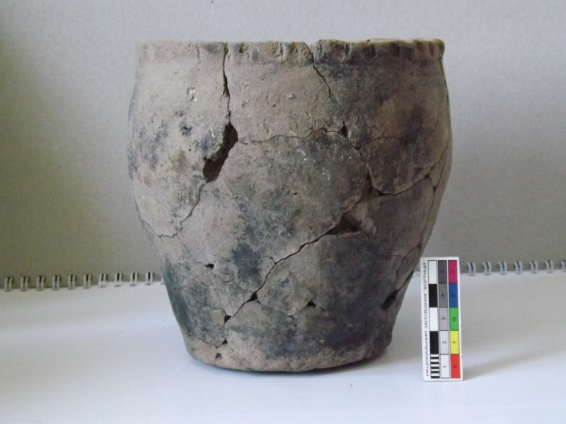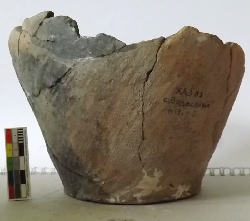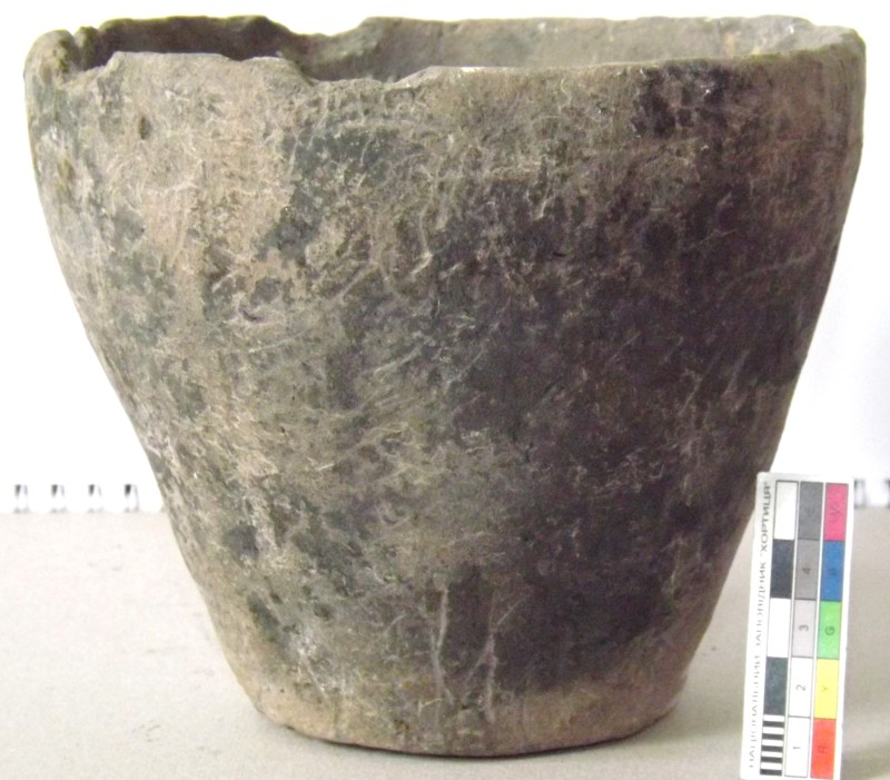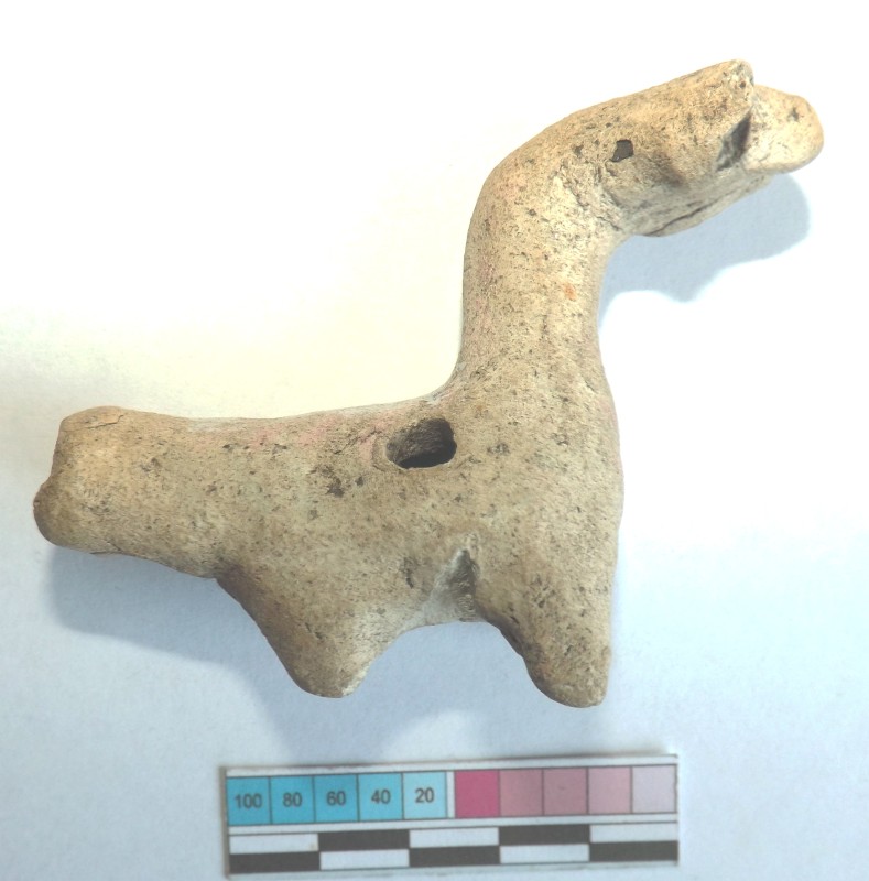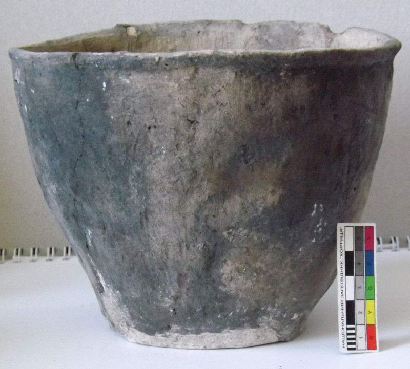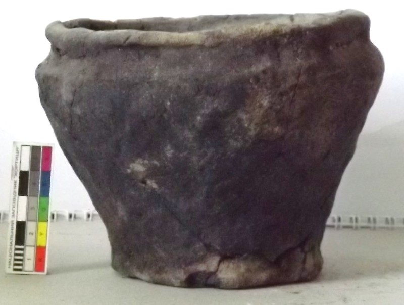 Проколка кістяна, виготовлена з трубчастої довгої кістки. Лицьова поверхня заокруглена згідно морфології будови кістки. Товщина кістки 5 мм. За формою проколка видовжена, з загостреним робочим кінчиком, овальним в перетині і фігурним верхом, прямокутним в перетині. На внутрішньому боці залишки губчатої речовини.