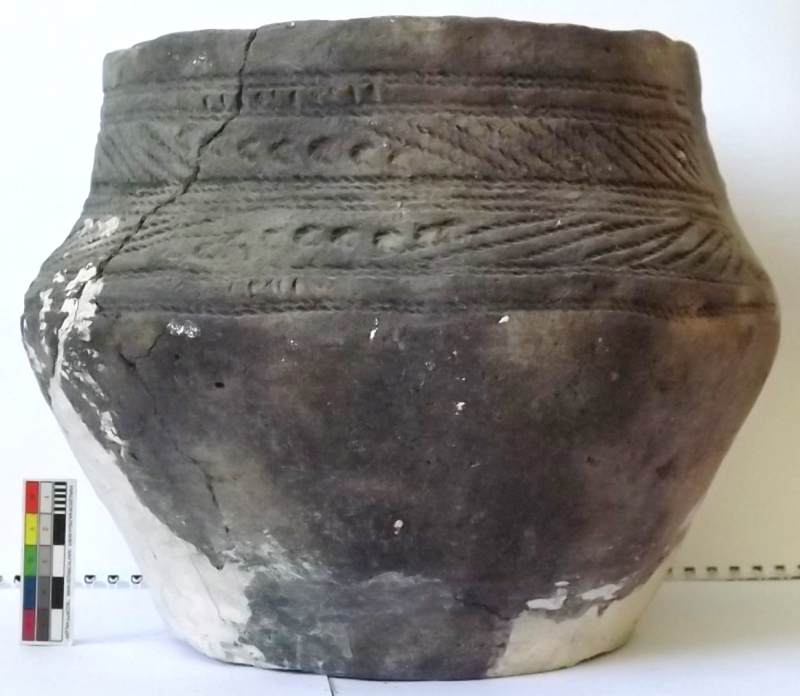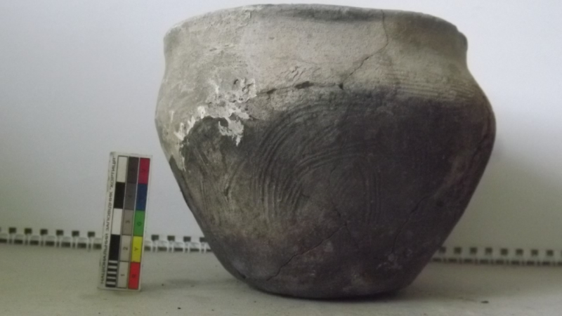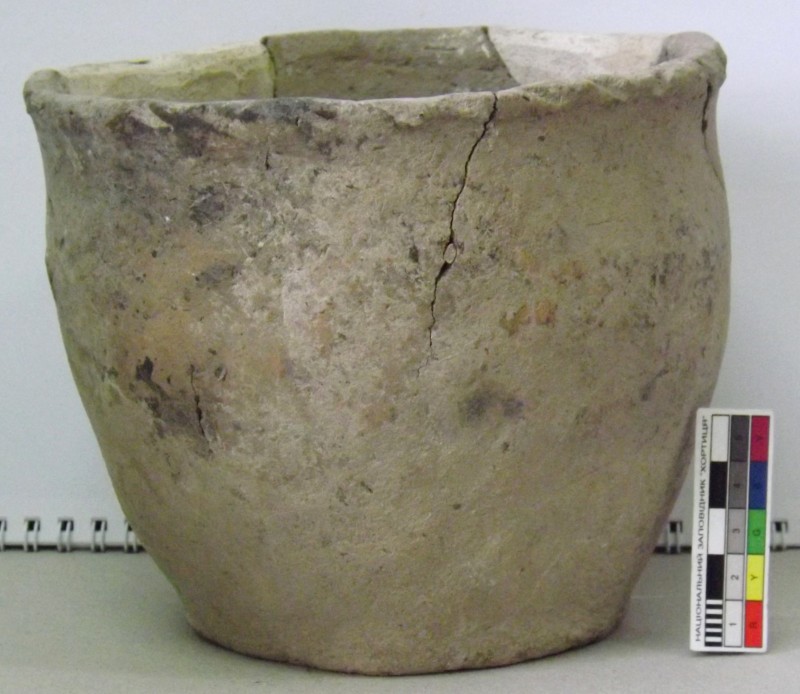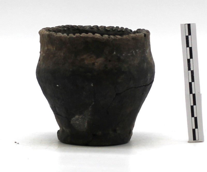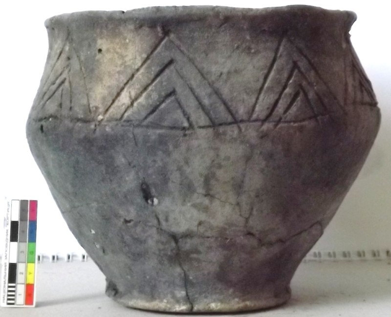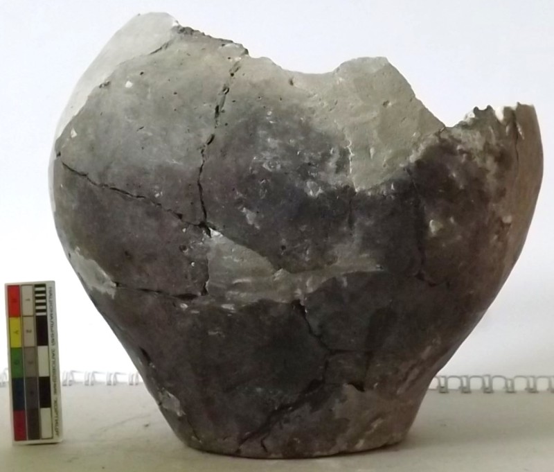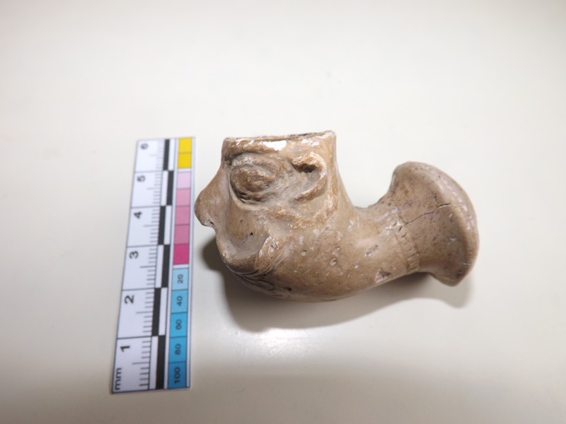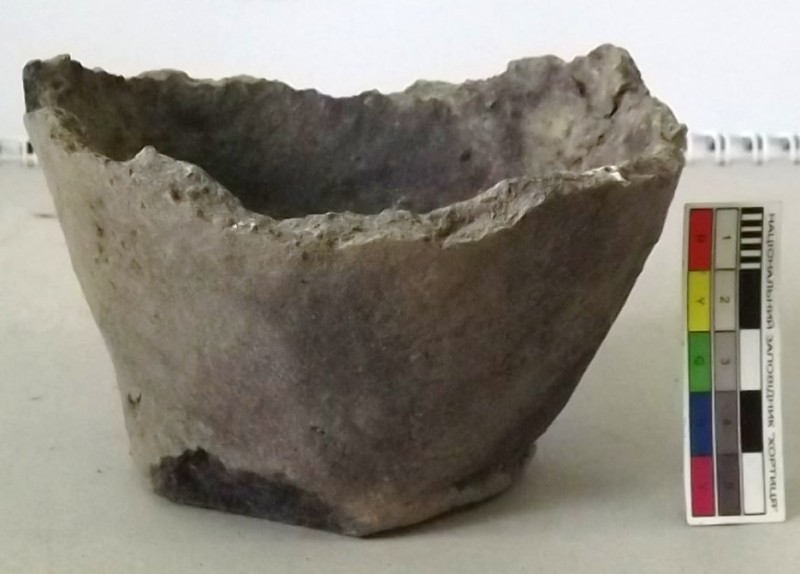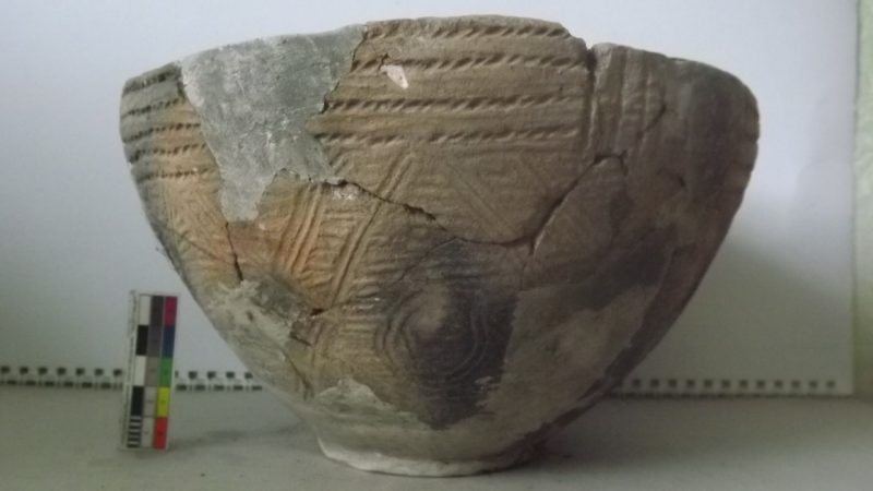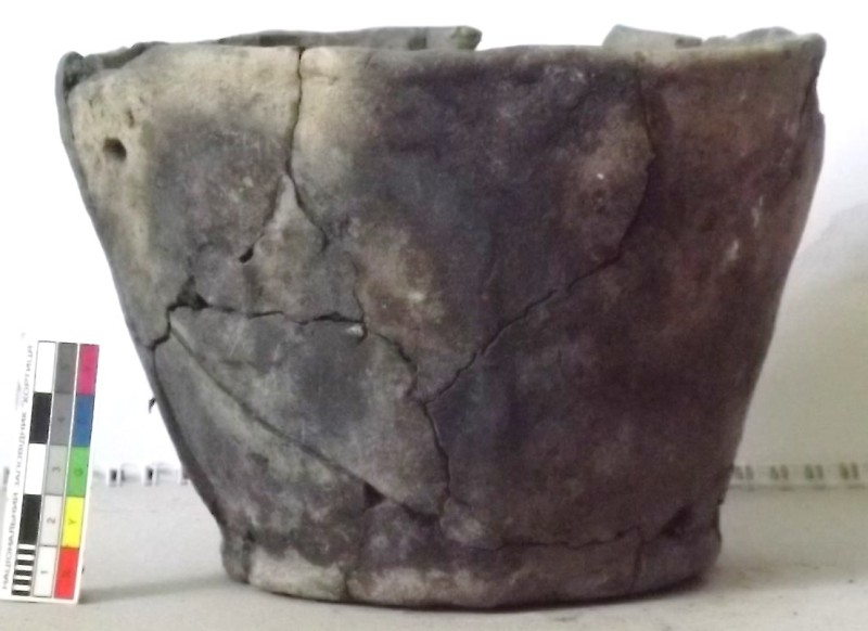 Проколка кістяна, виготовлена з трубчастої довгої кістки. Лицьова поверхня заокруглена згідно морфології будови кістки. Товщина кістки 5 мм. За формою проколка видовжена, з загостреним робочим кінчиком, овальним в перетині і фігурним верхом, прямокутним в перетині. На внутрішньому боці залишки губчатої речовини.
