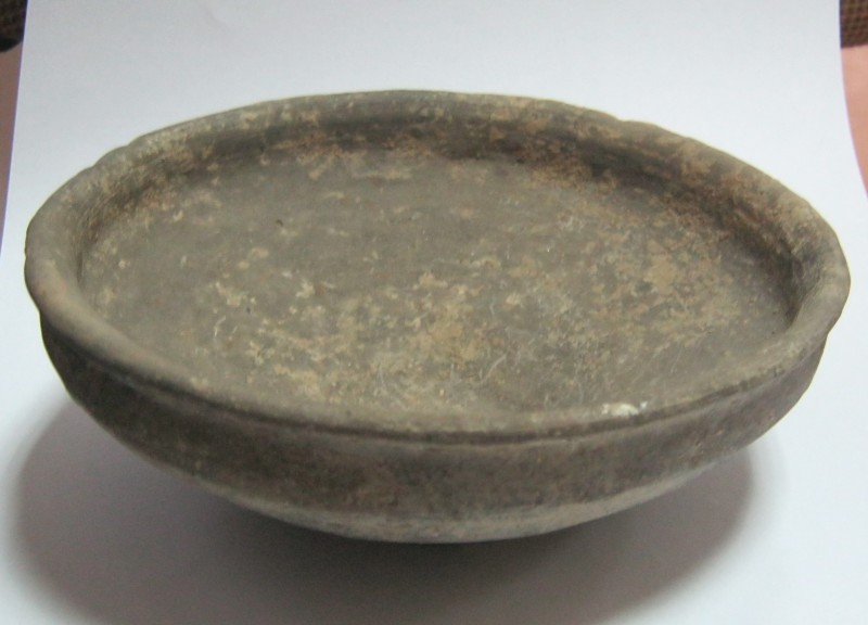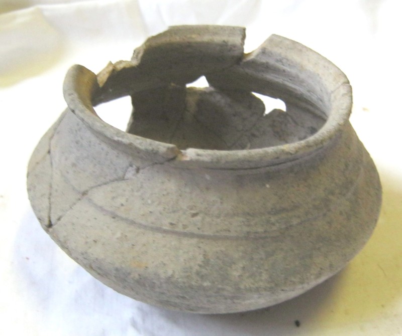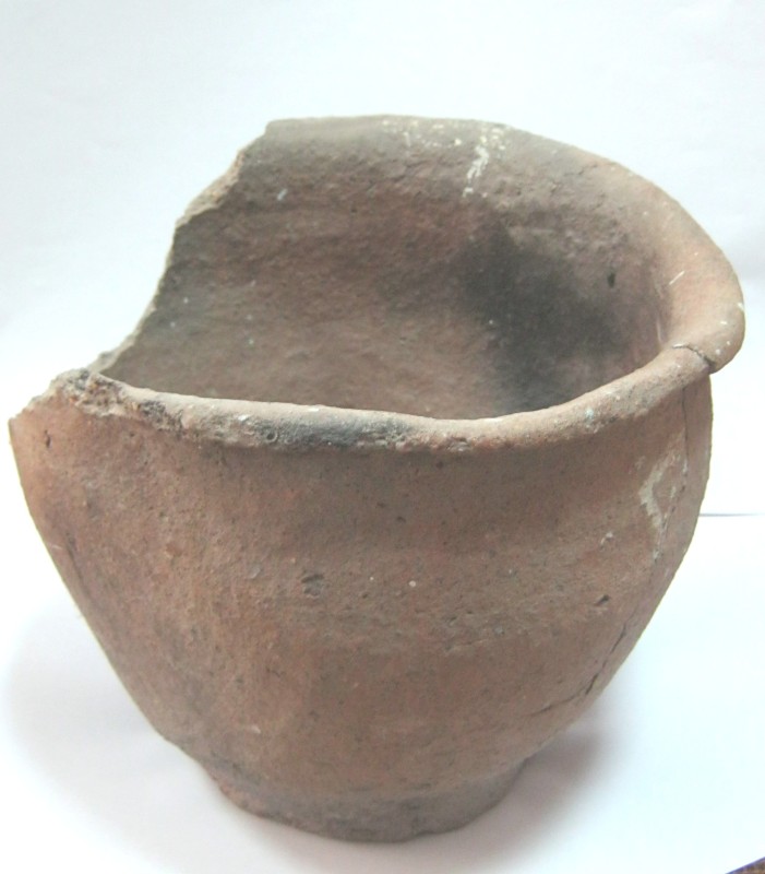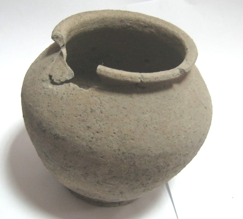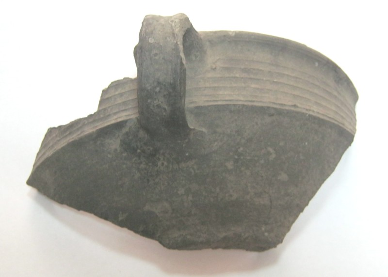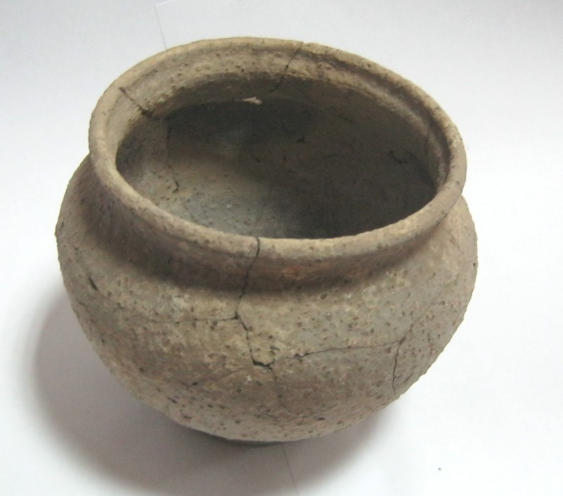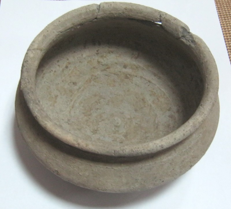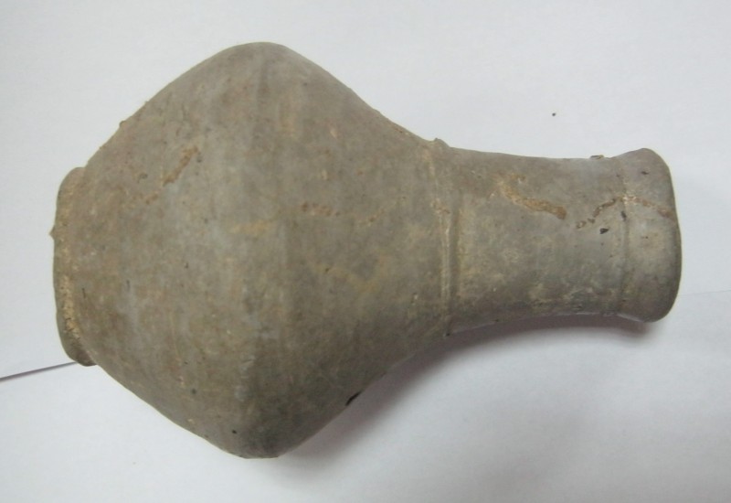 Пряслиця має компактну округлу форму, близьку до дископодібної. Виготовлена з обпаленої глини. Верхня та нижня частини дещо опуклі, з плавними переходами до центрального отвору. Отвір наскрізний, майже циліндричний, розташований по центру, призначений для насаджування на веретено. Поверхня нерівна, з видимими слідами ліплення та випалу, частково потемніла, із сіро-коричневими відтінками. Є окремі відколи на краях.