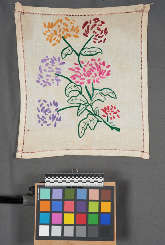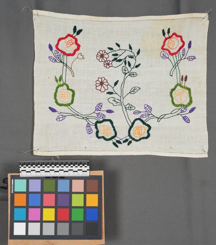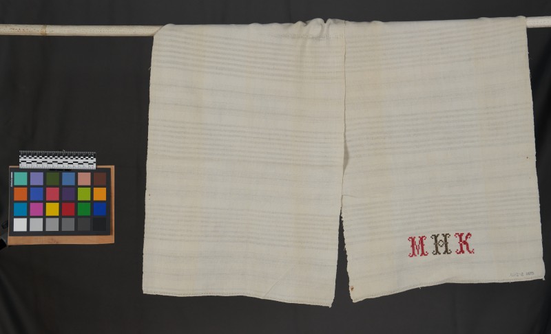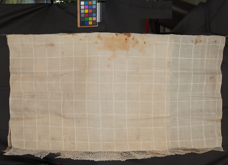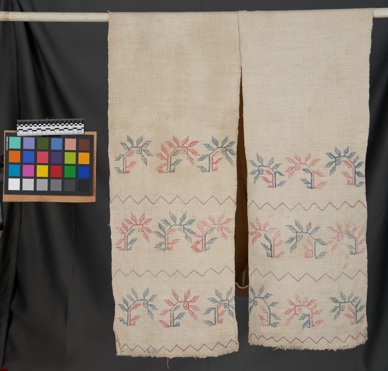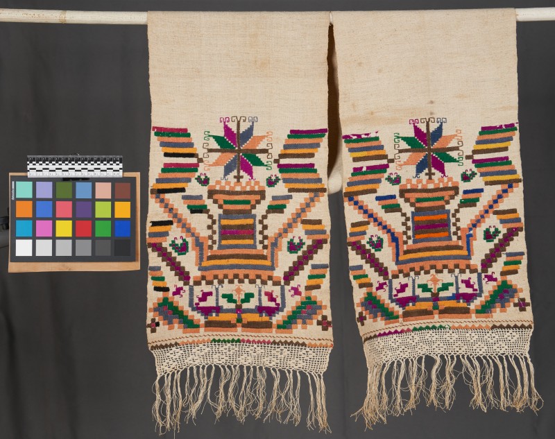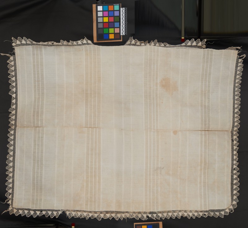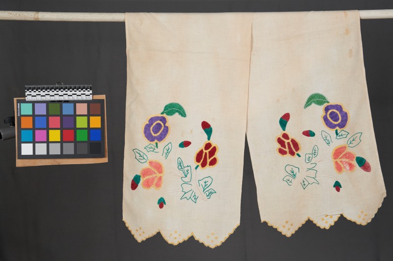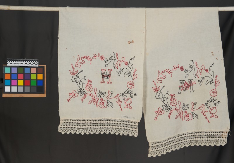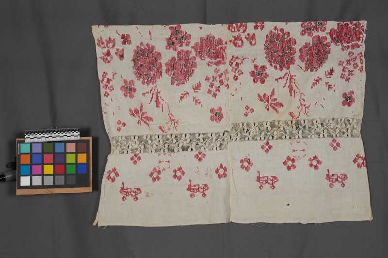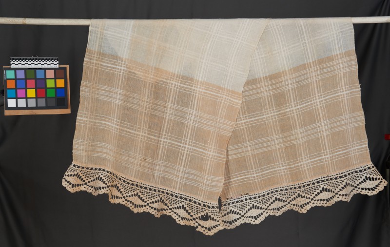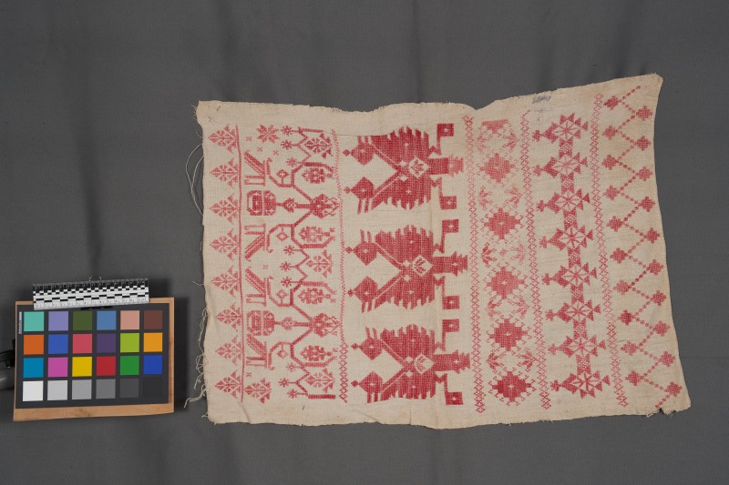 Рушник білий молдавський декоративний, по краях він'єтка з квітів, листя, птахи, надпис "Ариков В.Г.", на кінцях мереживо.