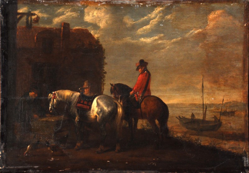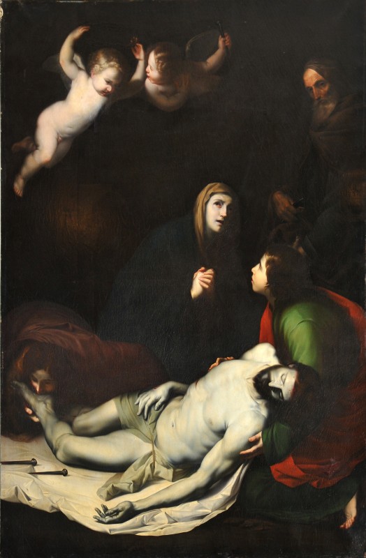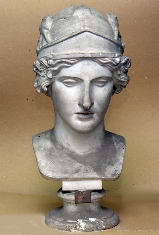 Щит металевий правильної круглої форми. У центрі - круглий медальйон із зображенням трьох сидячих фігур і лева. Навколо симетрично розташовані чотири круглі медальйони із зображенням трьох сидячих фігур біля яких зображено посуд з фруктами. Між медальйонами розташовані чотири опуклі сферичні накладки з вигравіруваним рослинним орнаментом. По краю щита вигравірований багатоступінчастий бордюр з рослинним орнаментом, круглими і овальними картушами, що чергуються з епіграфічним візерунком.