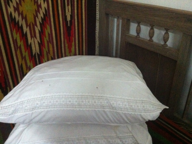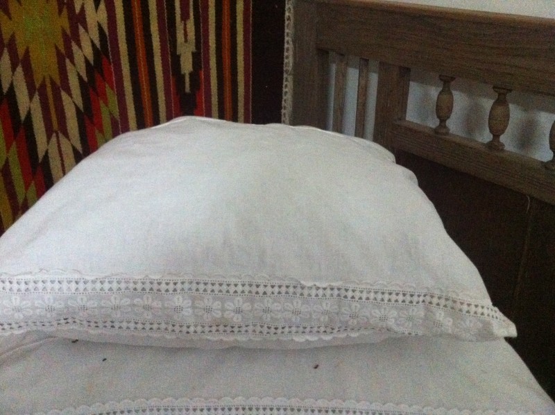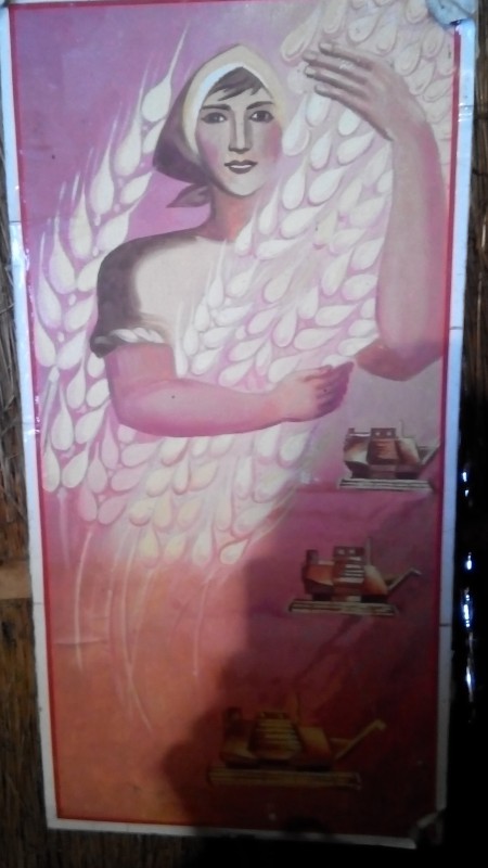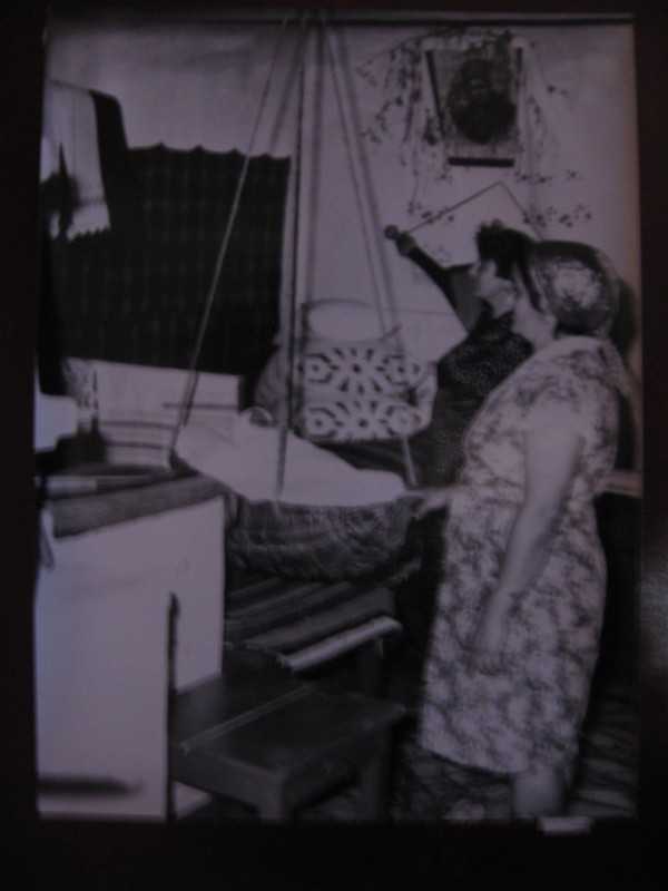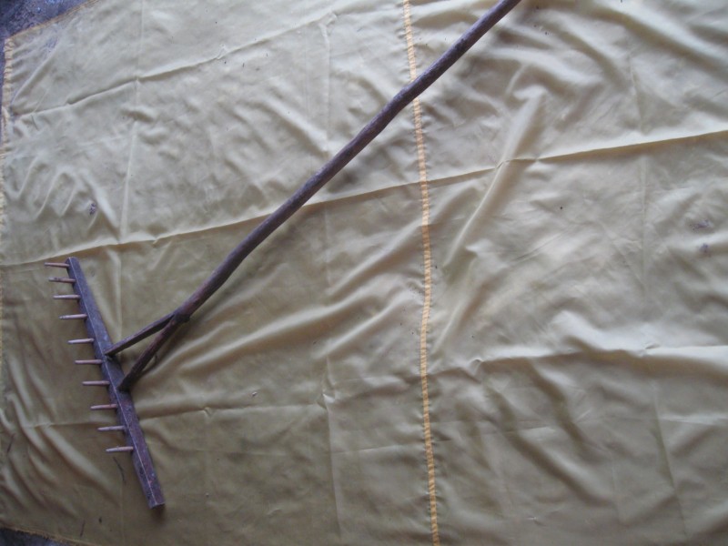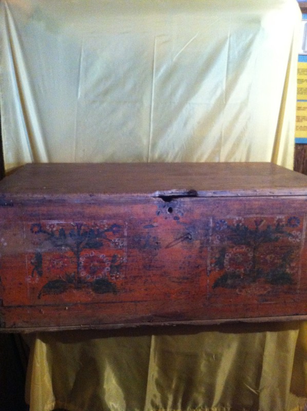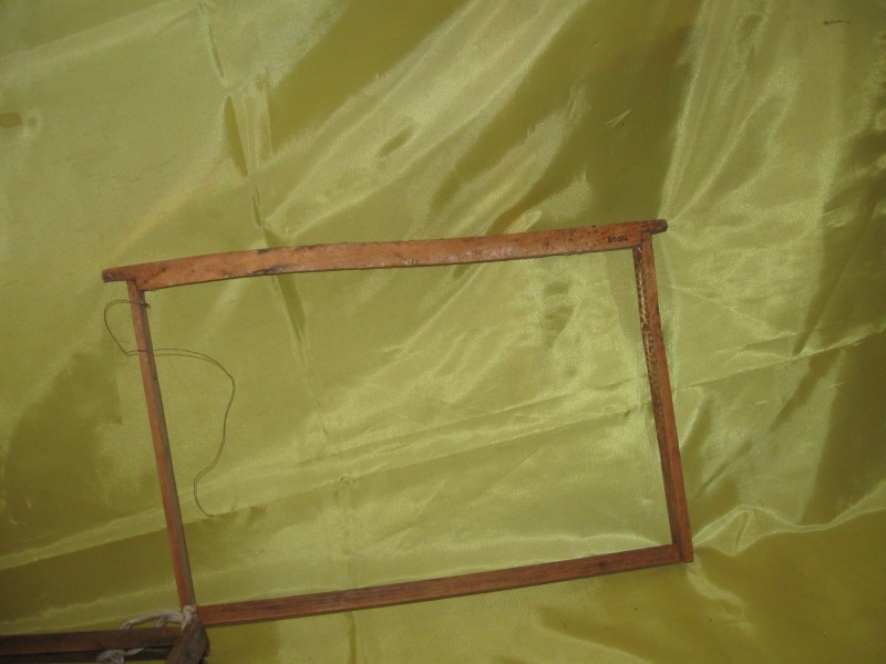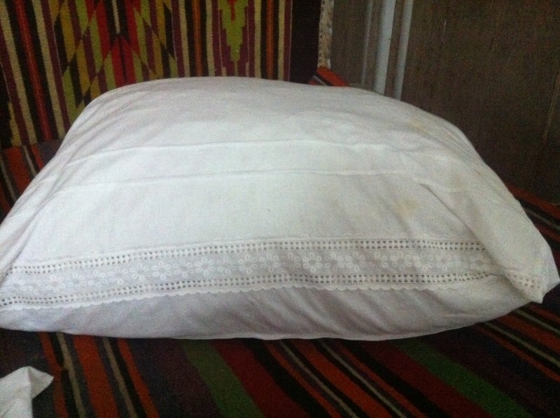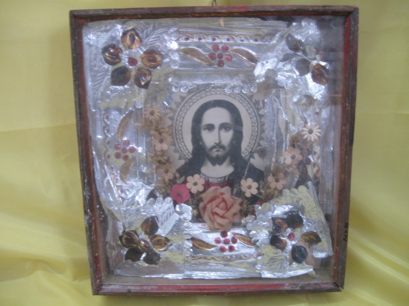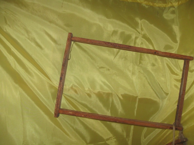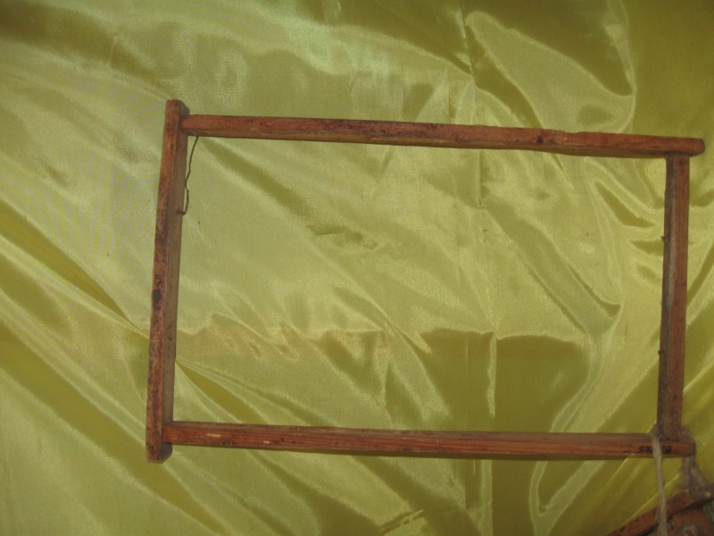 Серветка велика, червона. По периметру обшита фабричною рожевою бахромою. По всьому полю серветки нанесений малюнок у вигляді гілочок квітів – троянд. Між квітами геометричні малюнки рослинного походження. Використовувалася для домашнього вжитку. Тканина. Фабричне виробництво. Україна, ХХ ст. Була у вжитку, має вікові пошкодження: побита міллю, наявні дірки. h - 90см, а - 90см.