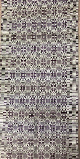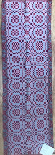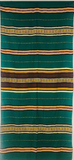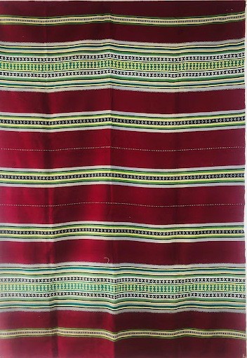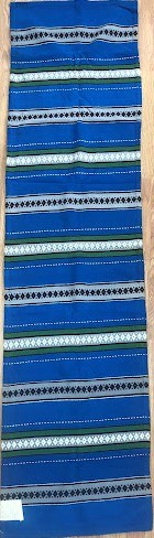 Скатертина кухонна. Виготовлено на початку ХХІ століття (2002) на кролевецькій фабриці художнього ткацтва. Автор Савицька В.Г. Полотно - основа зелена, уток світло-зеленого кольору. Бавовна. Виткано світло-тіньовою технікою "шахматка". З усих країв підрублено на швейній машинці.