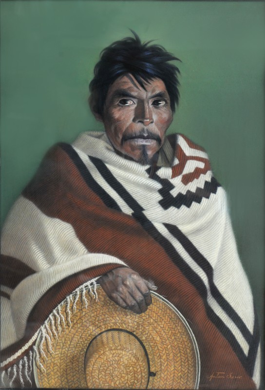 Бюст чоловіка, обличчя якого виражає страждання. Голова закинута і нахилена до лівого плеча. Хвилясте волосся і борода. Брови підняті і зведені. На лобі складки. Рот відкритий. Грудна клітка напружена.