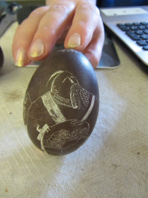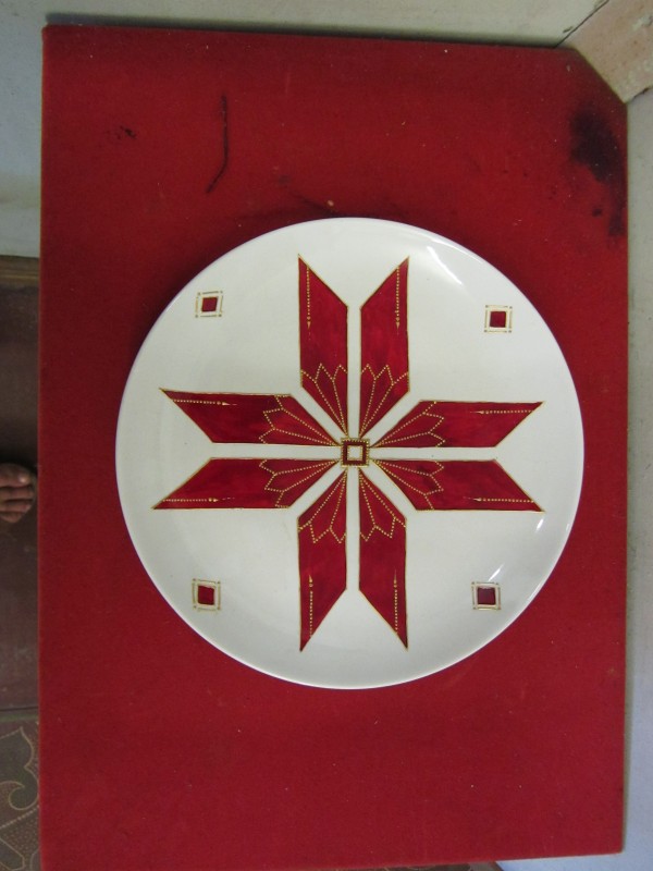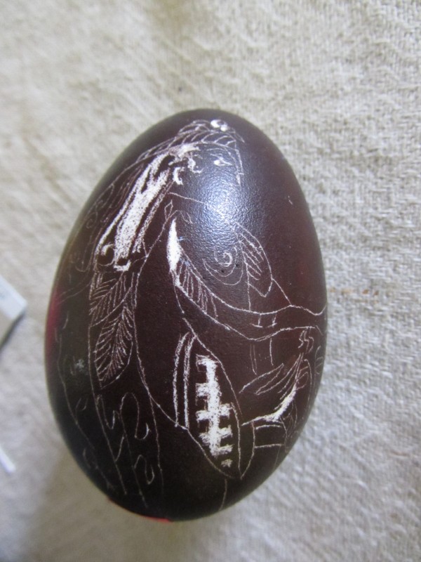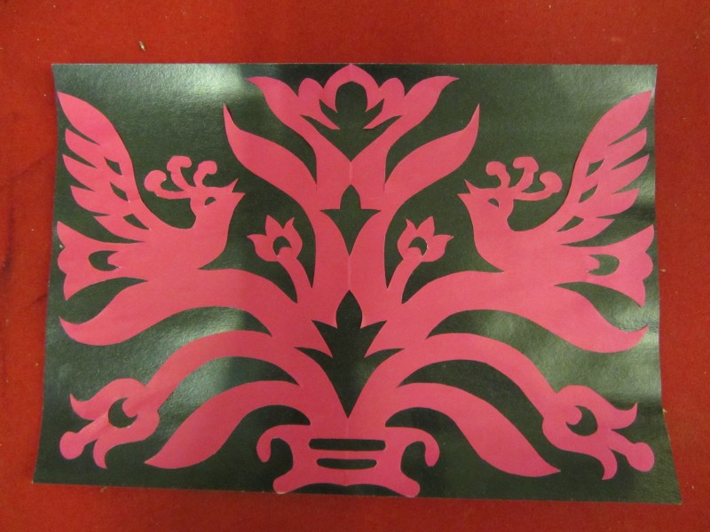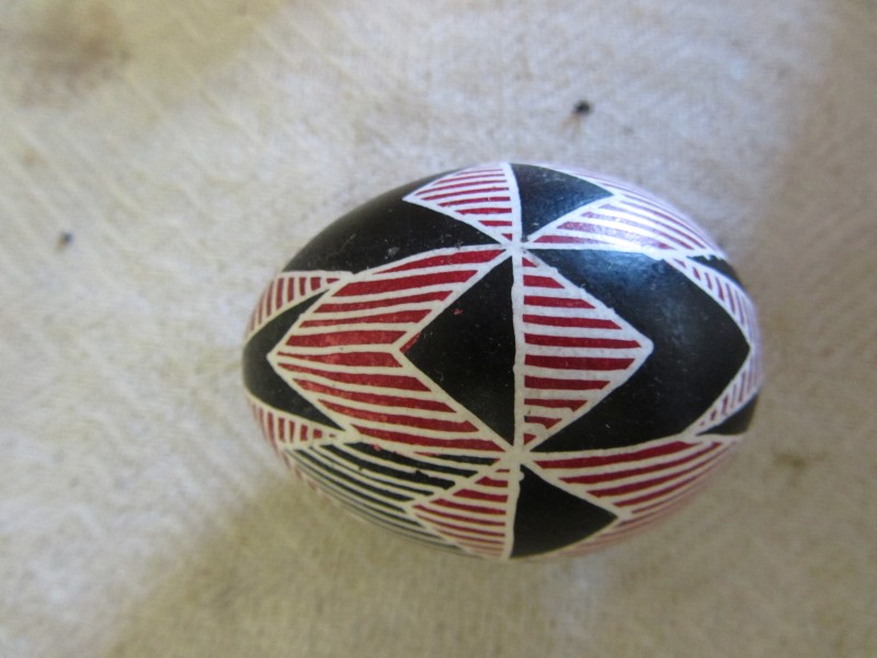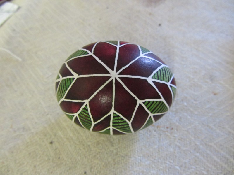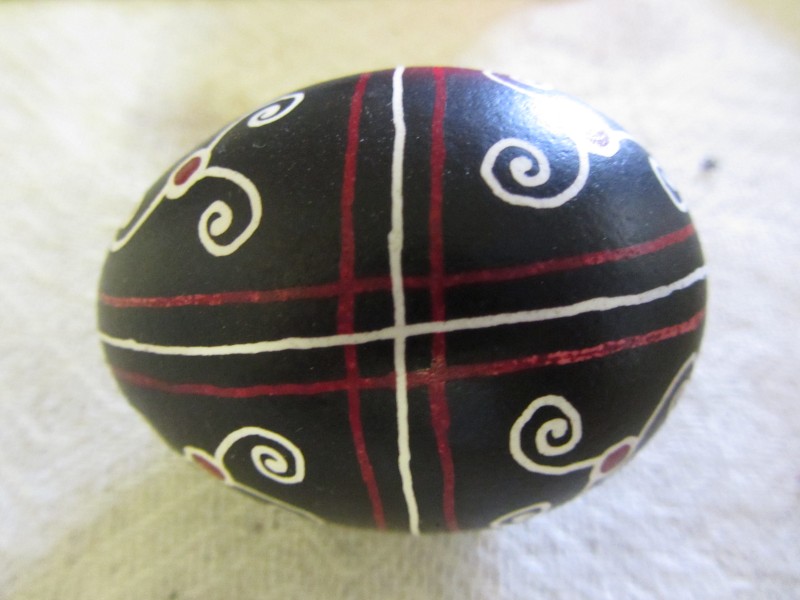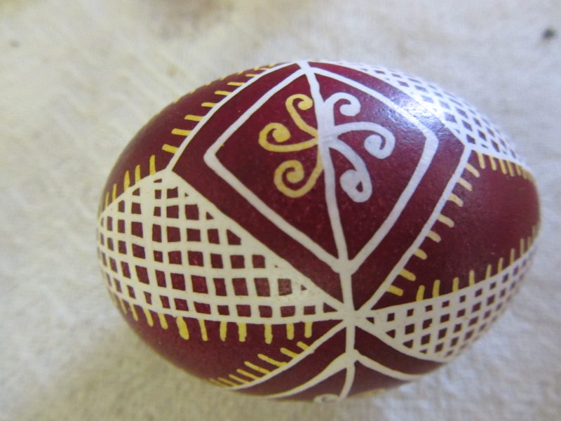 Основний орнамент на погрудках геометрично-рослинний у вигляді широкої вертикальної смуги, що складається з ромбів з ружами між якими косі (вправо та ліво) стилізовані рослинні смужки з ружами. По краю з трьох сторін хвиляста рослинна смужка. Елементи погрудок вишиті на комірі та широких манжетах, що застібаються на ґудзики. Основні кольори чорний та червоний. По низу доточена смуга тканини.