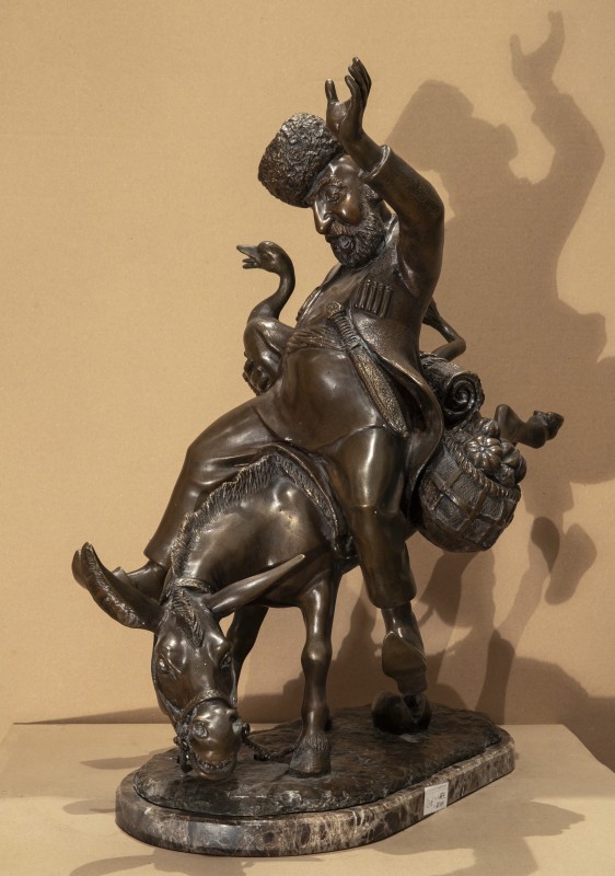 Табакерка видовженої форми у вигляді цифри «8». З однієї сторони – коричневе зображення гілки з квітами мейхуа та птаха. З другої – коричневе зображення: угорі – лелеки, унизу – пагоди.