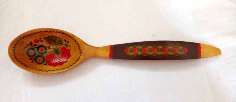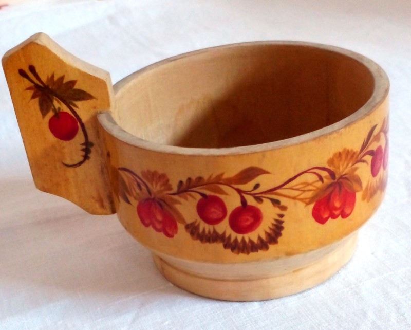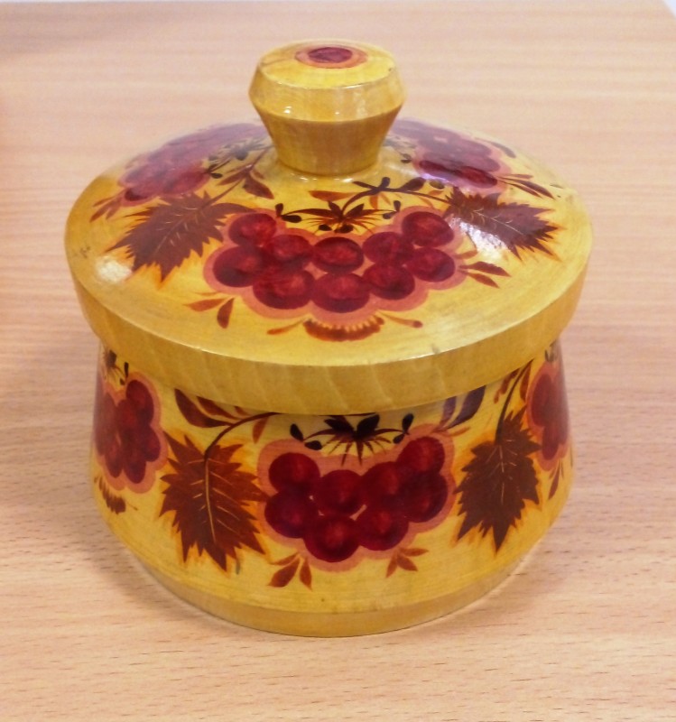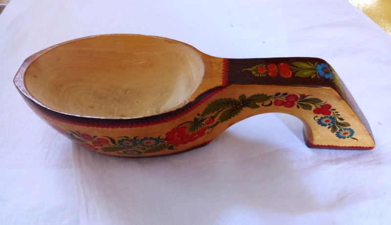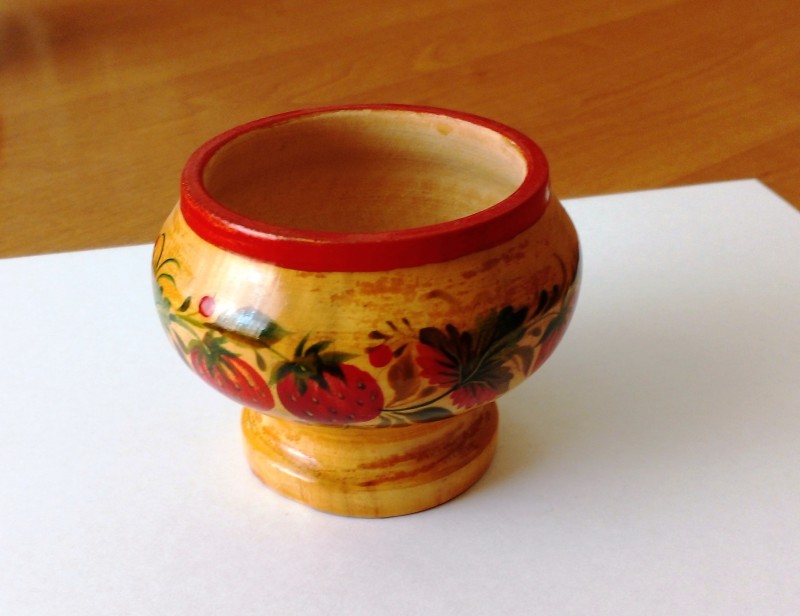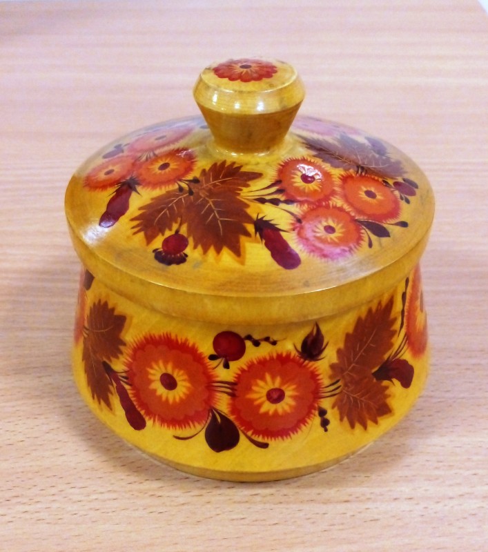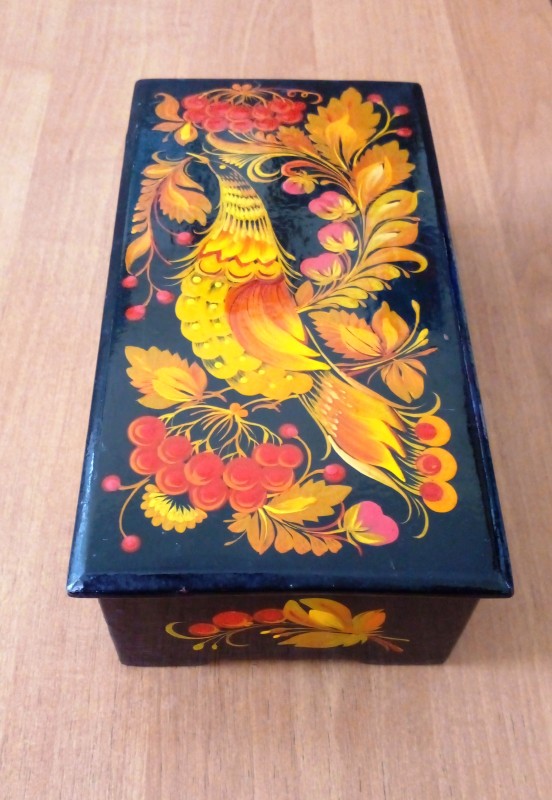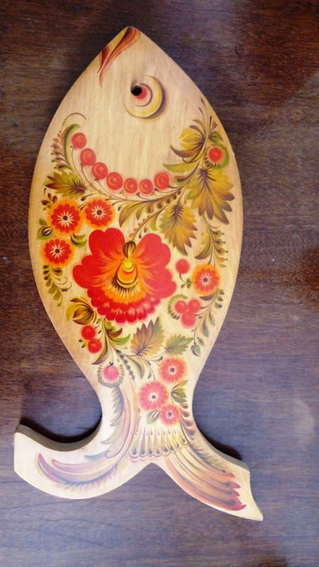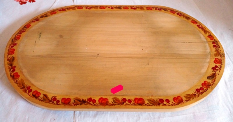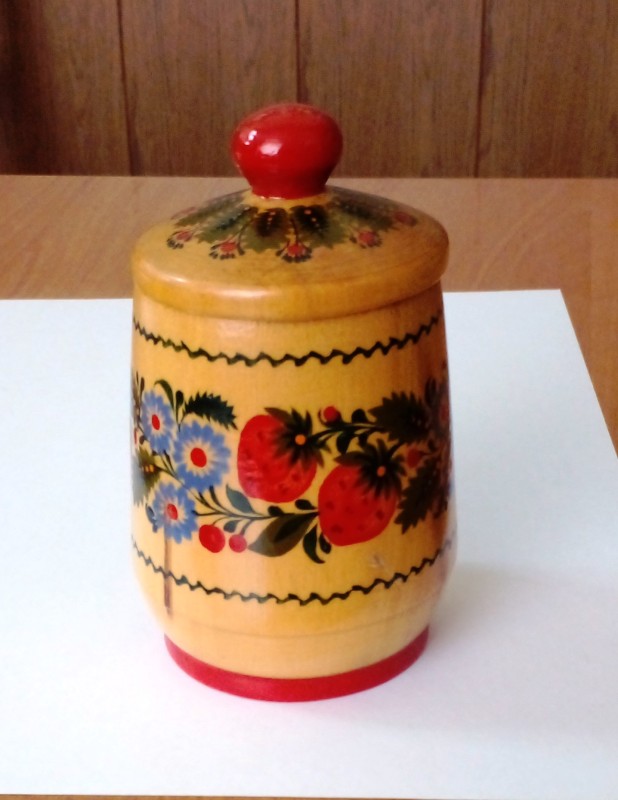 Тарілка чорного кольору прикрашена петриківським розписом. В центрі - кетяг калини. По внутрішньому краю - "бігунок" з червоних квітів, ягід та зеленого листя.