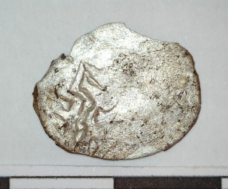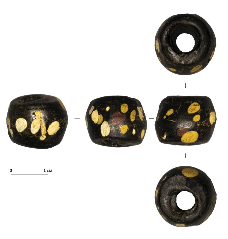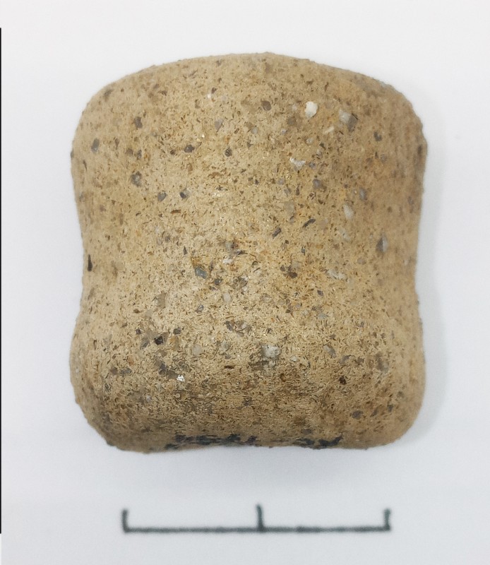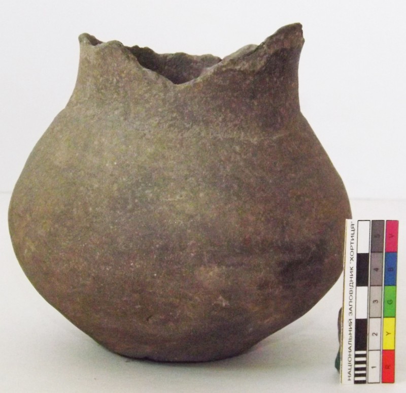 Вістря стріли кременеве, відноситься до типу «хвіст ластівки», двошипне, видовжених пропорцій. Вістря підтрикутної форми з бічними трохи заокругленими сторонами та з виїмкою в основі, яка формує два видовжених шипа. Виїмка овальної форми 12х6 мм, довжина шипів 12 мм, кінчики трошки загнуті в середину. Ретуш високої якості комбінована, дрібна. Крем’яна пластина високої якості, прозора, бежевого кольору.