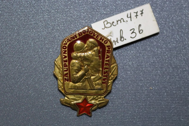 Знак з металу жовтого кольору, покритий червоною та чорною емаллю. Знак у формі п’ятикутника. У центрі – зображення (випукле) ордена Перемоги жовтого кольору на тлі георгіївської стрічки. У нижній частині знака ліворуч – напис «1945–70» жовтого кольору на червоному фоні (емаль). На зворотному боці – застібка (металева) для кріплення знака до одягу. Напис в один ряд: «Цена 15 коп.», мова російська.